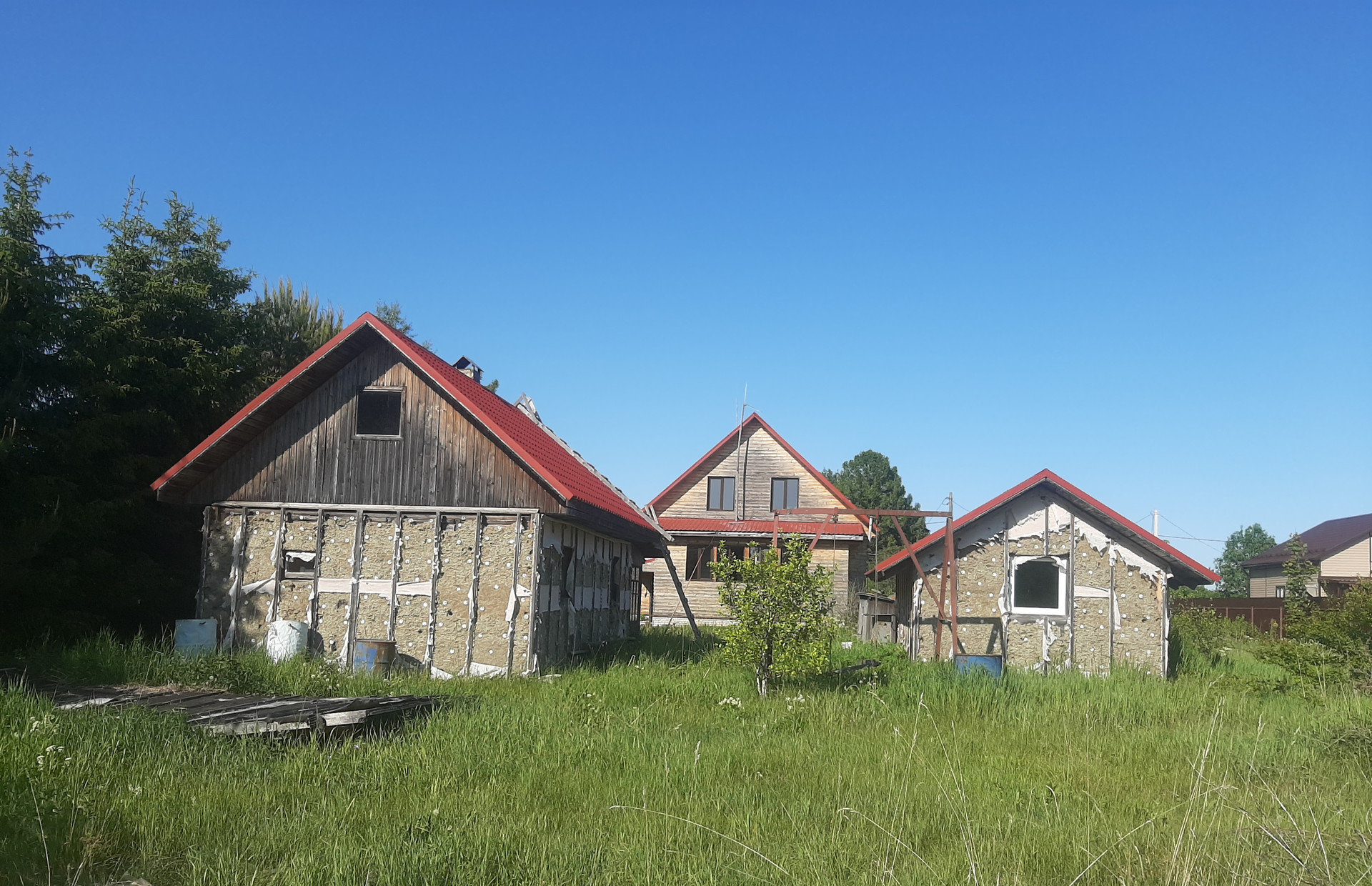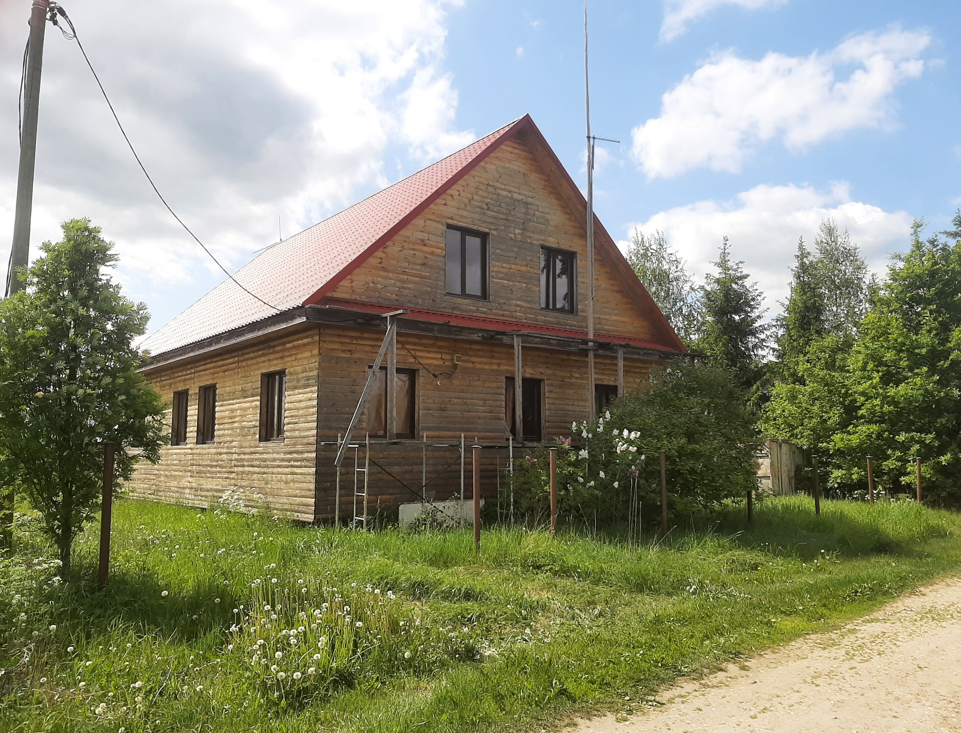 Год постройки дома 2005, в 2014 г.  произведено увеличение площади и облицовка блокхаусом, покрытие металлочерепицей. Площадь 142 кв.м, внешние стены и перегородки выполнены из бруса и бревна. К дому подведен газ, выполнена разводка до газовой плиты и смонтирован газовый котел, также есть большая кирпичная печь. Есть электричество 15 кВт 380В, холодная вода из колодца при помощи эл.насоса подается в дом, смонтирован септик из ж/б колец. По периметру участка забор: установлены металлические столбы, материал для стальных лаг — проф. труба лежит на участке. В 50 м находится пожарный водоем.