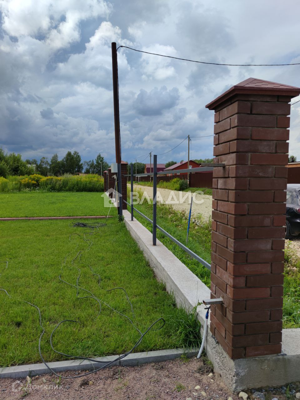 -Частично готов забор: ленточный фундамент, кирпичные колонны, подведено электричество для откатных ворот.