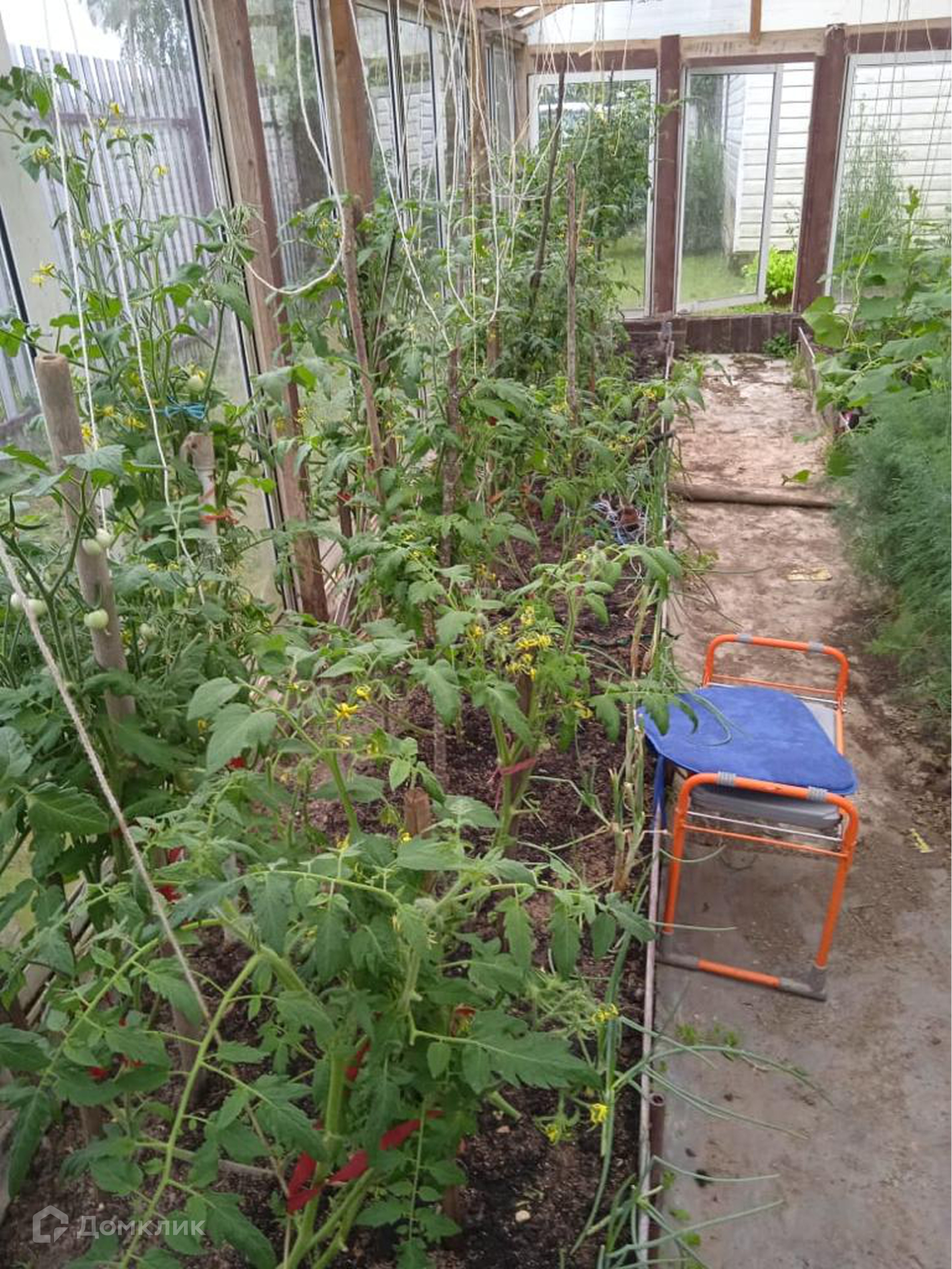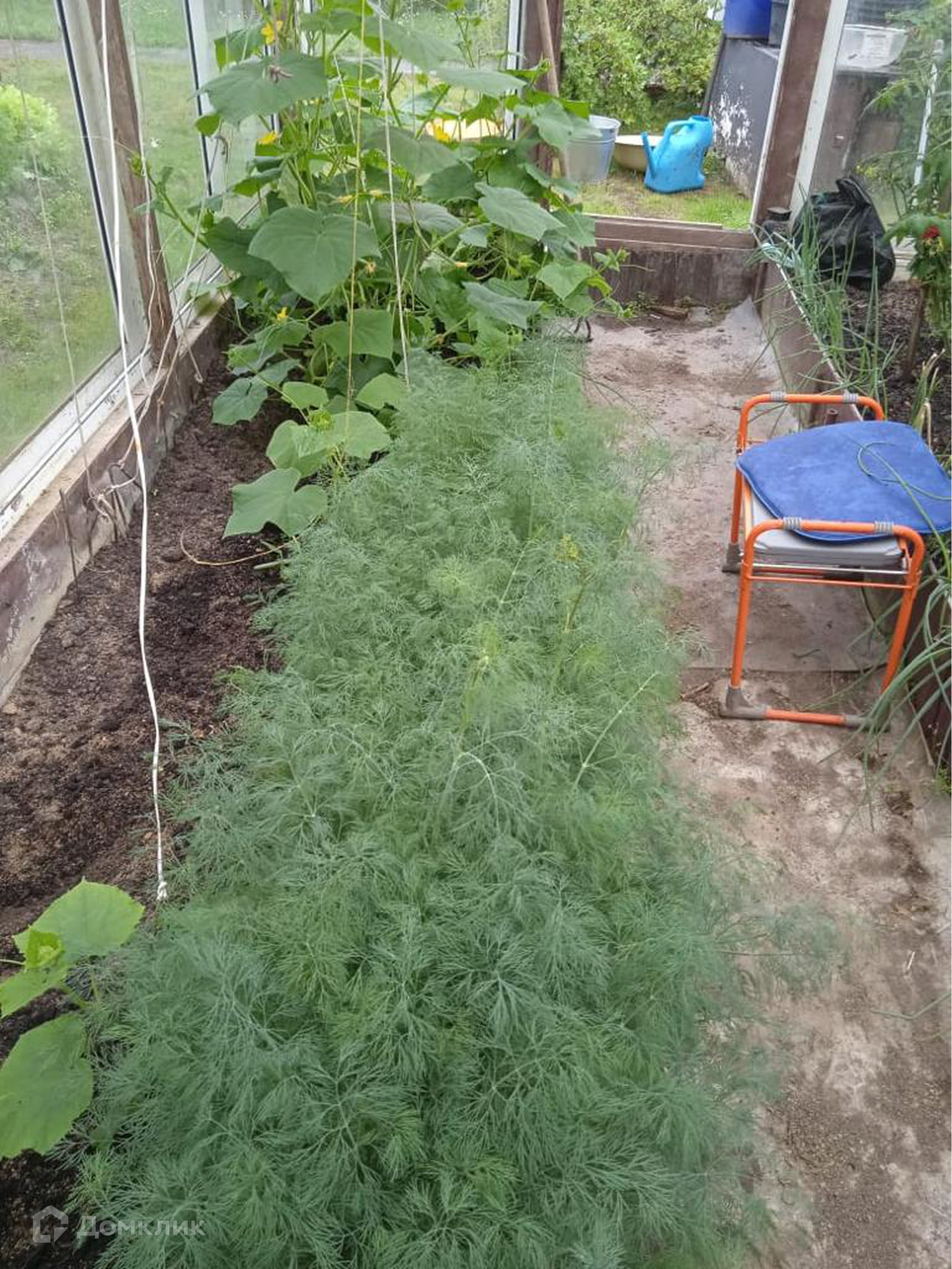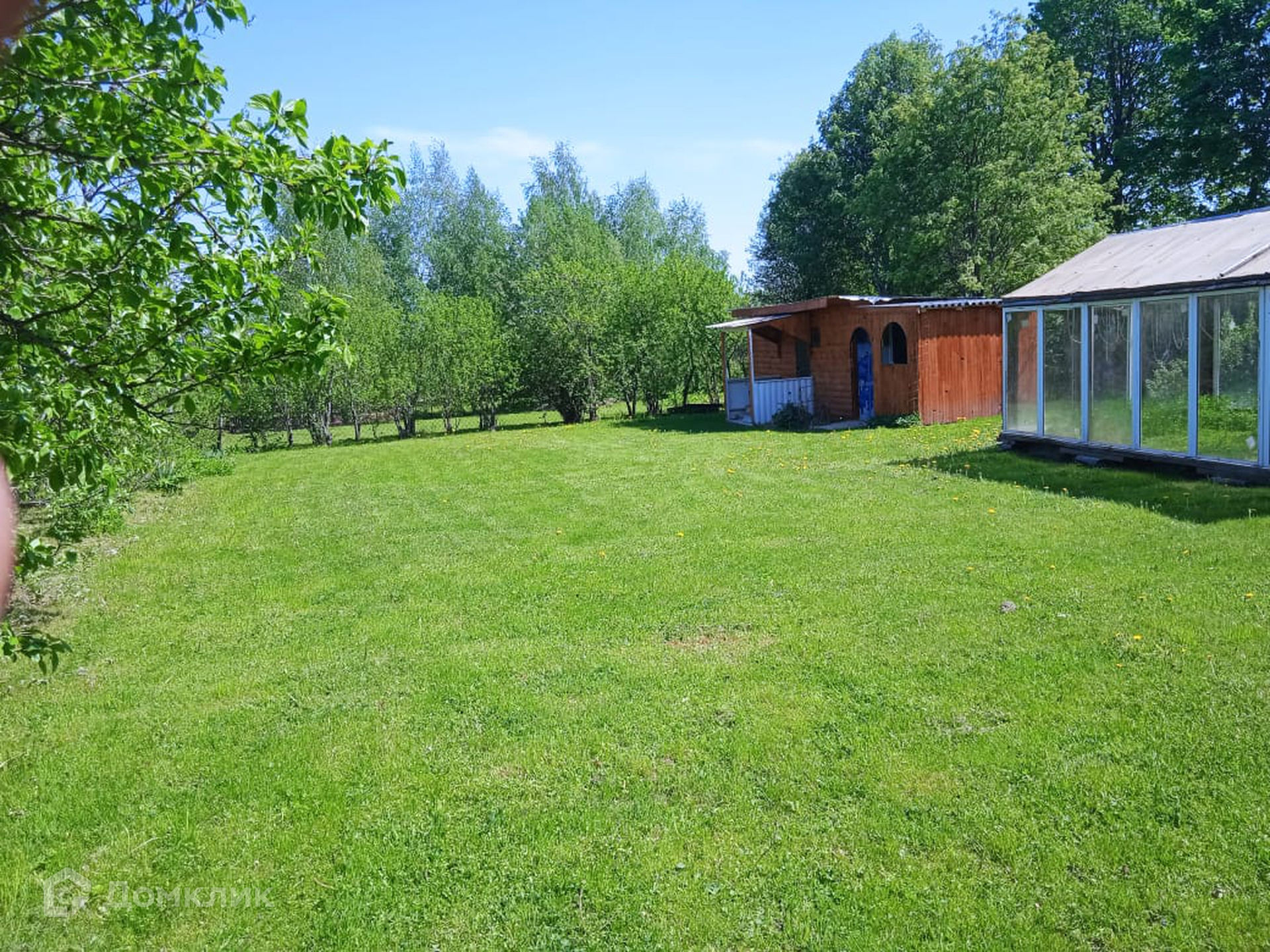 На участке расположен парник из стеклопакетов. Участок ровный, ухоженный, правильной формы  с альпийской горкой. За участком находится пруд, на берегу которого баня из бруса и бревен 30 м кв, хозблок, гараж и металлический навес. На территории расположена летняя комната с отделкой блокхаусом и вагонкой.