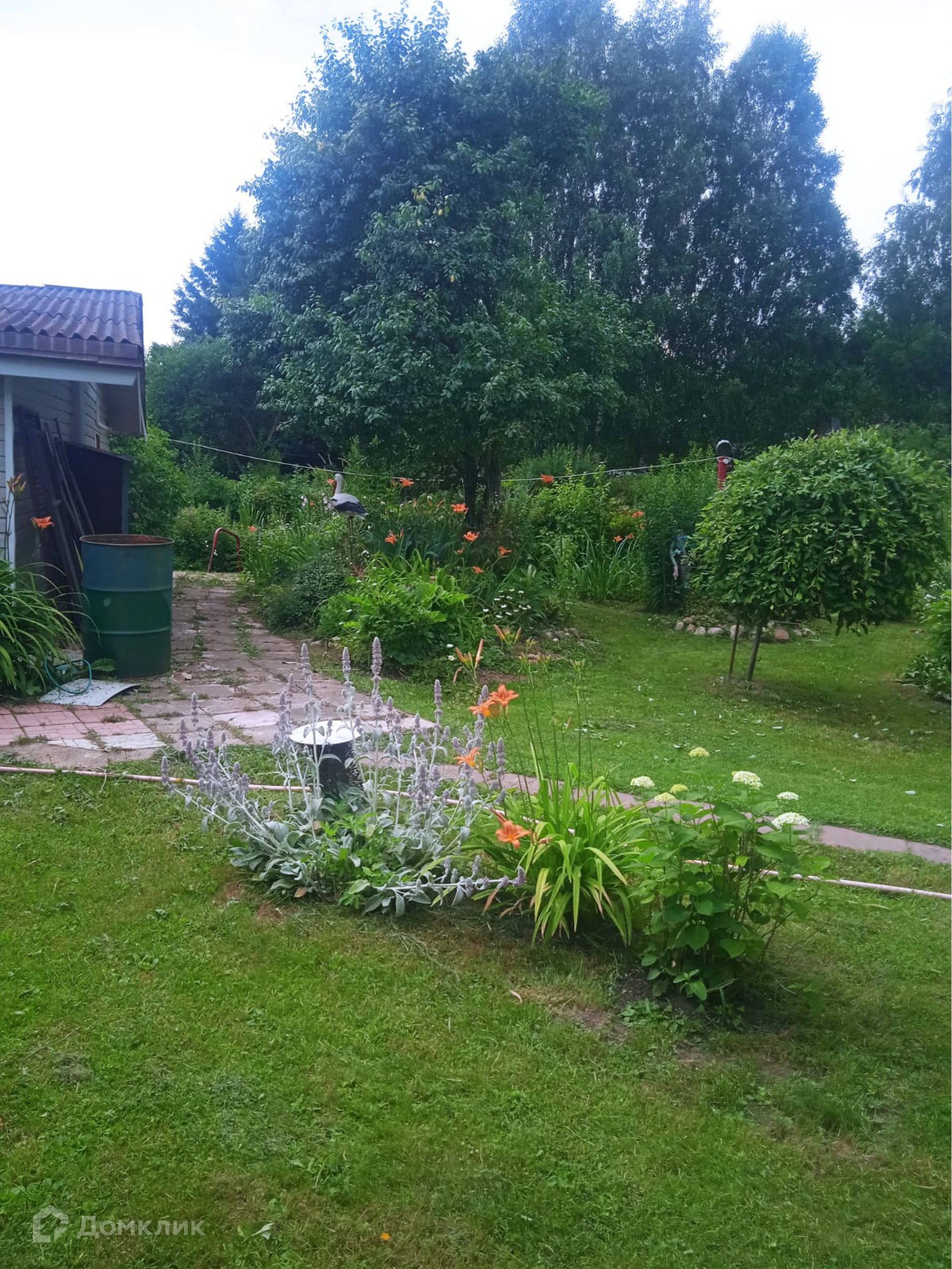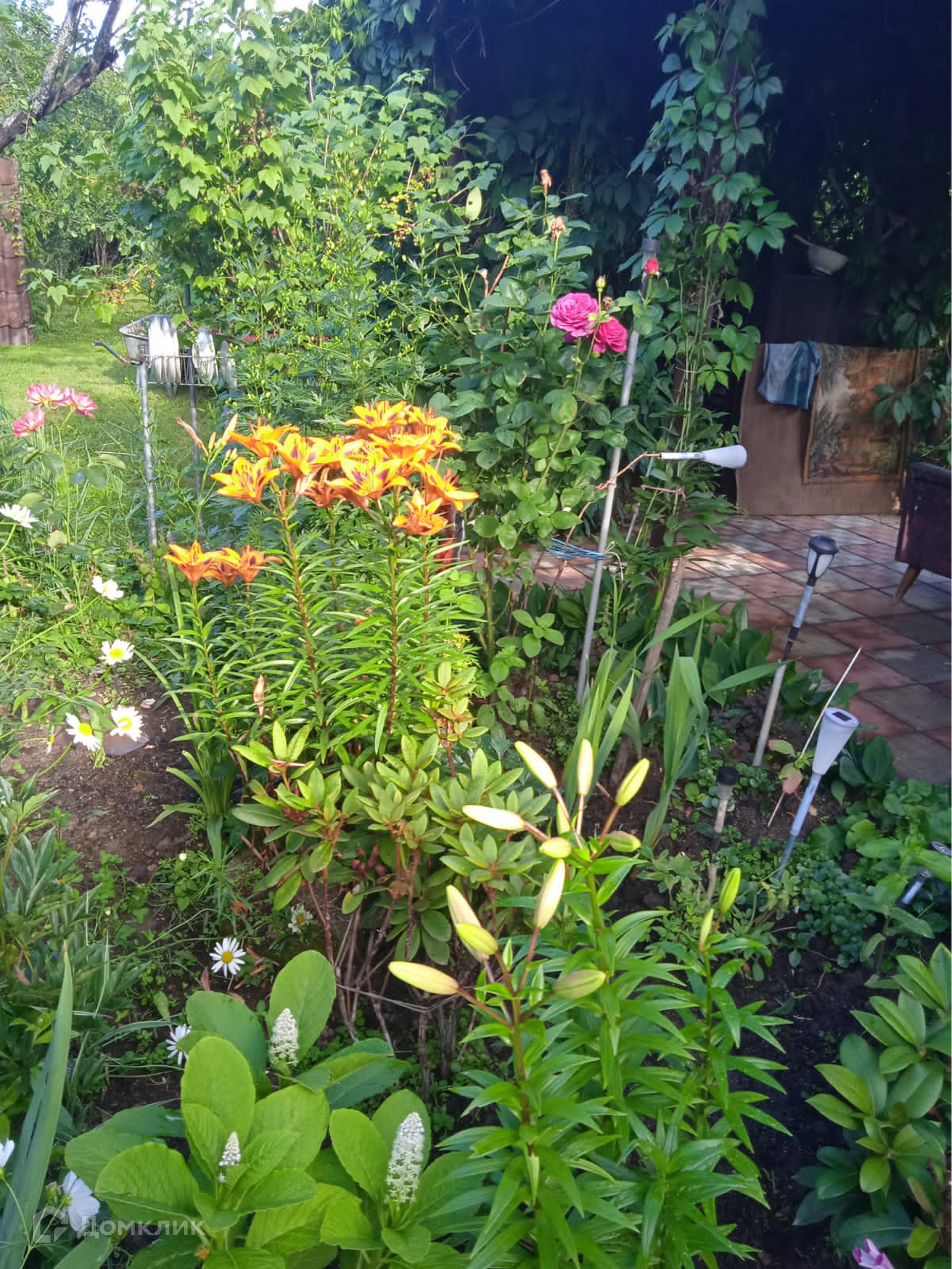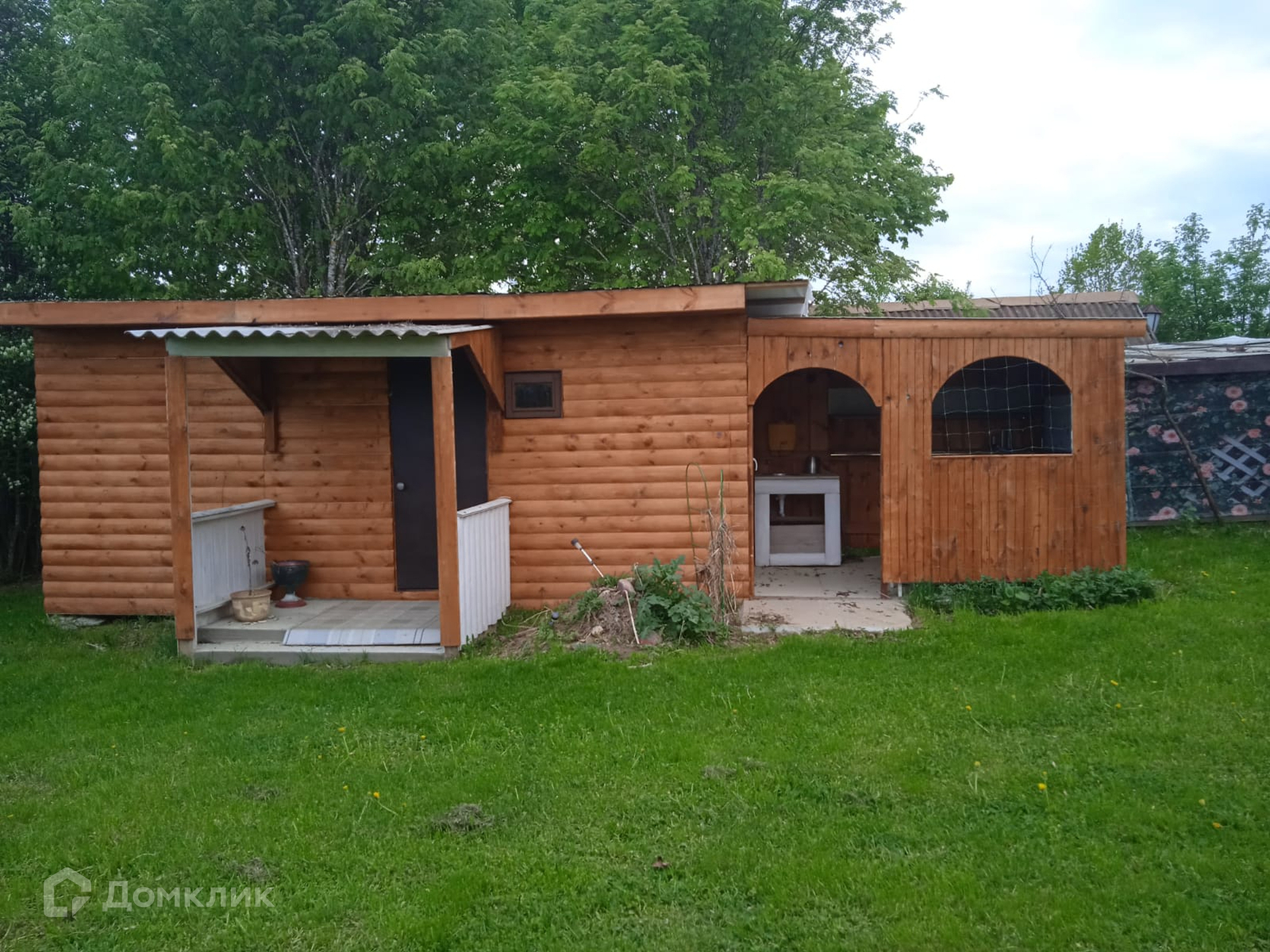 На участке расположен парник из стеклопакетов. Участок ровный, ухоженный, правильной формы  с альпийской горкой. За участком находится пруд, на берегу которого баня из бруса и бревен 30 м кв, хозблок, гараж и металлический навес. На территории расположена летняя комната с отделкой блокхаусом и вагонкой.