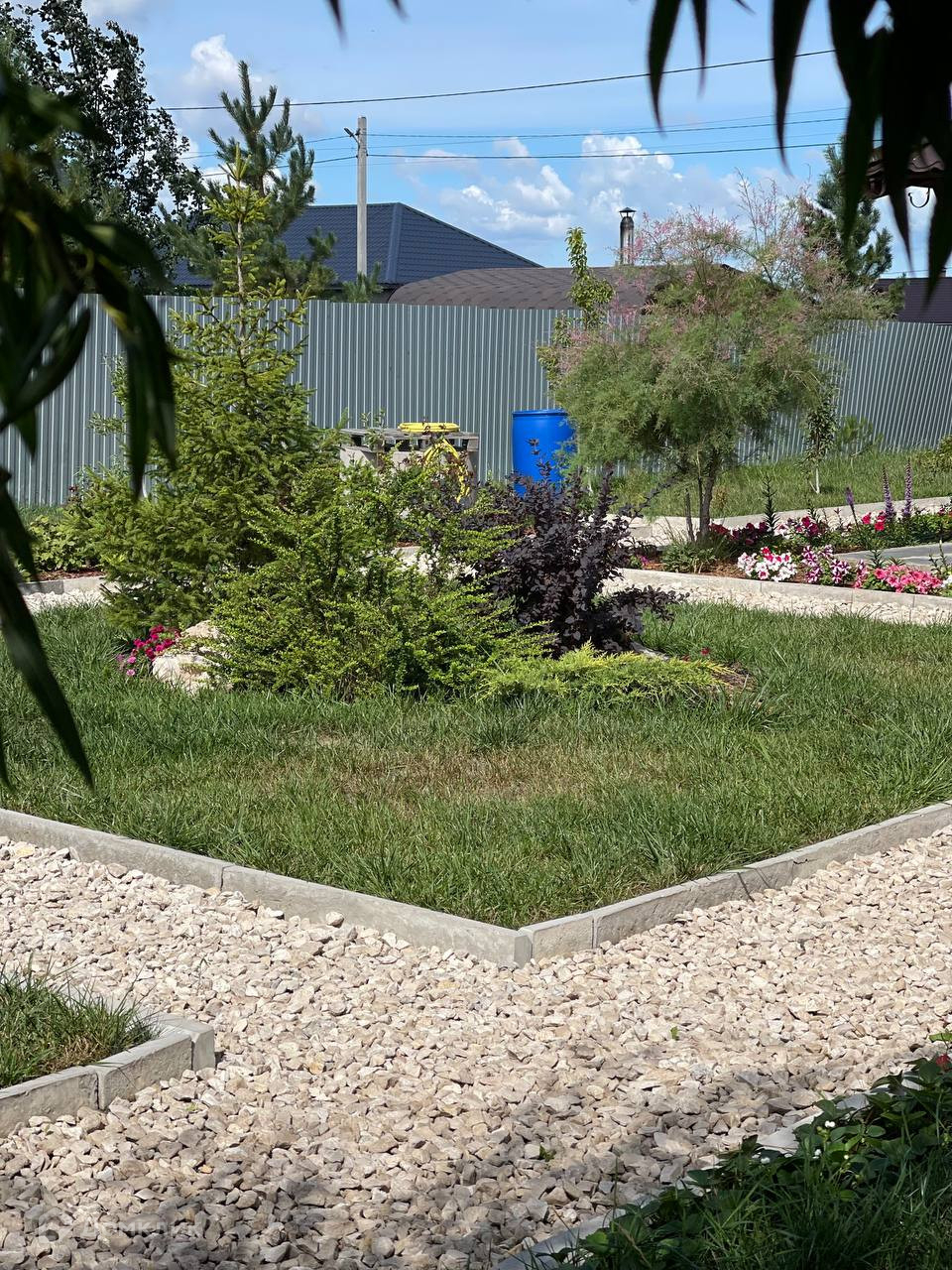 Забор по периметру участка.