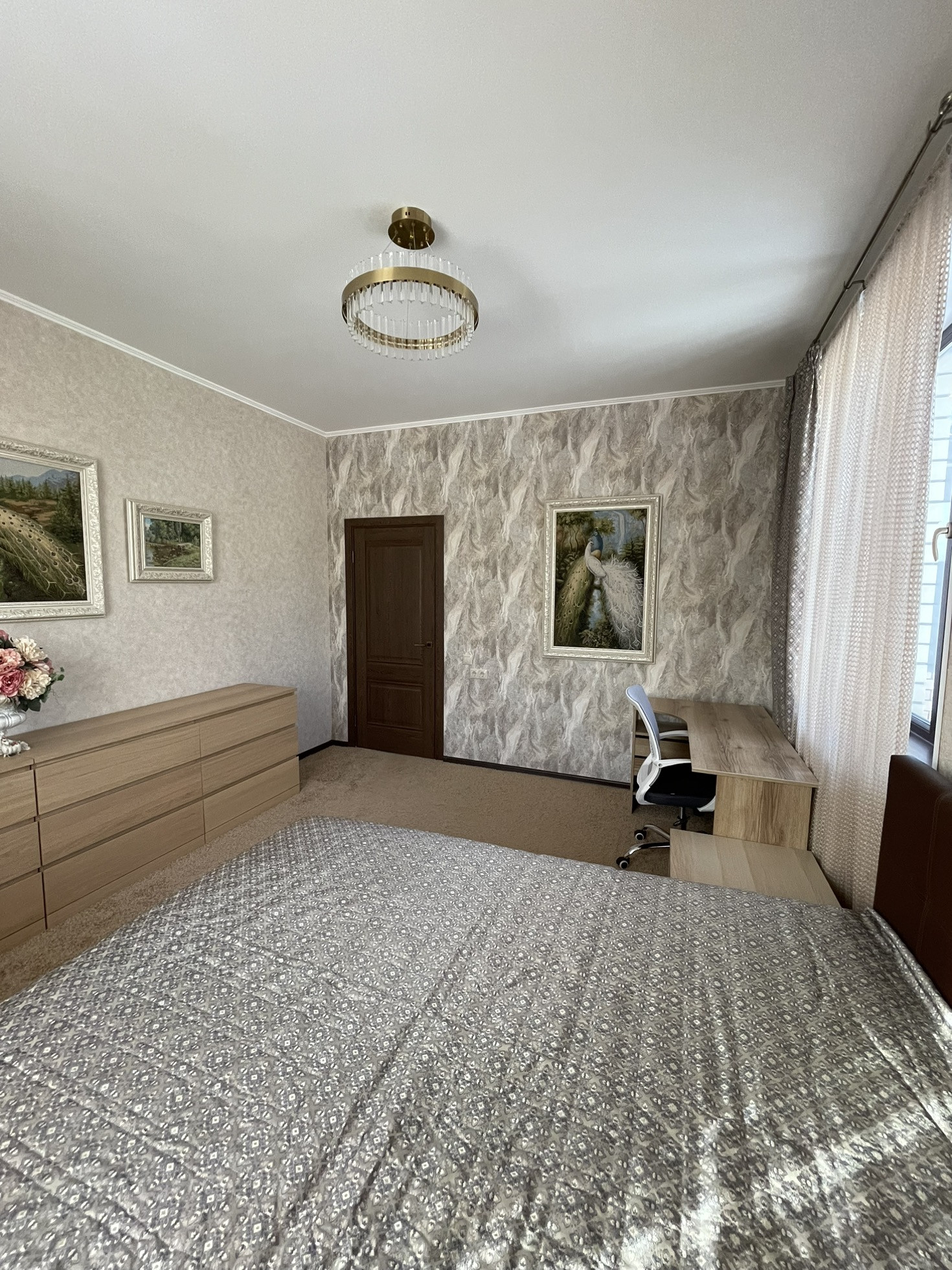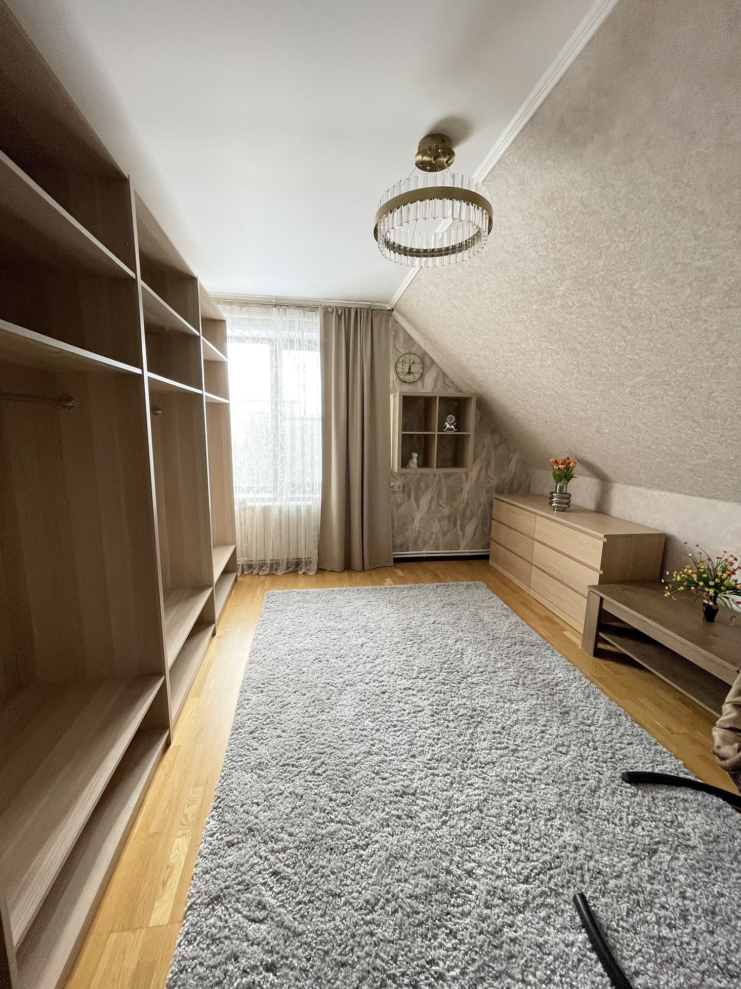 1 этаж: большая, светлая гостиная + кухня, спальня, санузел, гардеробная, высота потолков: 2,85 см.