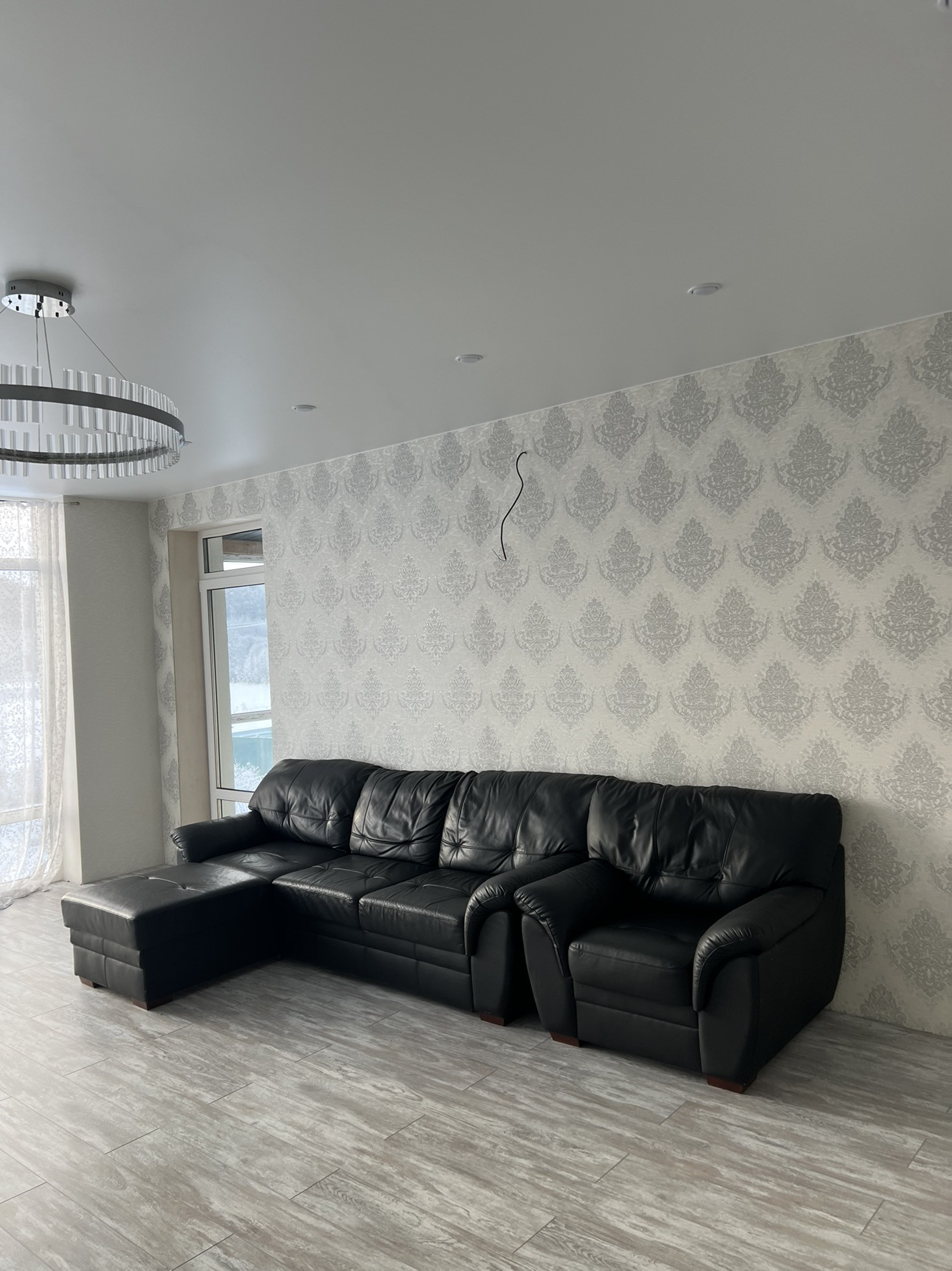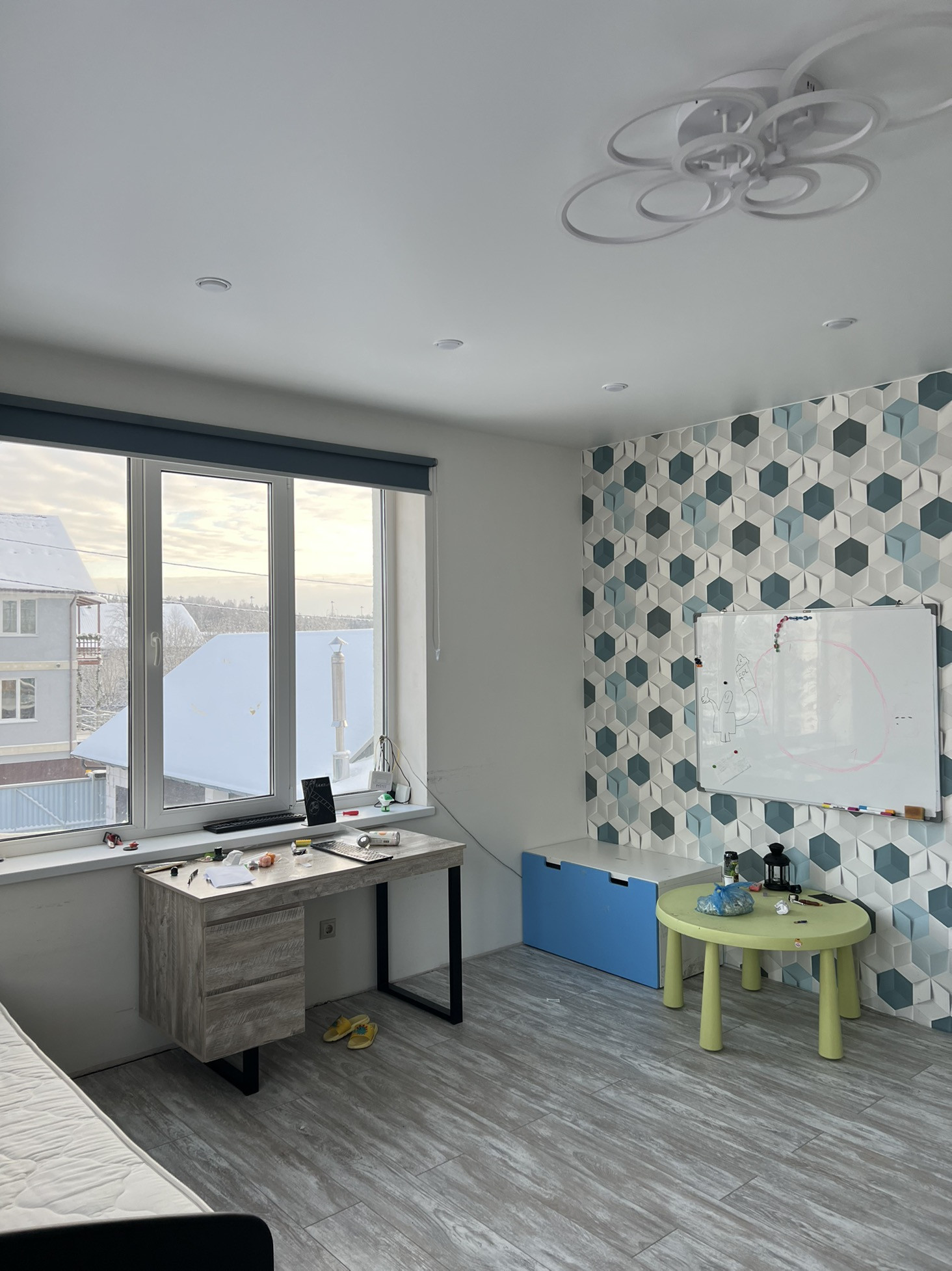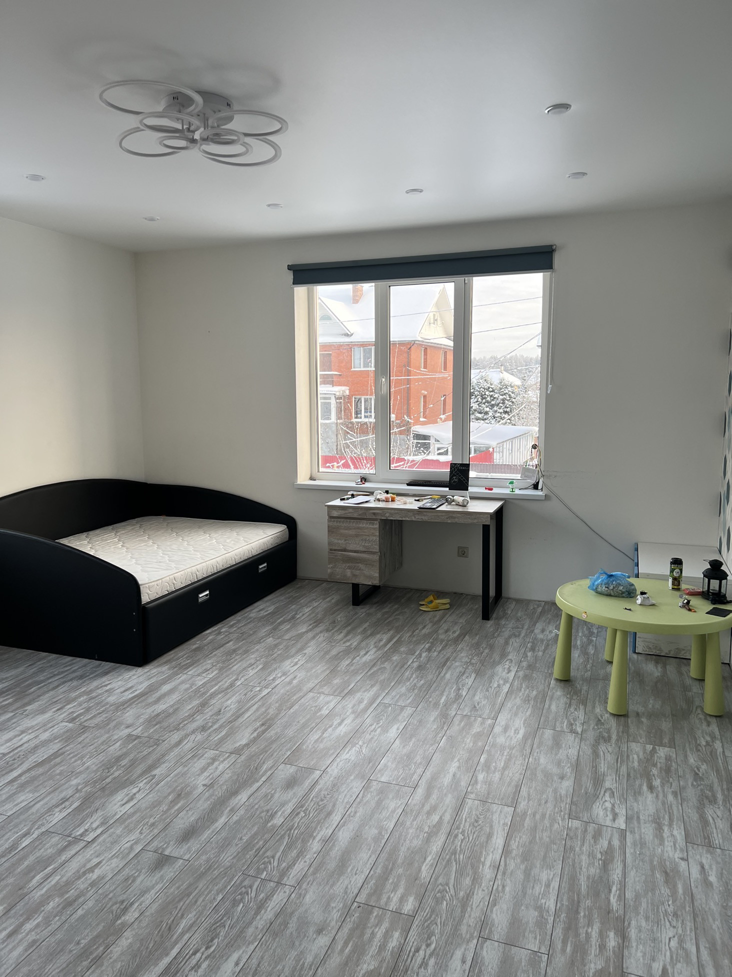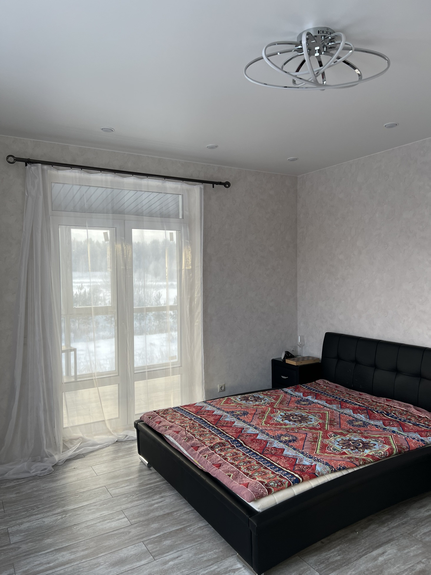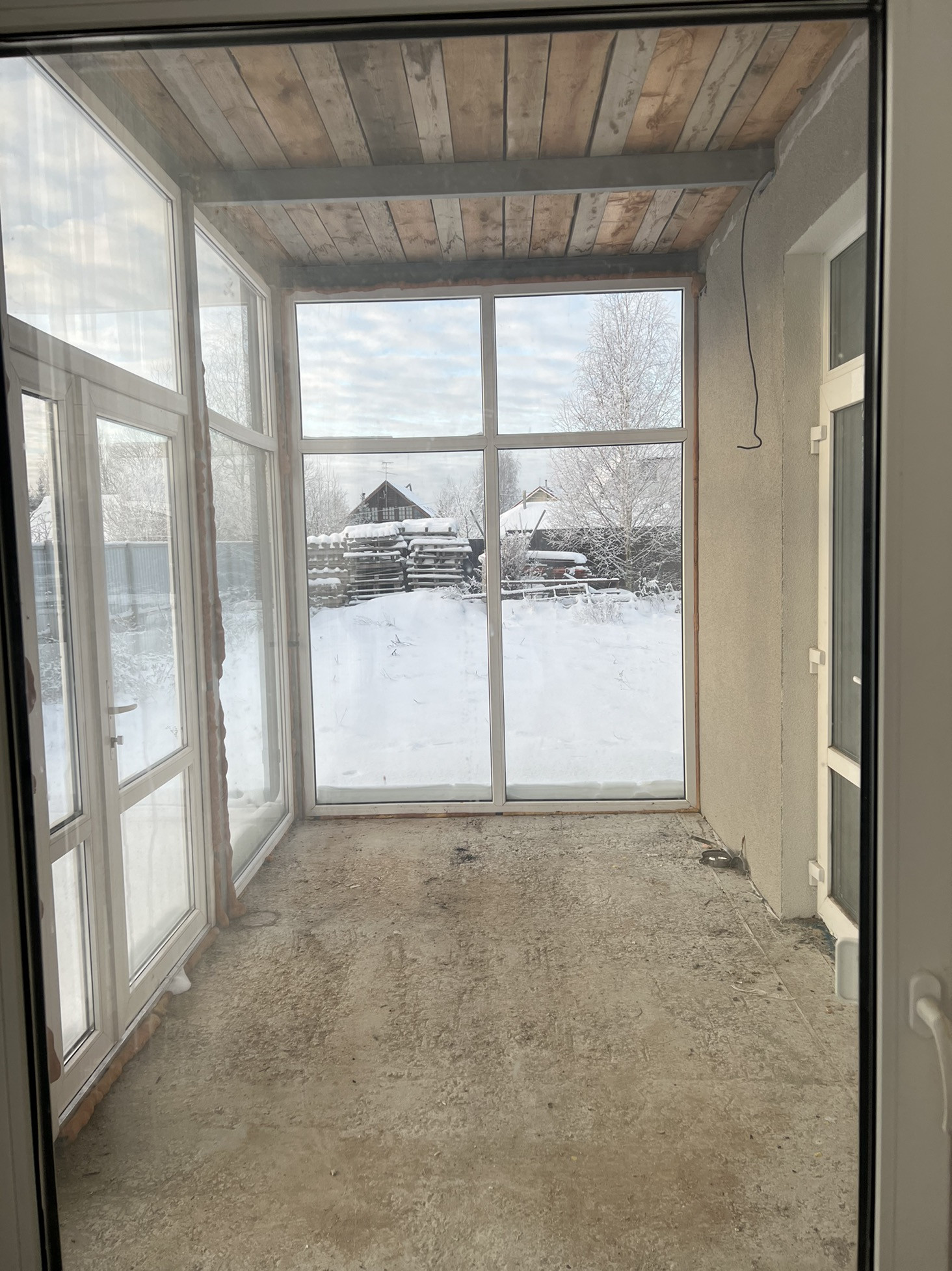 На втором этаже три спальни,большой хол,туалет,ванная и лестница на мансарду.Большие панорамные окна.