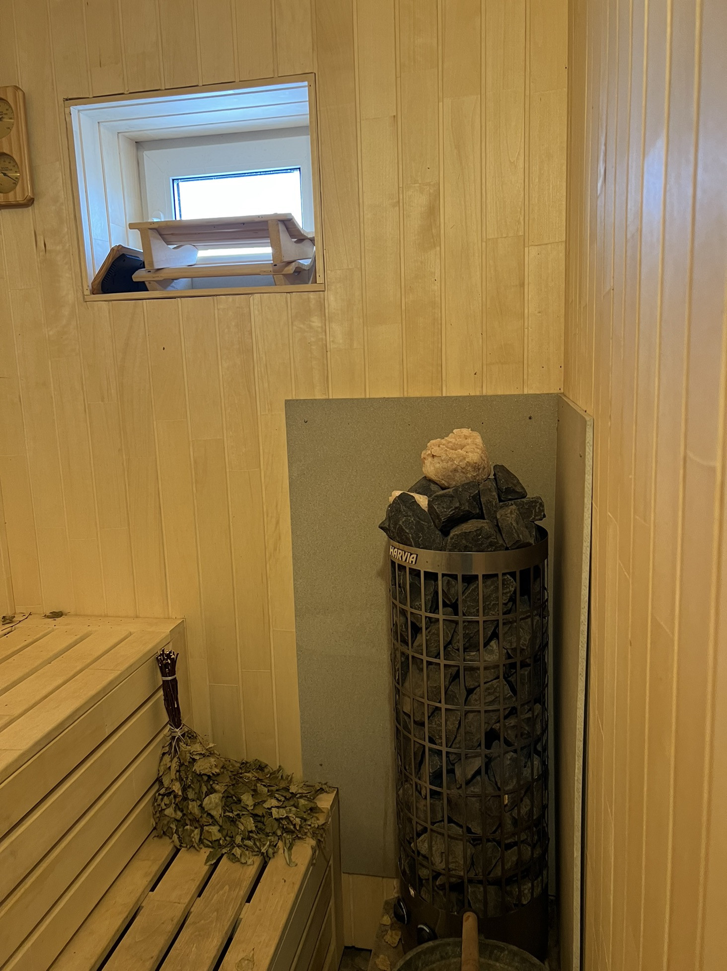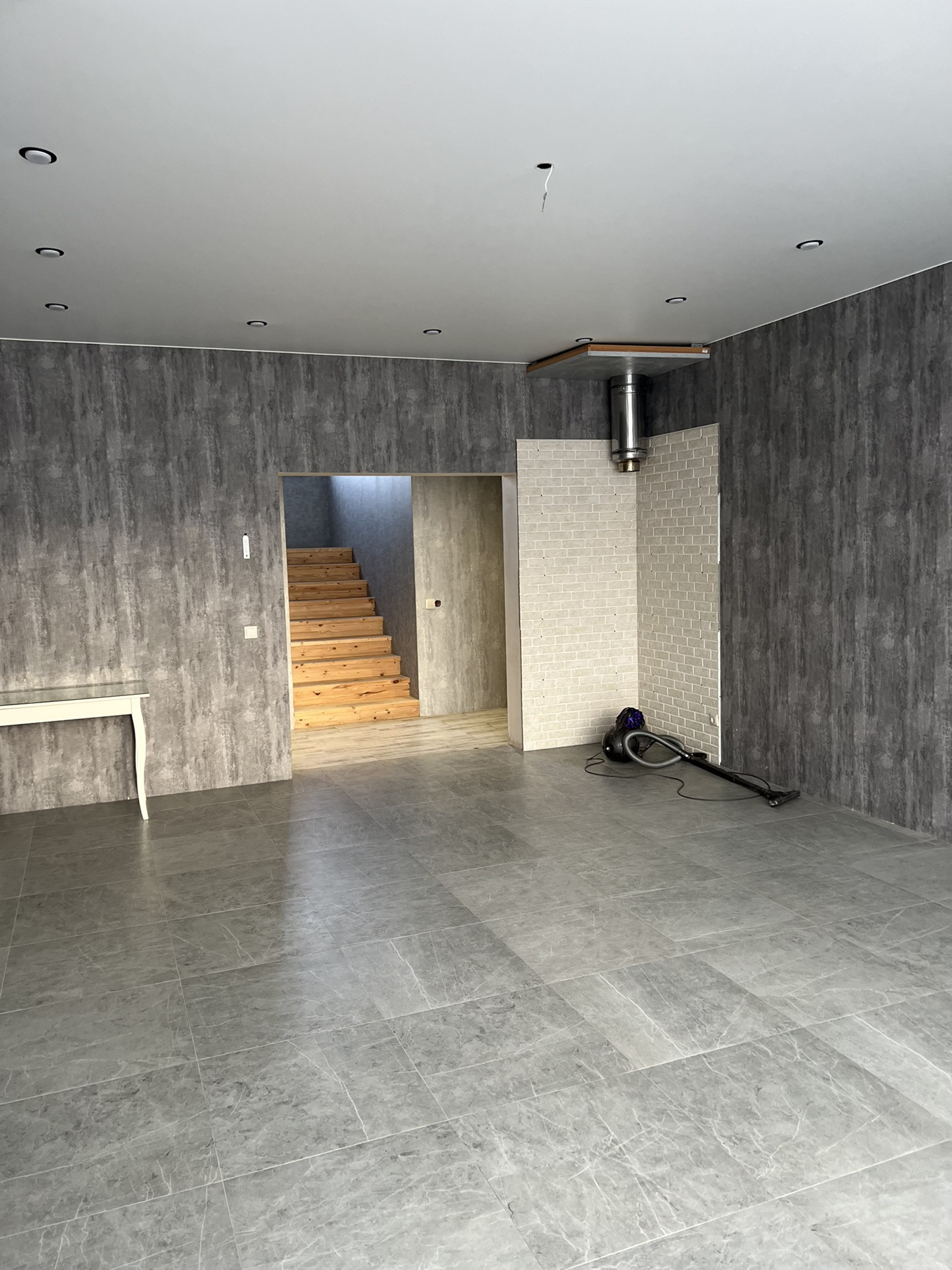 В доме на первом этаже находится прихожая,кухня,котельная,большой зал,мастерспальная,сауна и постирочная.Лестница на второй этаж.