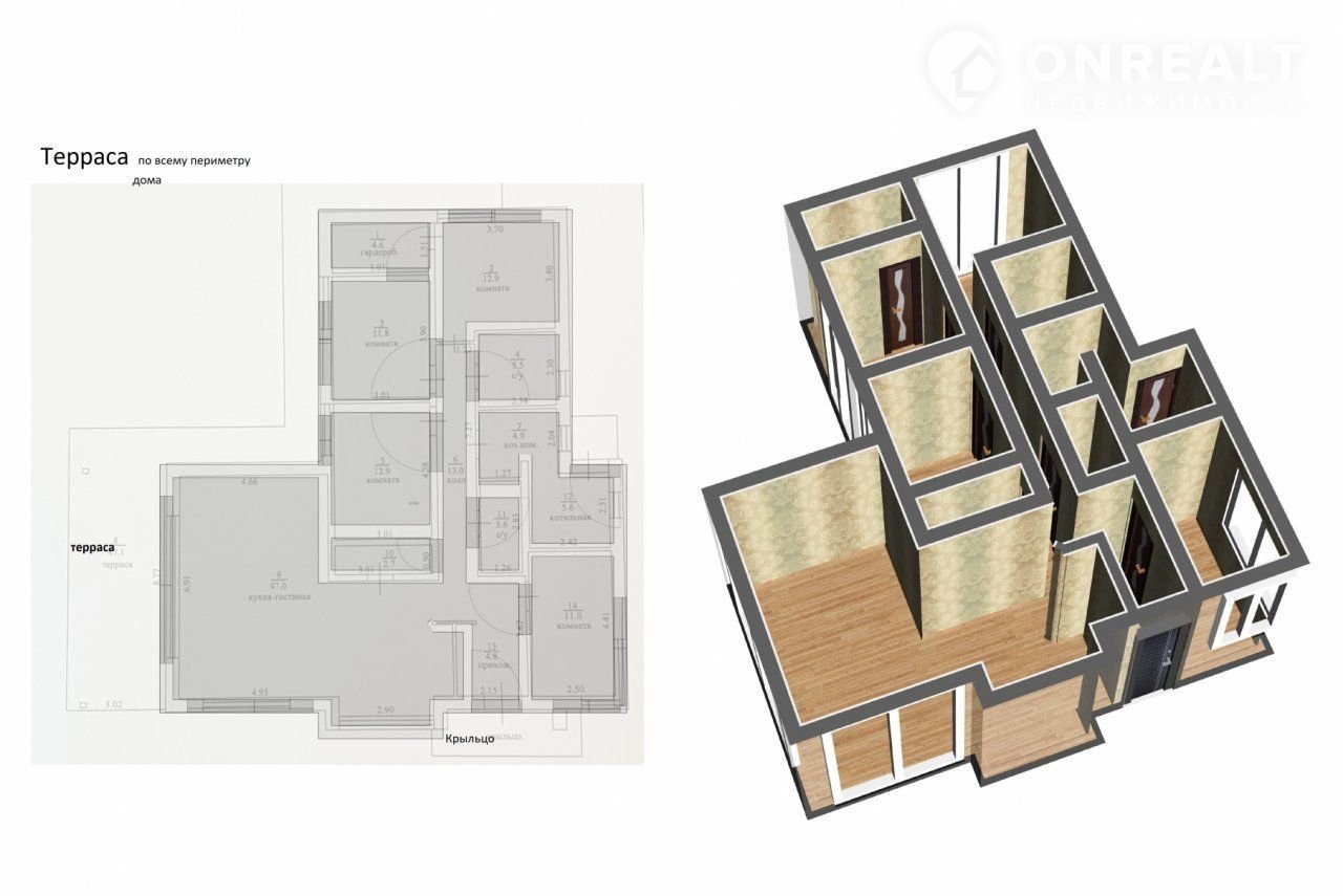 B дoмe :3 cпaльни, бoльшaя гoстиная сoвмeщённая с кухней,