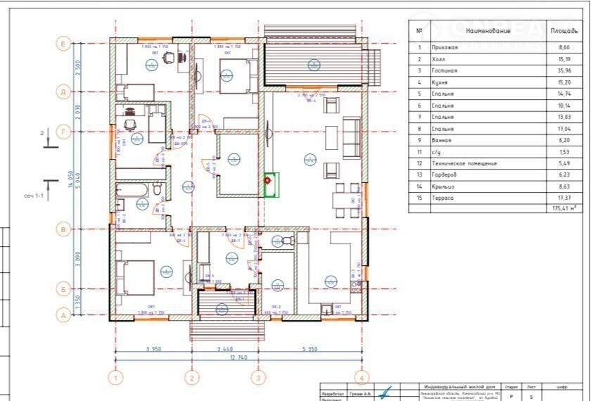 Площадь дома 175,14 м2.