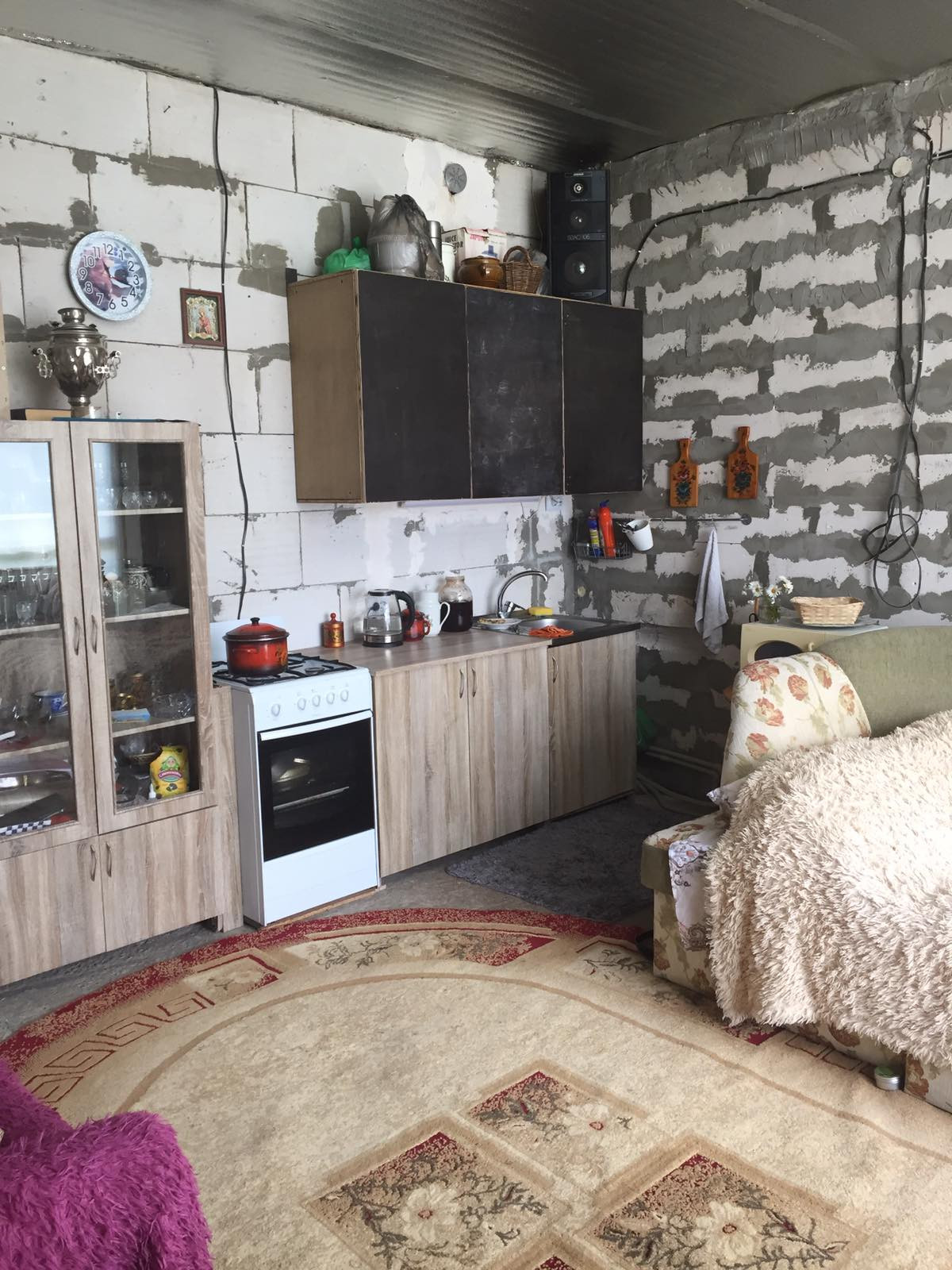 Дом из газосиликата, 160 кв. м под штукатурку, ленточный фундамент. Дом жилой, первый этаж: гостиная 20 кв м, кухня 20 кв м, с/уз совместный (душевая кабина), котельная и прихожая. Второй этаж свободная планировка с балконом. Есть центральная вода, АГВ (двух контурный котёл), канализация (выгребная яма 9 кубов), электричество. 6,3 сотки земли (с межеваниям), плодовые деревья и кустарники(малина, смородина, крыжовник). В доме есть погреб, сарай, Место живописное, лес, озеро, а также недалеко магазин и остановка.