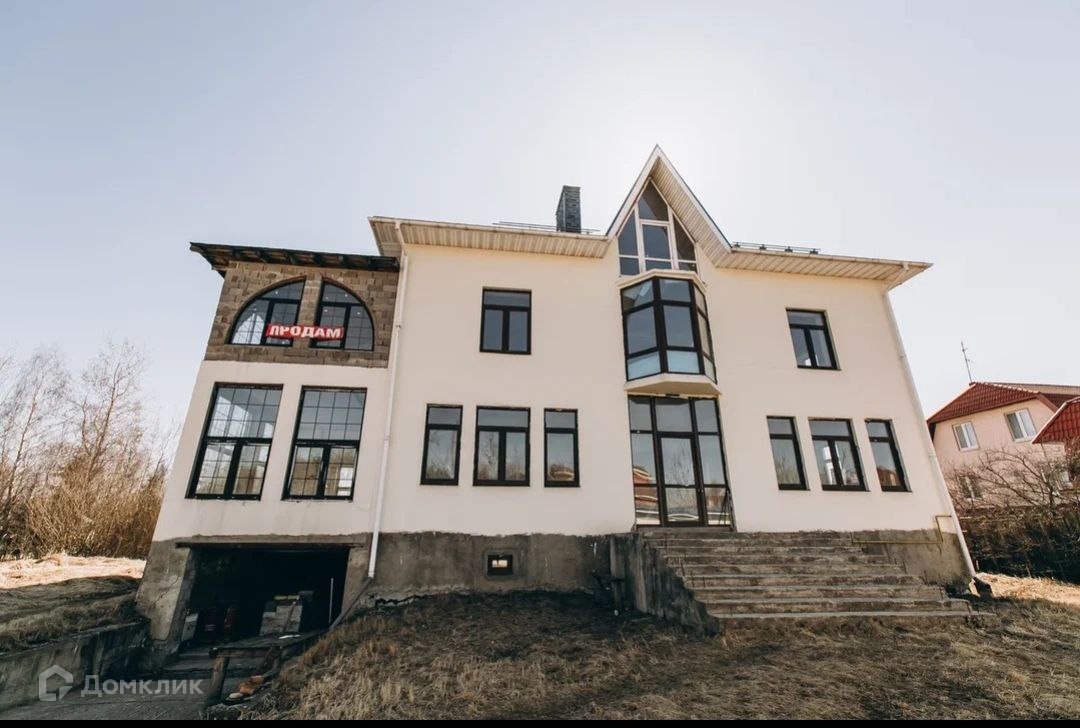 Продается дом в тихом и уютном поселке на территории новой Москвы, площадью 730 м2 под отделку с эркером и выступающей лестницей главного входа. ИЖС