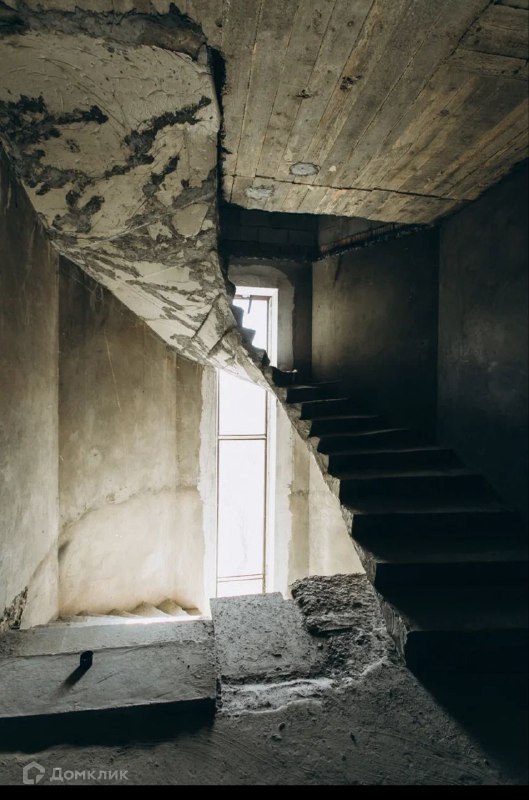Вторая часть относительно входа расположена лестница с забежными ступенями, выполненными из железобетона.