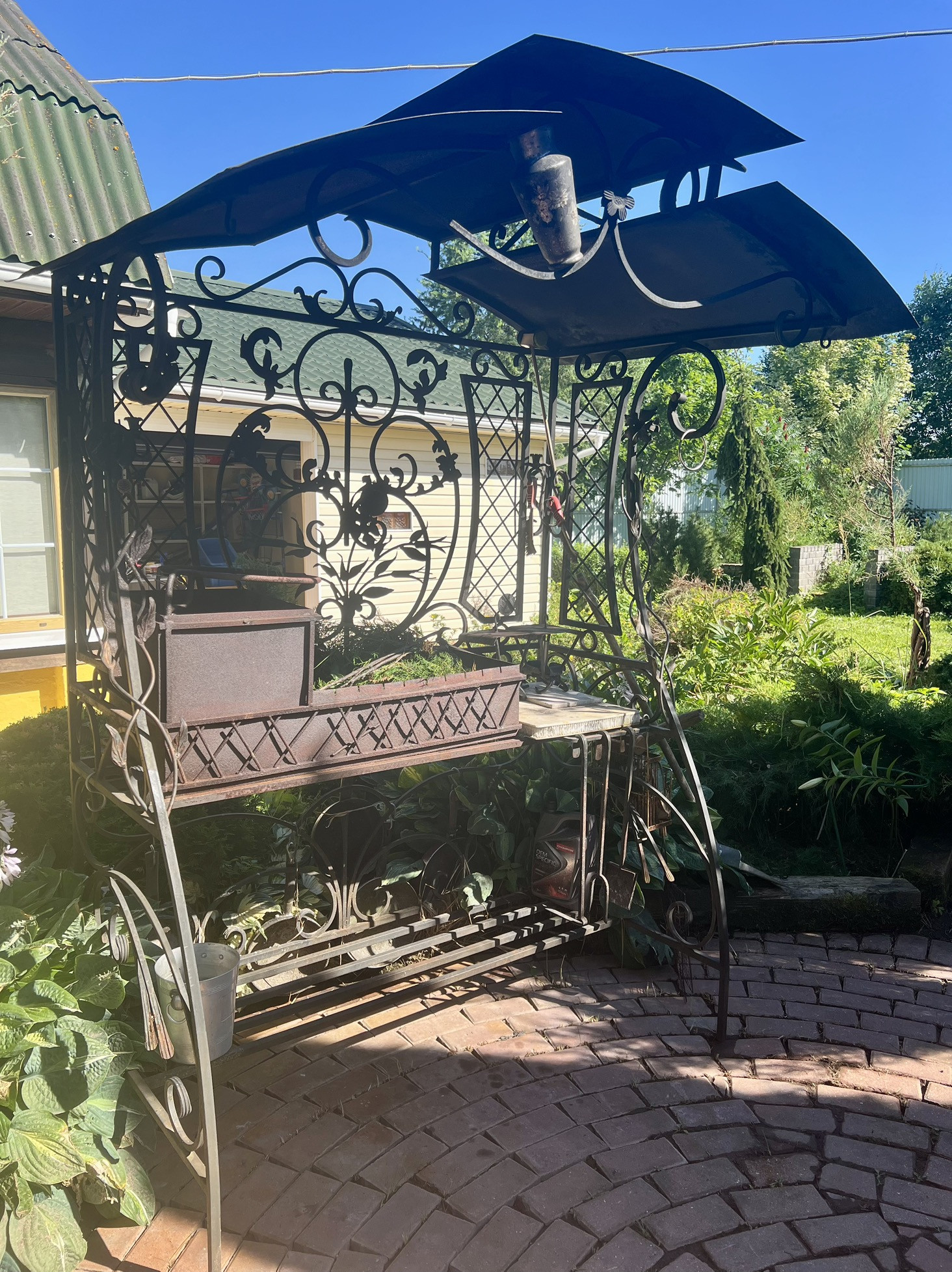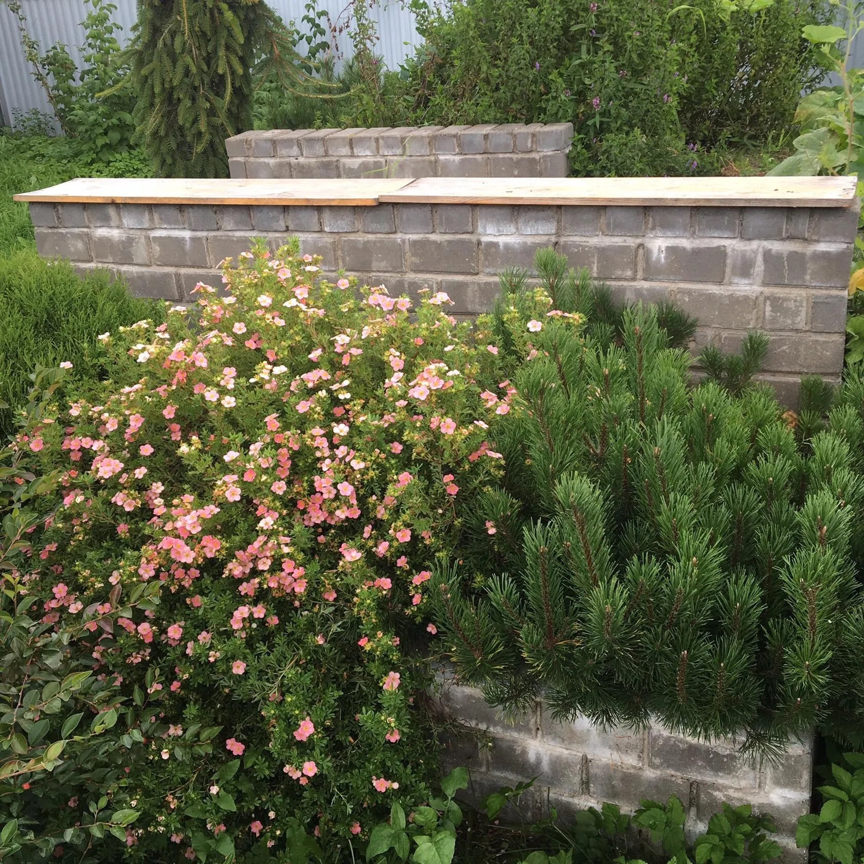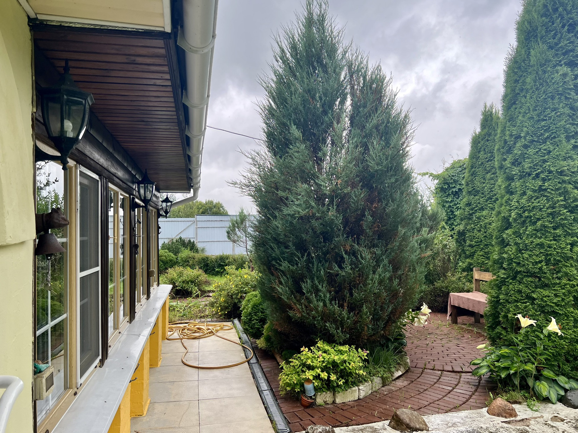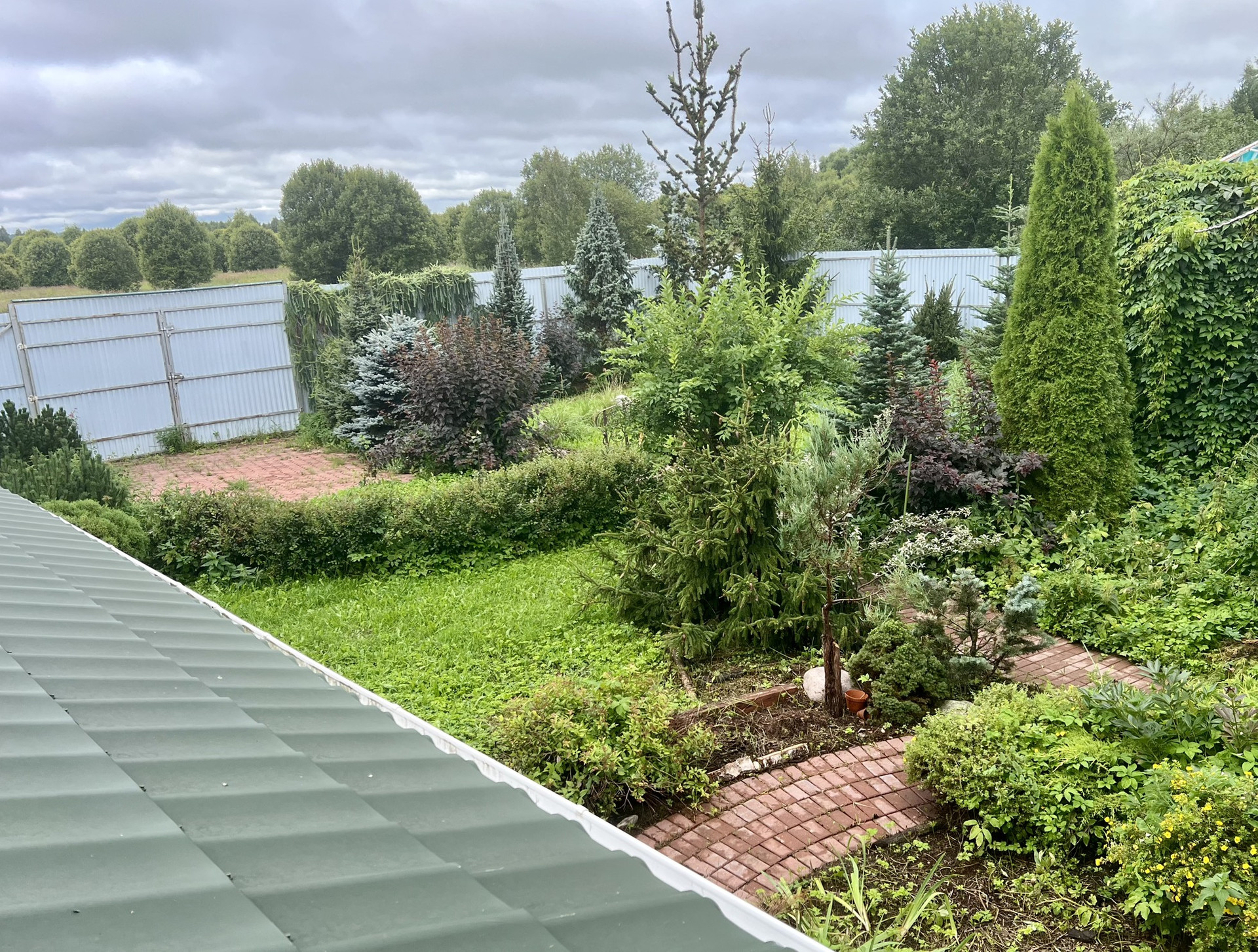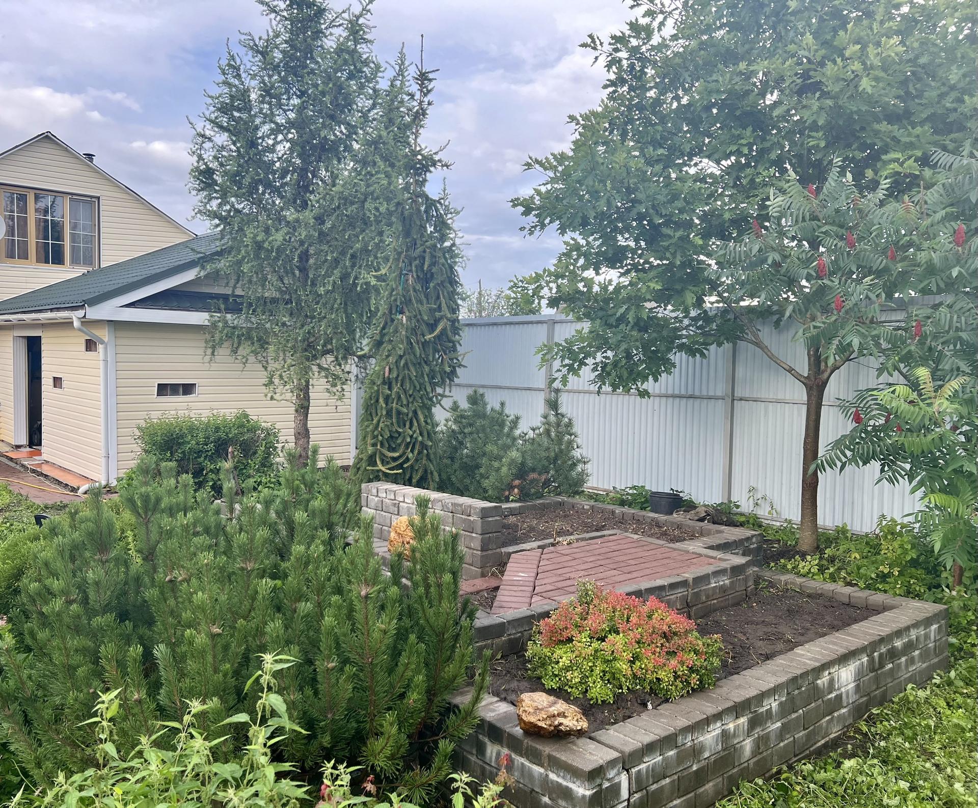 На участке много плодово-ягодных кустов и деревьев : смородина, малина, крыжовник, яблони, сливы, вишни.