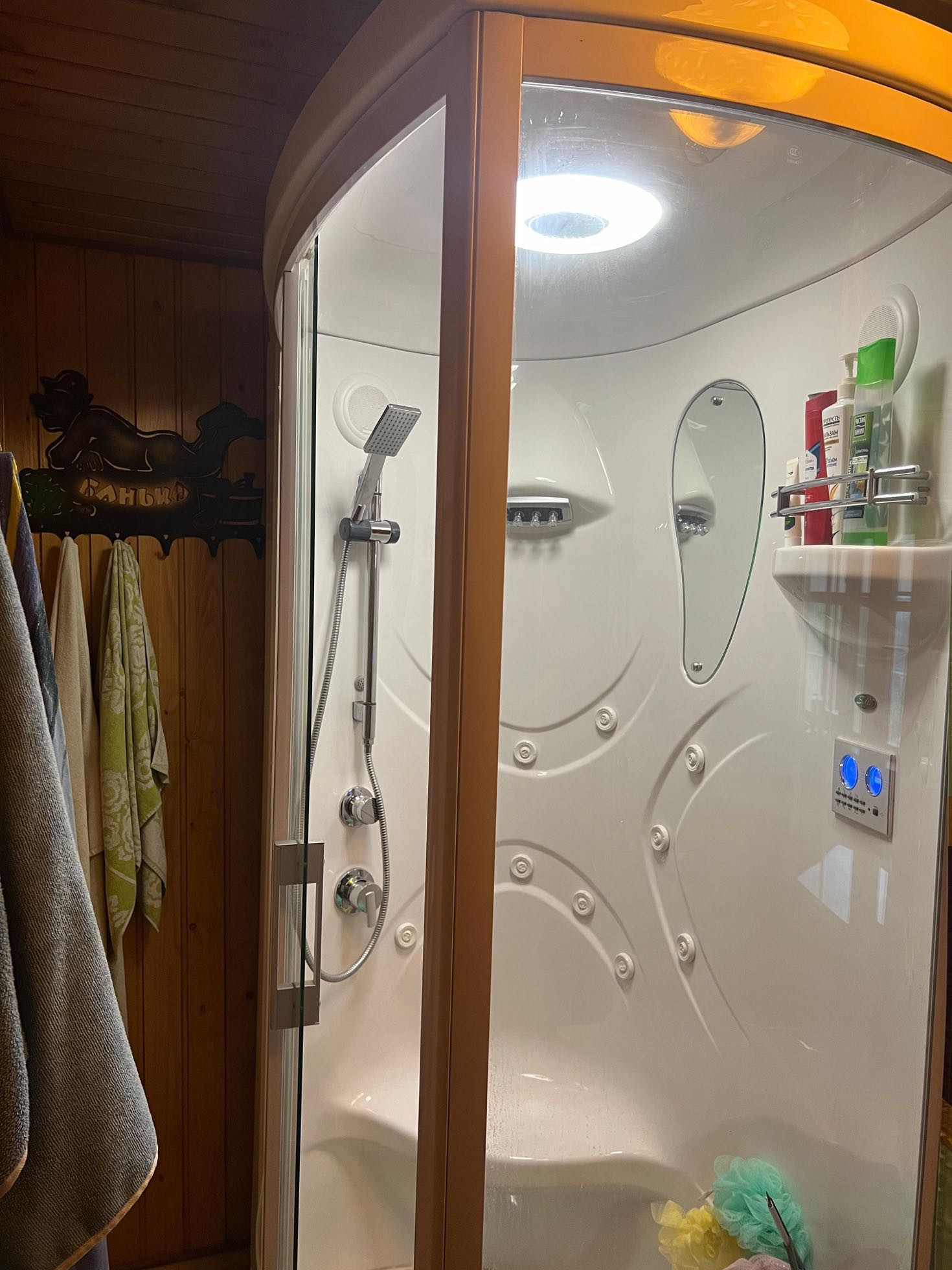 На первом этаже :финская баня, душ с гидромассажем