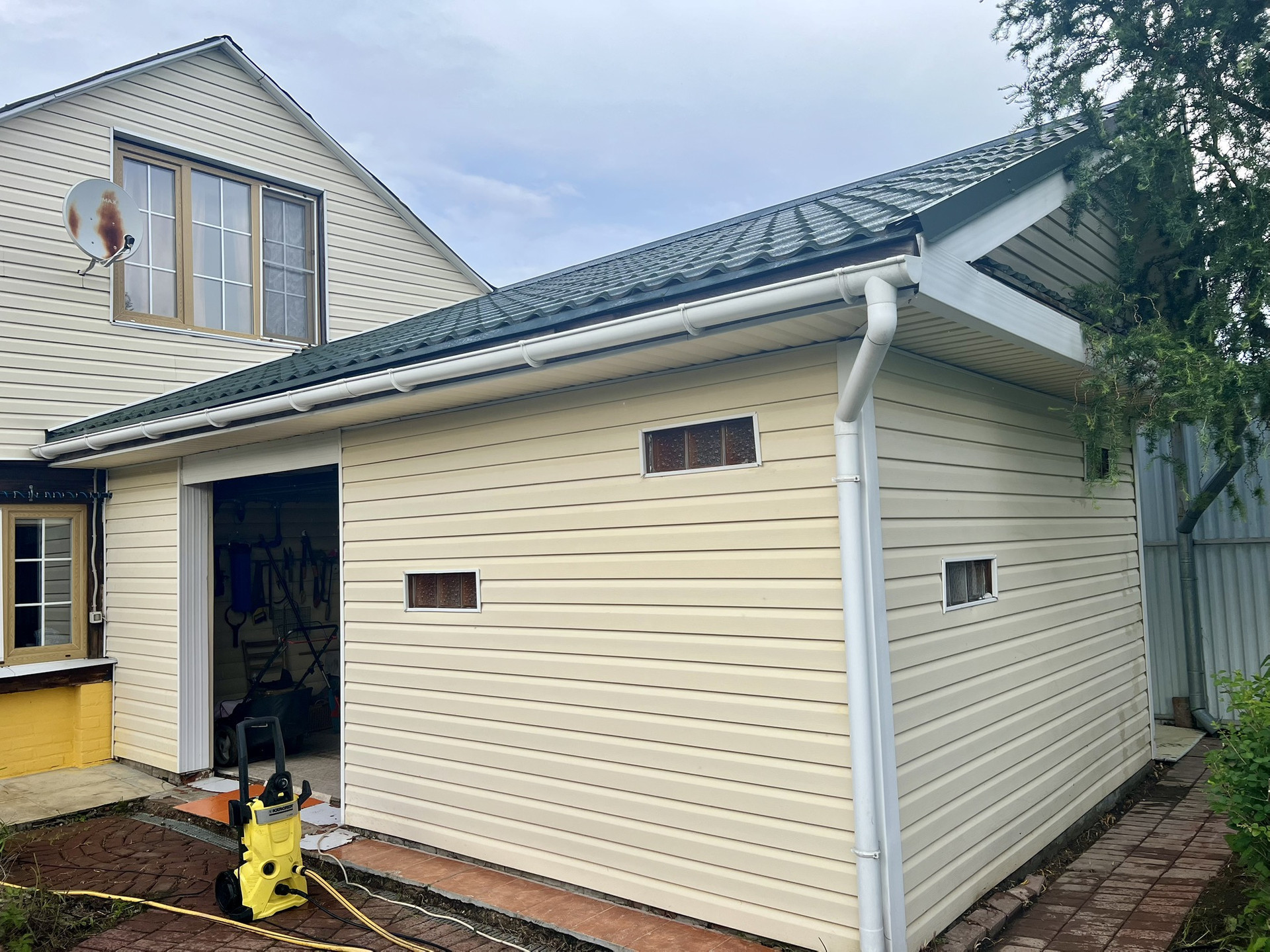 К дому пристроена генераторная и подсобка.