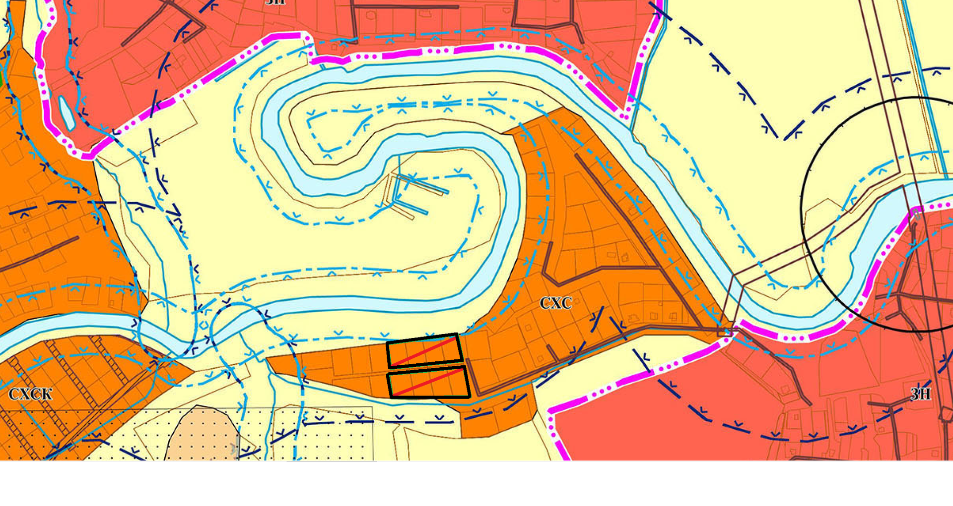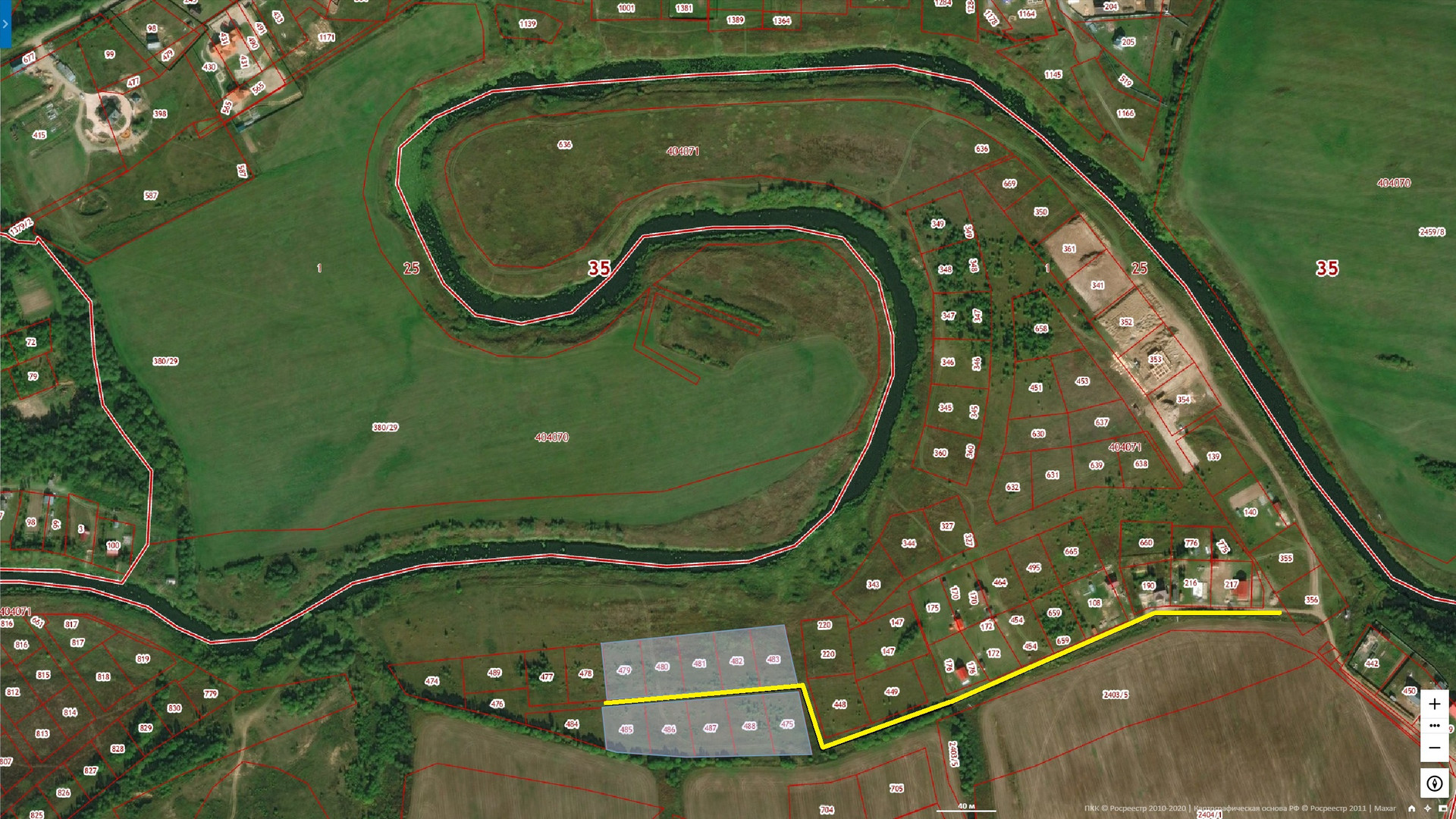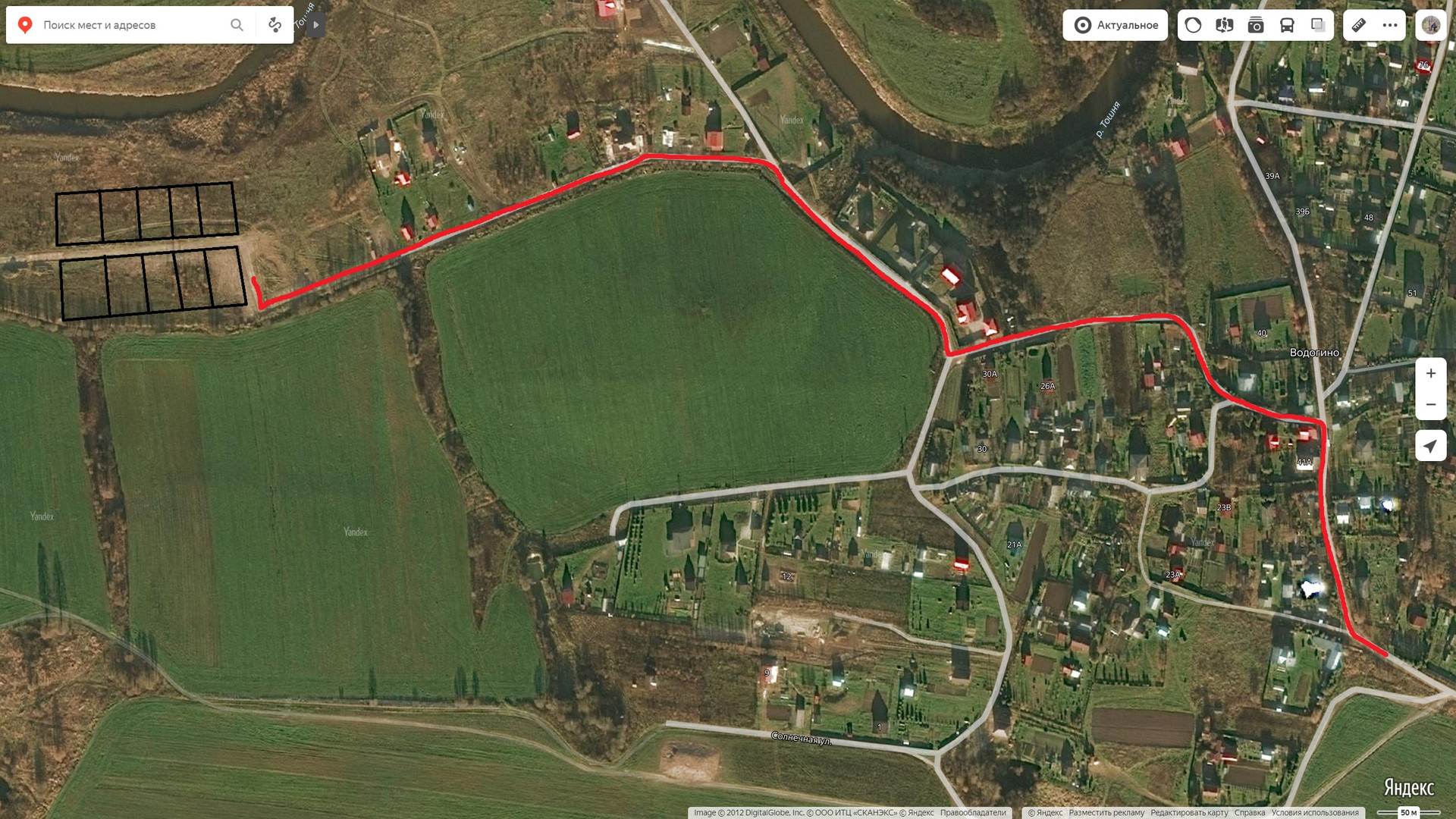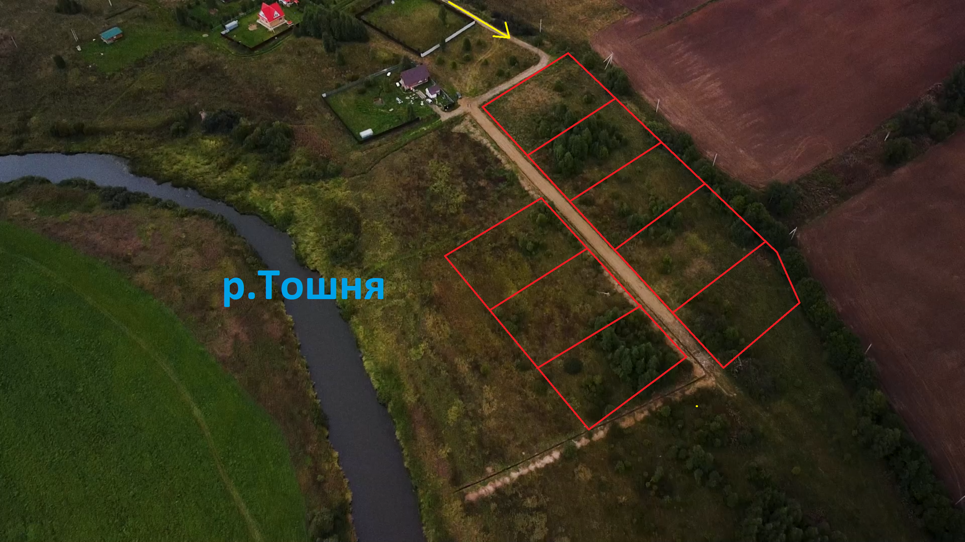 Участки СНТ. береговая реки "Тошня".