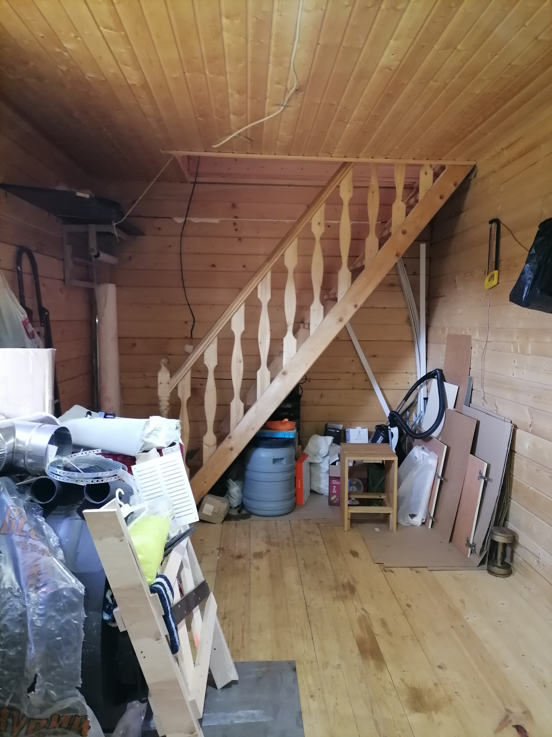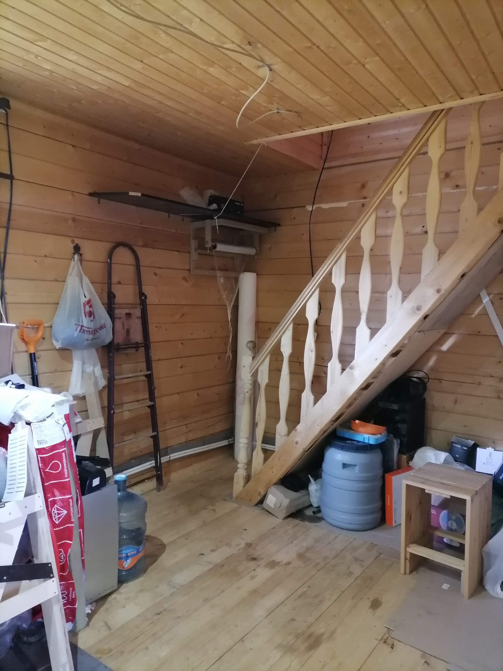 - По плану в доме на втором этаже был предусмотрен балкон, который зашили и получилось дополнительное кладовое помещение для хранения вещей. Его можно переоборудовать в гардеробную комнату. Поэтому по документам общая площадь дома 47.5 кв.м., а по факту 60 кв.м.
