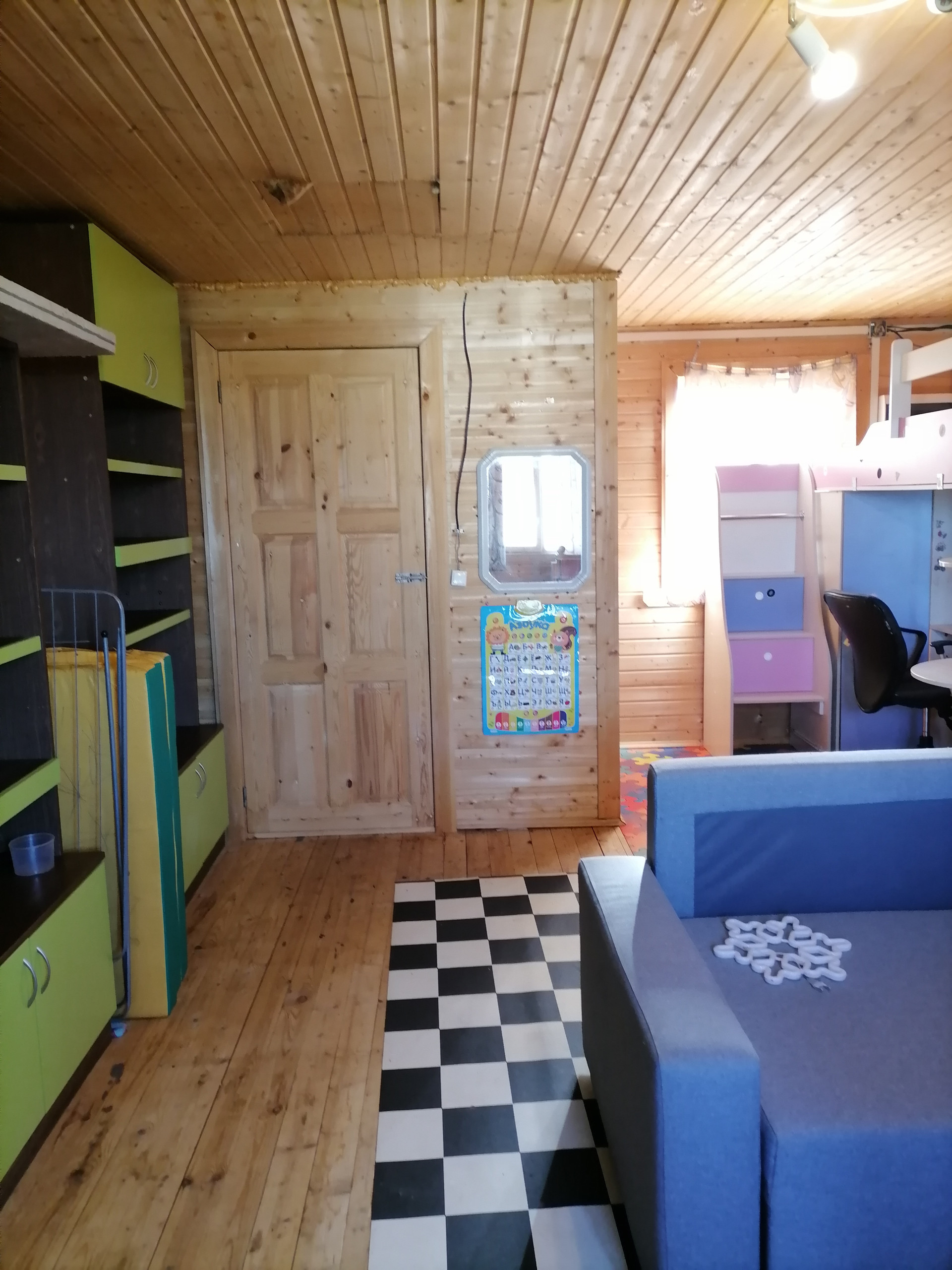- Внутри дом обшит вагонкой. Окна - деревянные стекло пакеты.