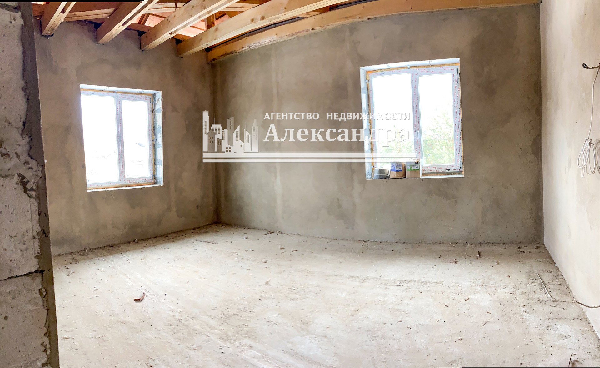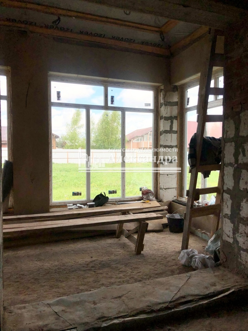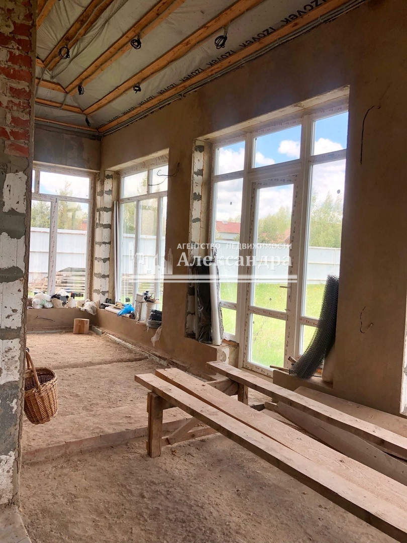 Дом в черновой отделке. Стены оштукатурены. Выполнена проводка в стенах - выходы под розетки и выключатели выведены. Пол первого и второго этажа под отопление тёплый пол. Выход под канализацию сделан. Труба газа рядом с домом. На первом этаже панорамные стеклопакеты.