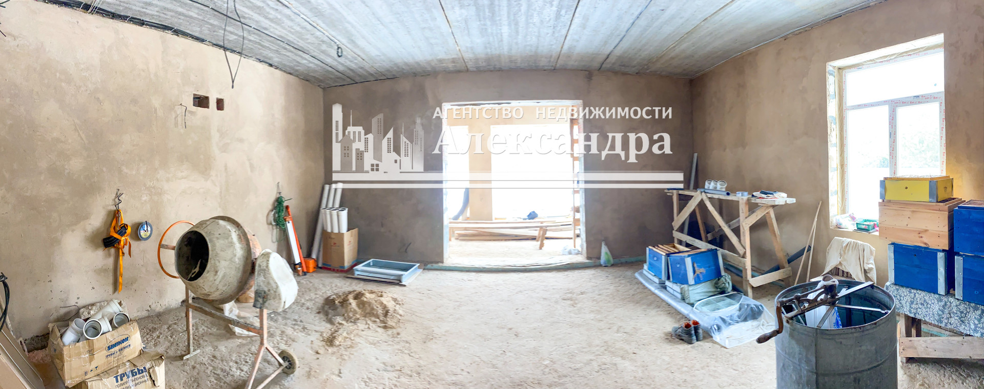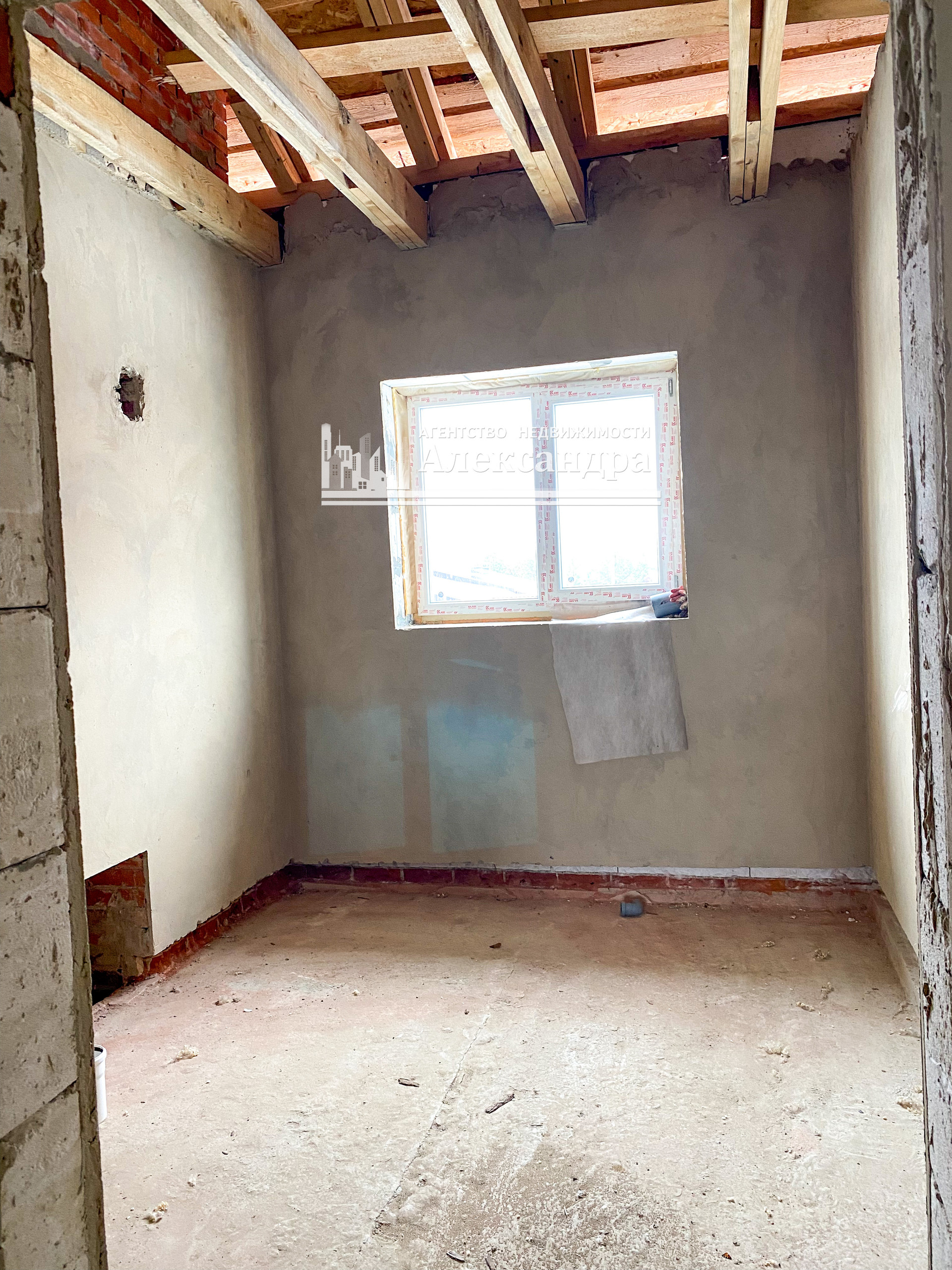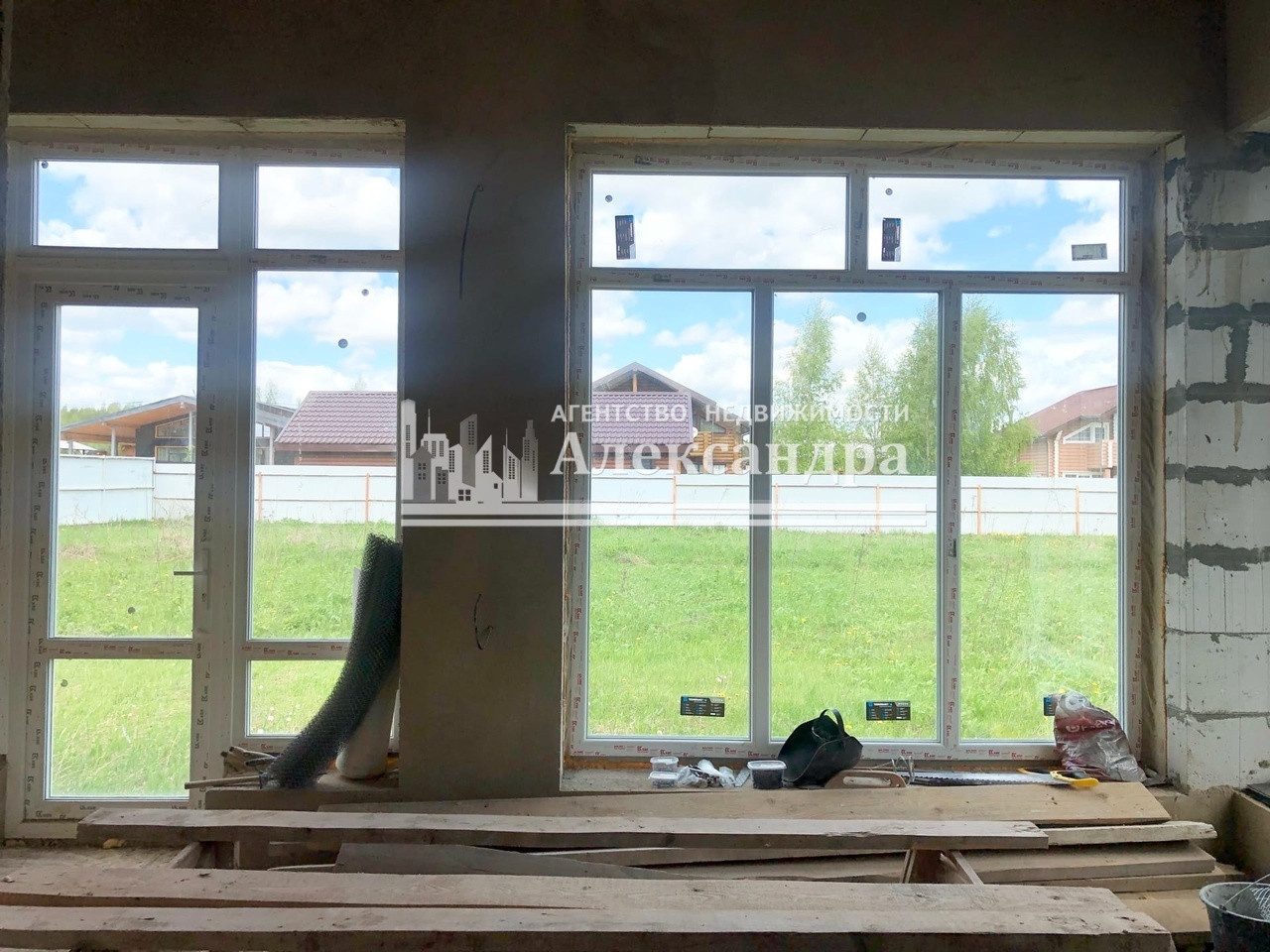 Дом в черновой отделке. Стены оштукатурены. Выполнена проводка в стенах - выходы под розетки и выключатели выведены. Пол первого и второго этажа под отопление тёплый пол. Выход под канализацию сделан. Труба газа рядом с домом. На первом этаже панорамные стеклопакеты.