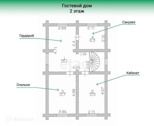 2 этаж – холл, ванная комната, 2 спальни, кабинет.