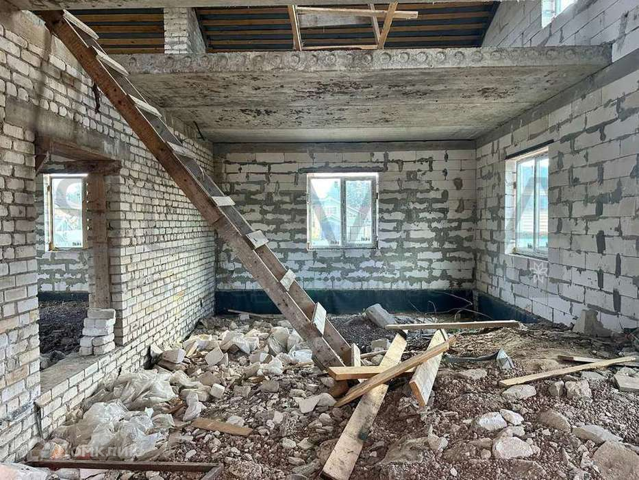 Коттедж из пеноблоков в деревне Волчково, общей площадью 214 кв.м. на земельном участке 9.59 соток. Черновой вариант. Перекрытия железобетонные плиты.