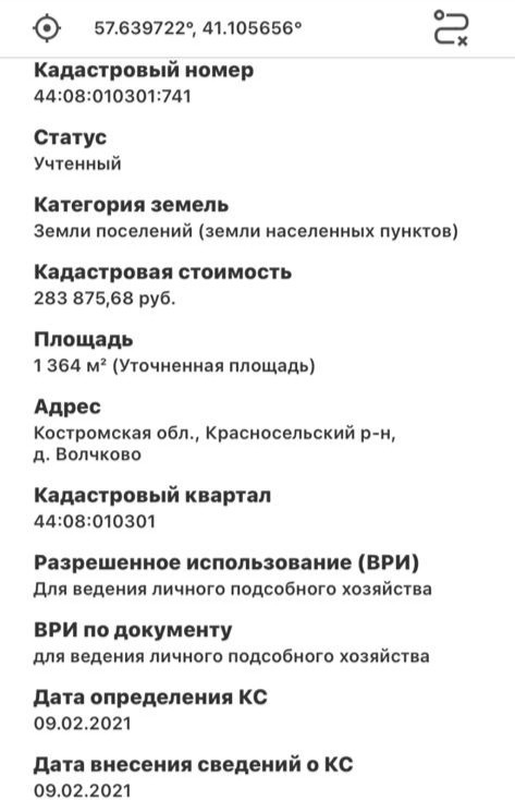 Категория земель: земли населенных пунктов, разрешенный вид использования: для ведения личного подсобного хозяйства, что очень облегчает процедуру узаконивания строений на участке, в отличие от ИЖС.