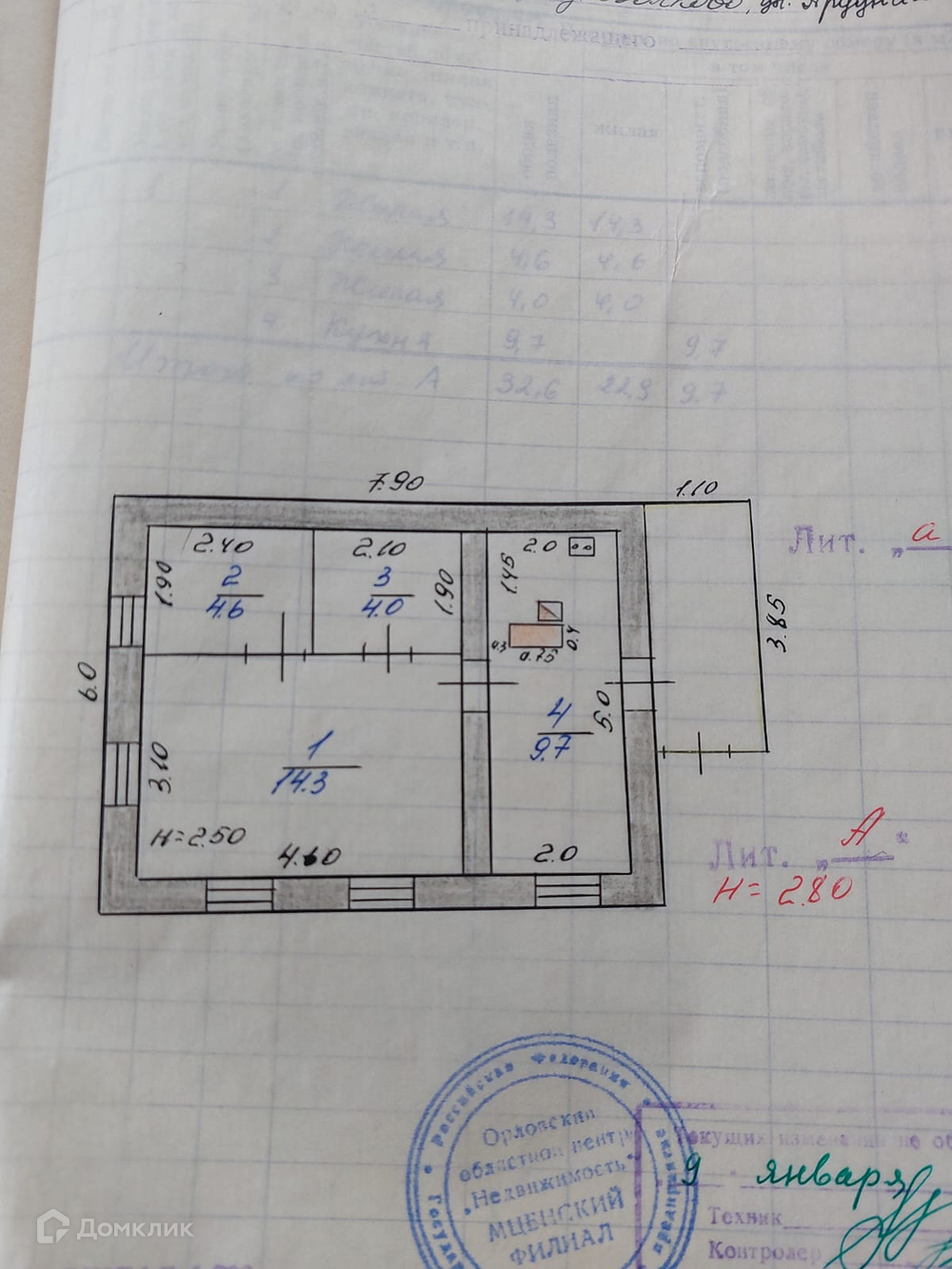 Общая площадь 32.6 м2