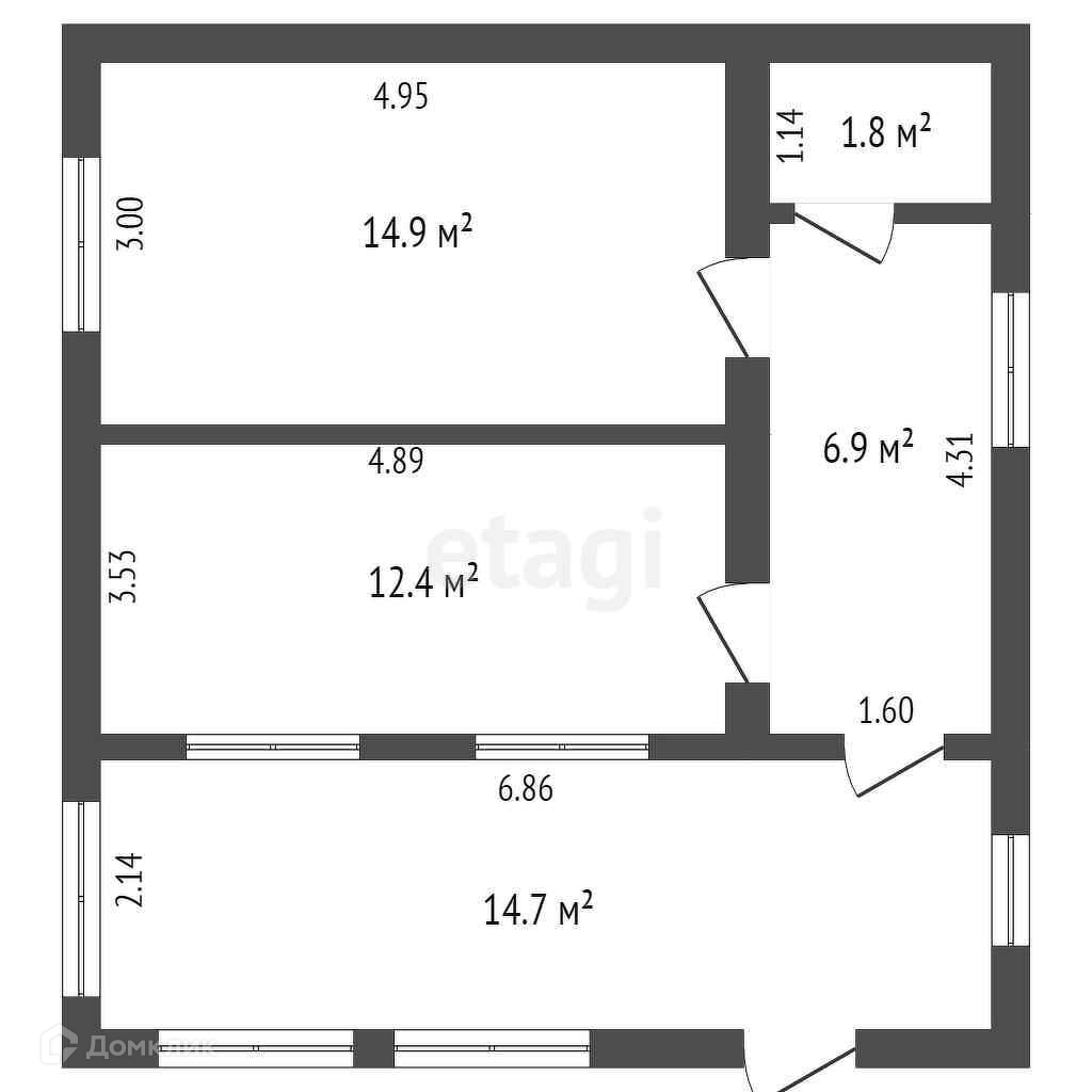 Общая площадь 53.8 м2