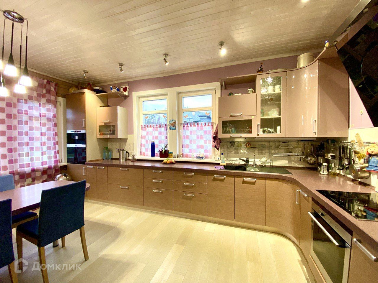 На первом этаже расположена прихожая с большим встроенным шкафом для одежды, большая и уютная гостиная с мягкими, удобными диванами итальянского производства и действующим камином, обрамленным в натуральный мрамор. Просторная кухня со встроенным кухонным гарнитуром и большим количеством качественной бытовой техники немецкого производителя. Большой и светлый кабинет, совмещенный санузел с душевой кабиной и большая удобная прачечная, в которой удобно будет не только постирать, а еще посушить и погладить белье. Также имеется небольшая кладовка для домашних заготовок и котельная.