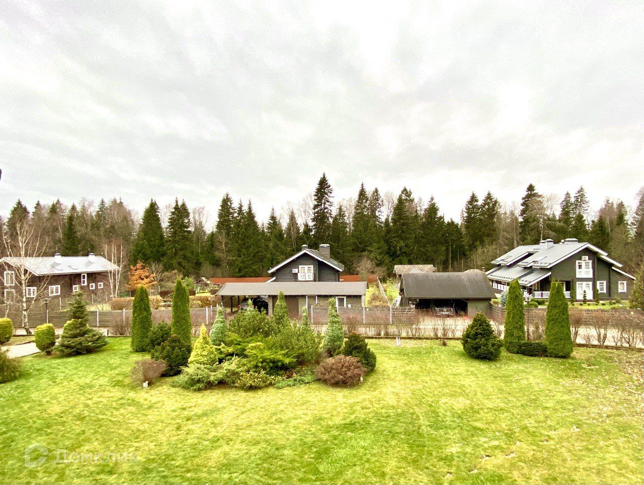 Участок ровный, 29 соток, очень ухоженный - посажен газон, клены, пихта, сосны, липа, дуб , скальники, туи, можжевельники, есть розарий и плодовые деревья. Участок имеет живую изгородь.