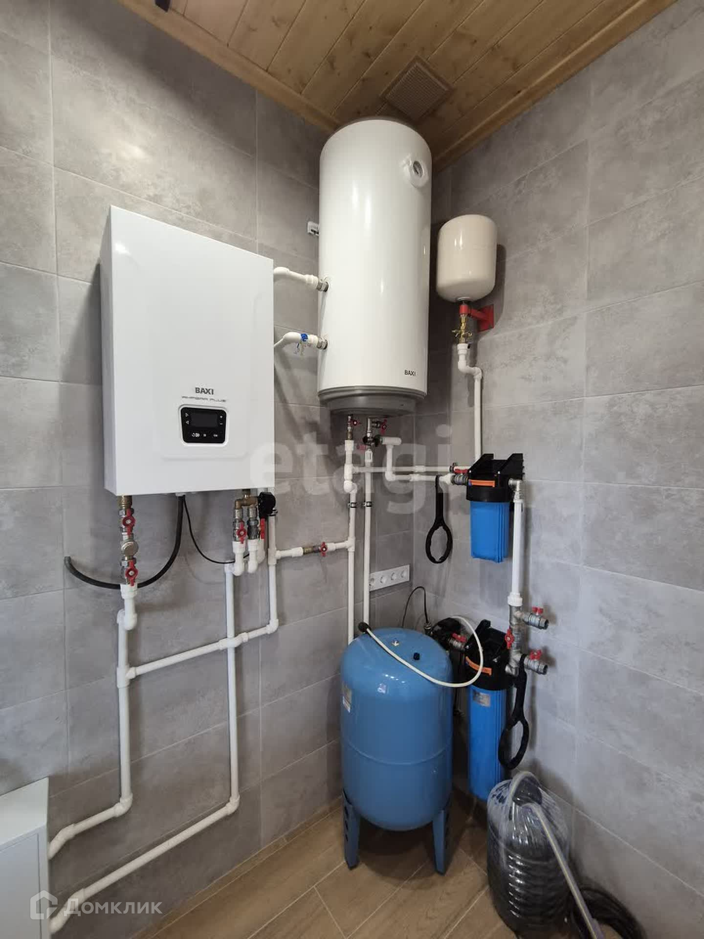 В доме проложены все инженерные системы: канализация, водопровод, электроснабжение. Отопление «теплым» полом. Котельная с бойлером нагрева воды. На входе в дом имеется мастер-кнопка, отключающая электропитание потребителей на время отсутствия хозяев в доме.