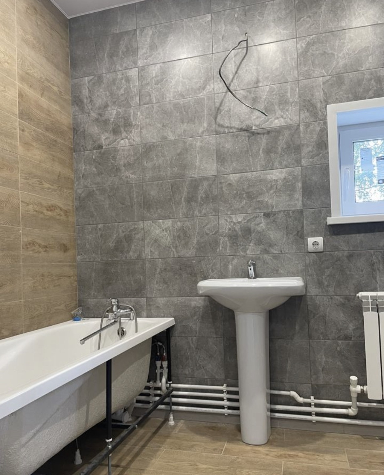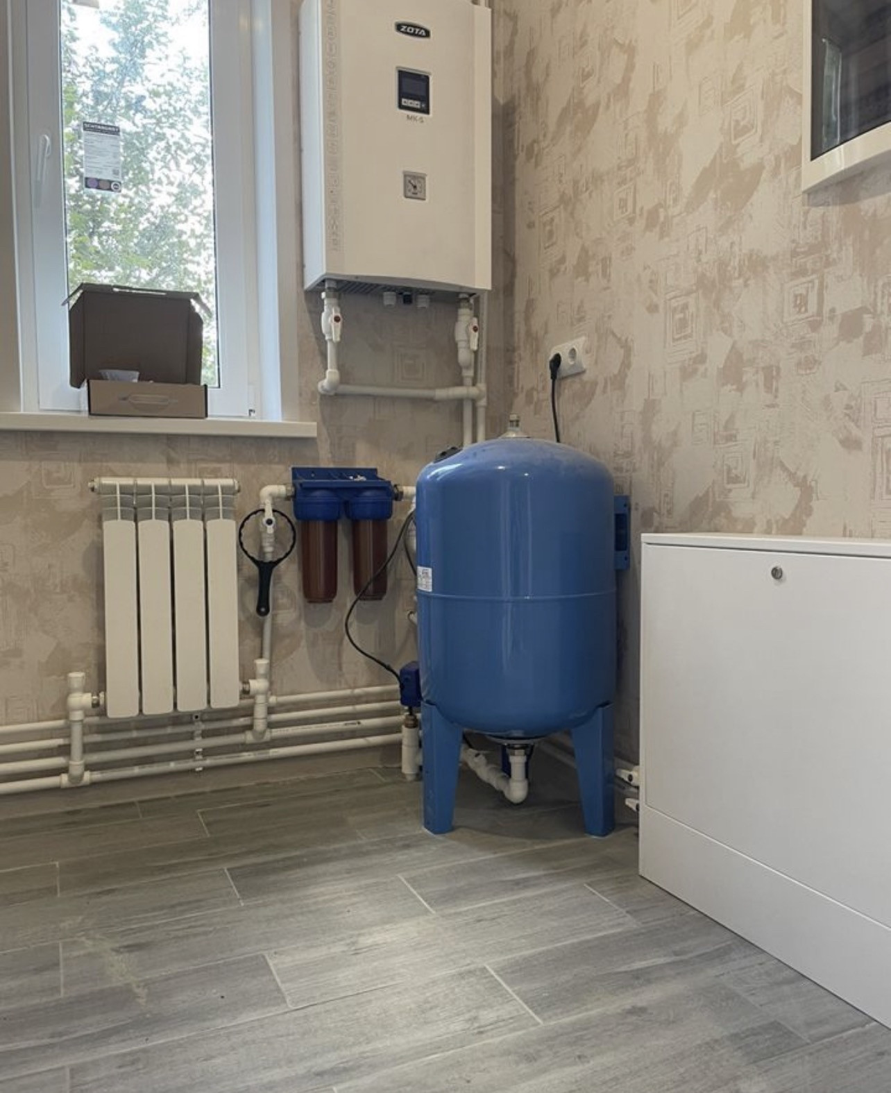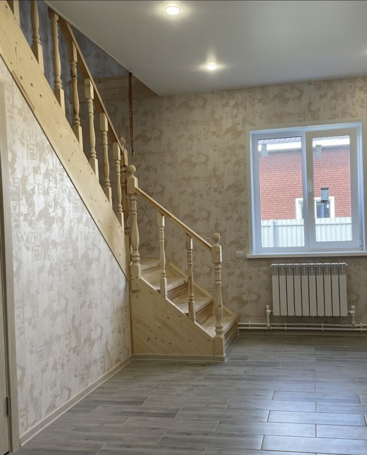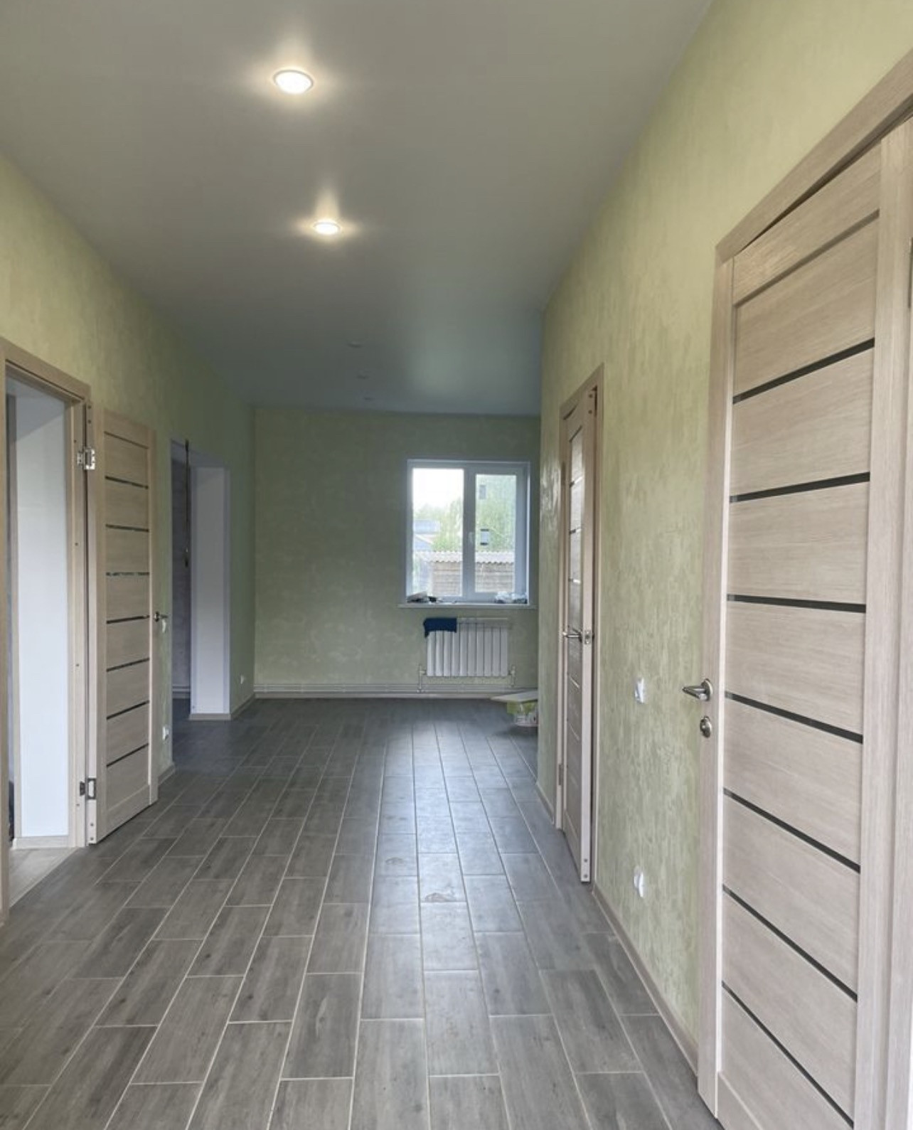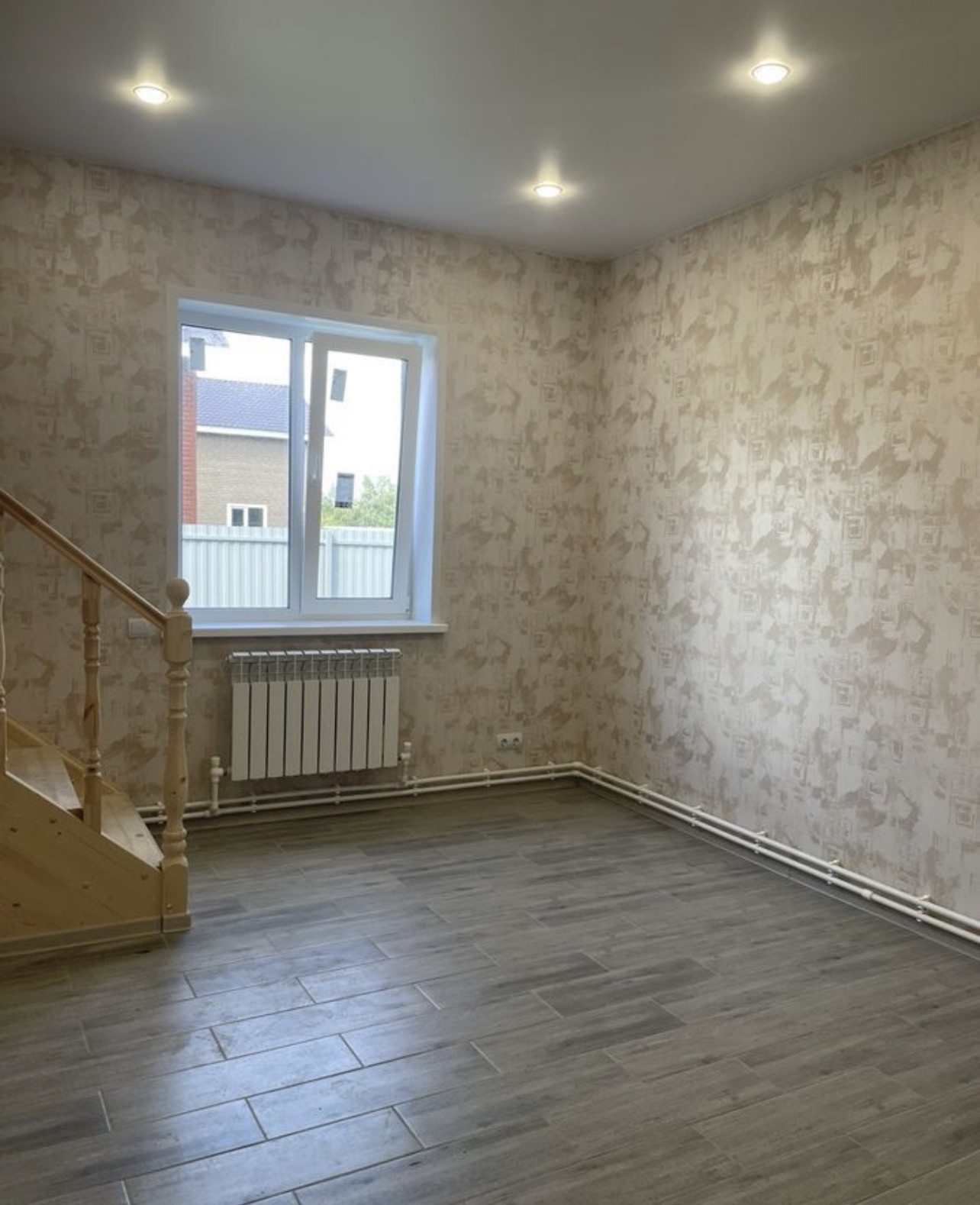 Покрытие полов - ламинат, плитка, окна – пластиковые двухкамерные стеклопакеты профиль Рехау. Вентиляционная систем установлена по техническим правилам безопасности для дальнейшего подключения газа.