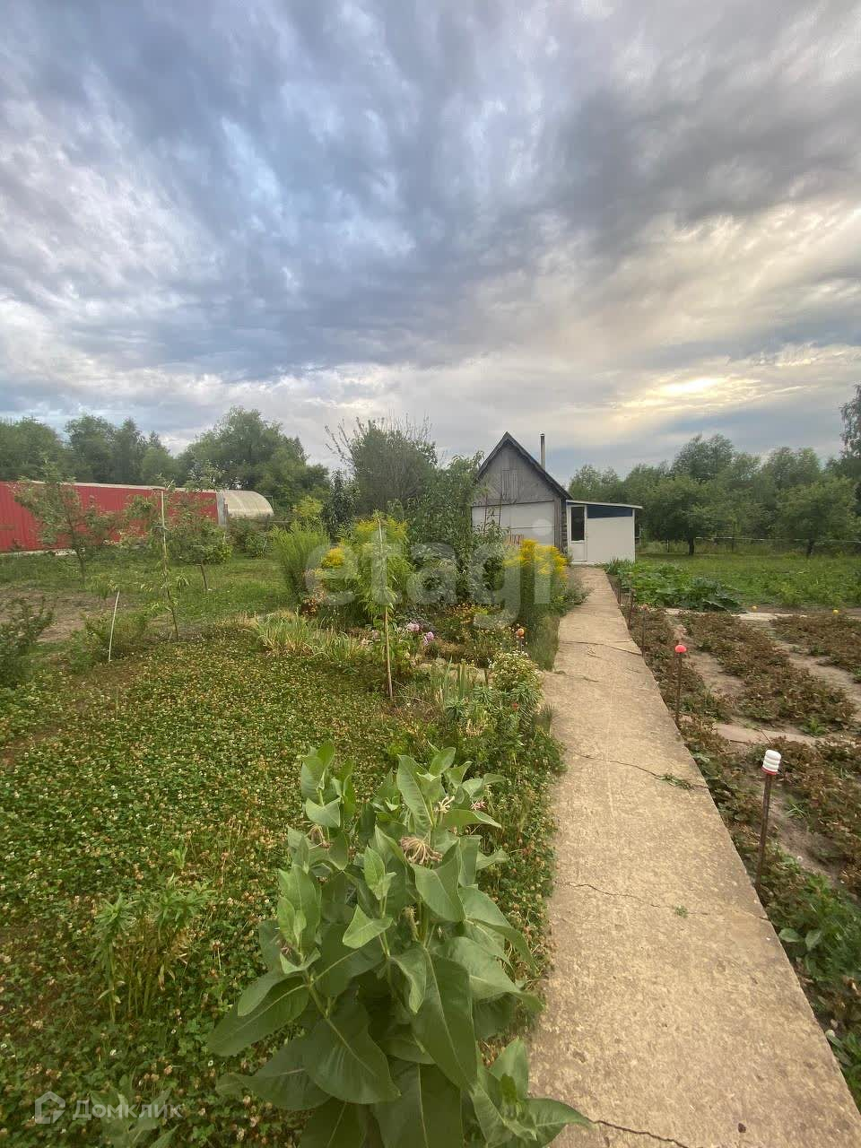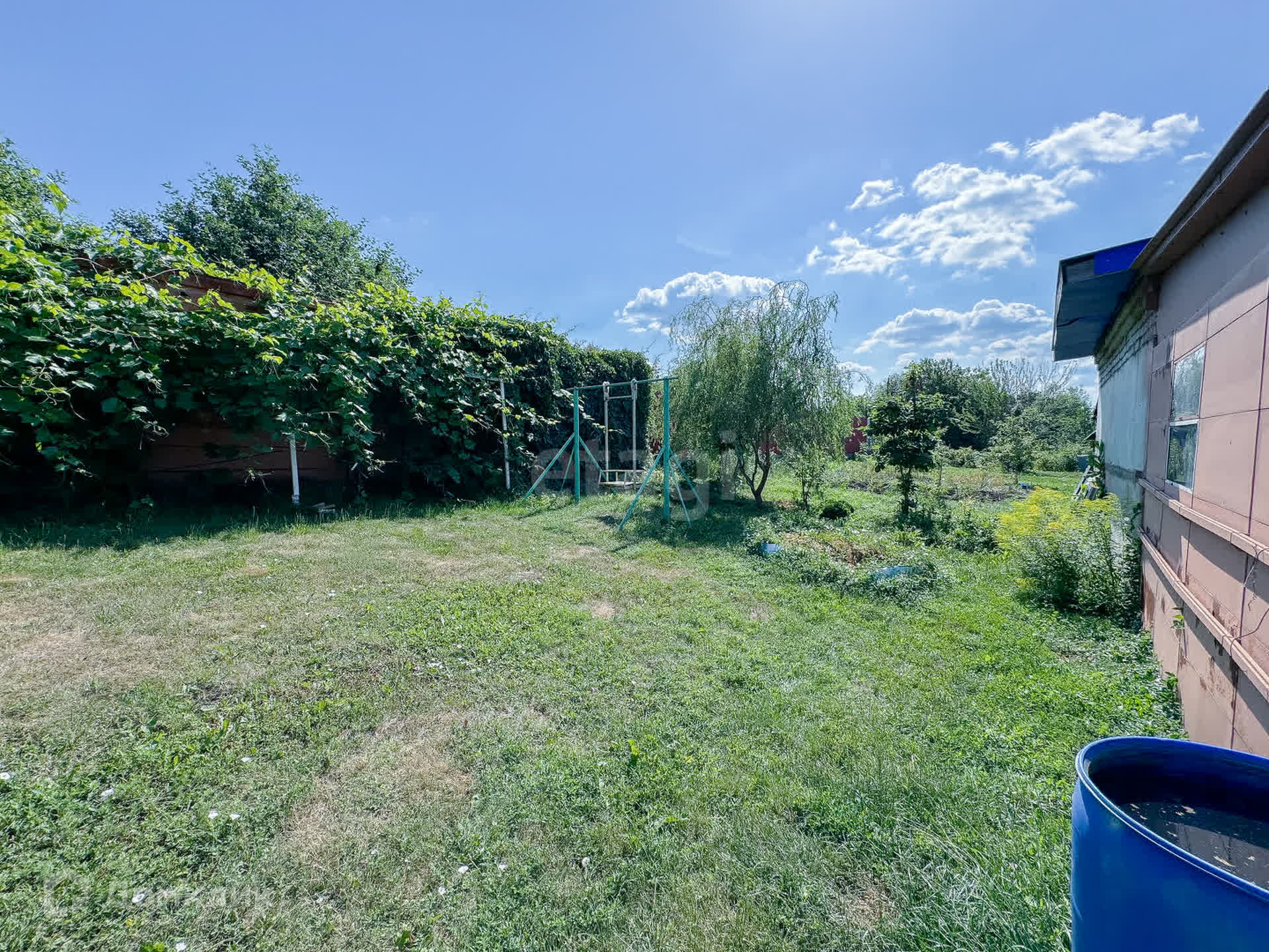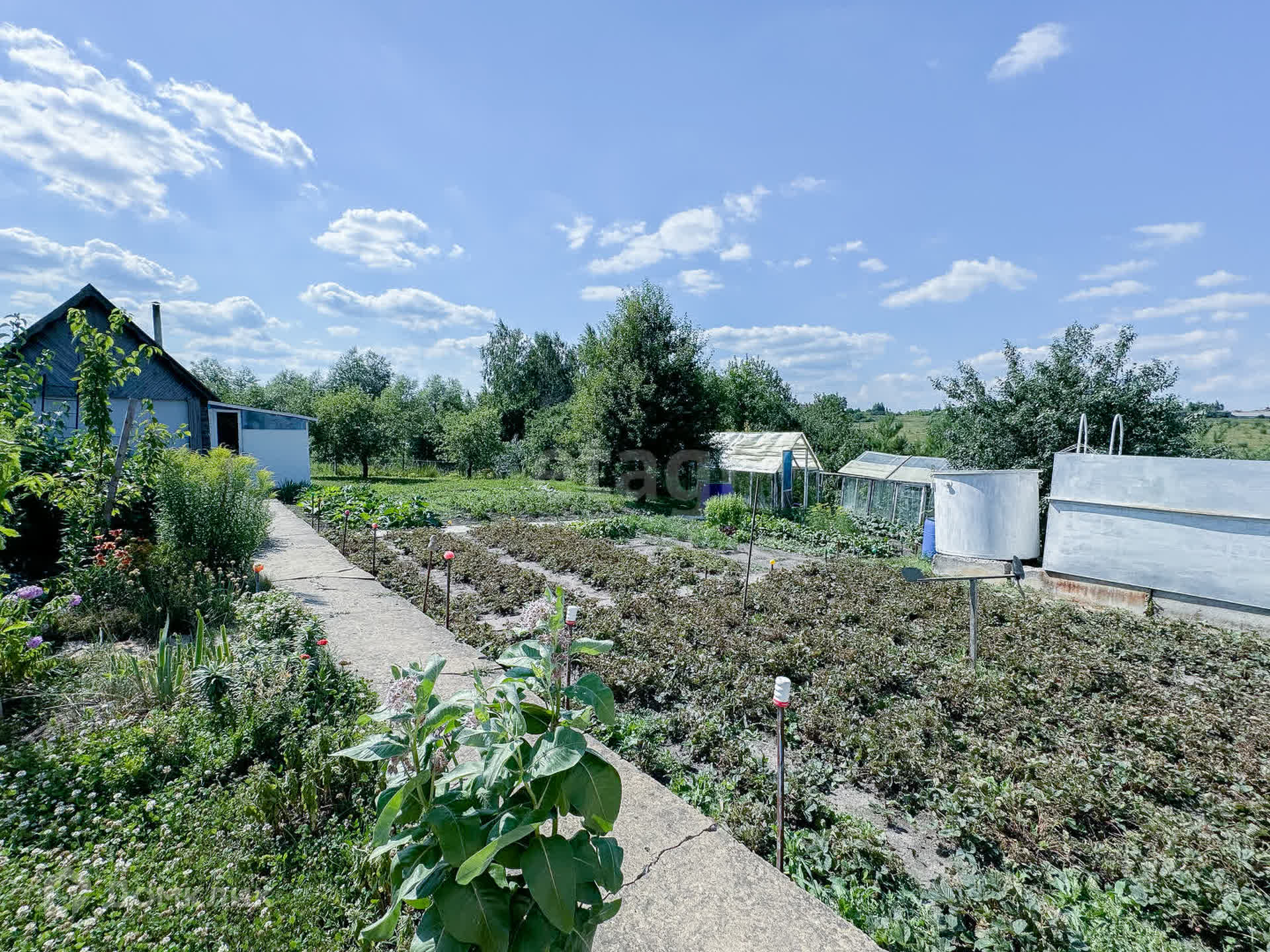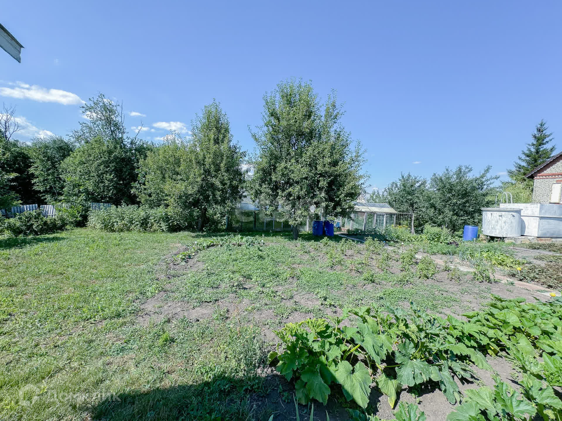 Участок 15 соток, разработан. Плодово-ягодные деревья (в том числе черешня, грецкий орех), кустарники, виноград, голубая ель, туи, пихты, три вида ивы. Новые хозяева без урожая не останутся.