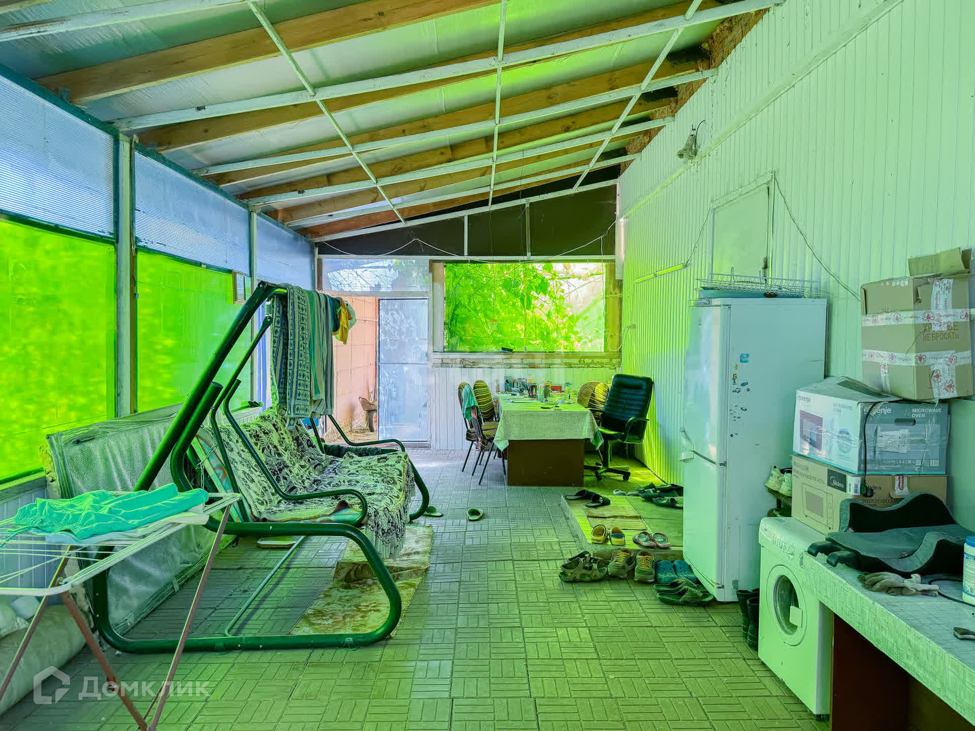 Перед домом крытая терраса 50 кв. метров (с остеклением, закрыта от ветра).