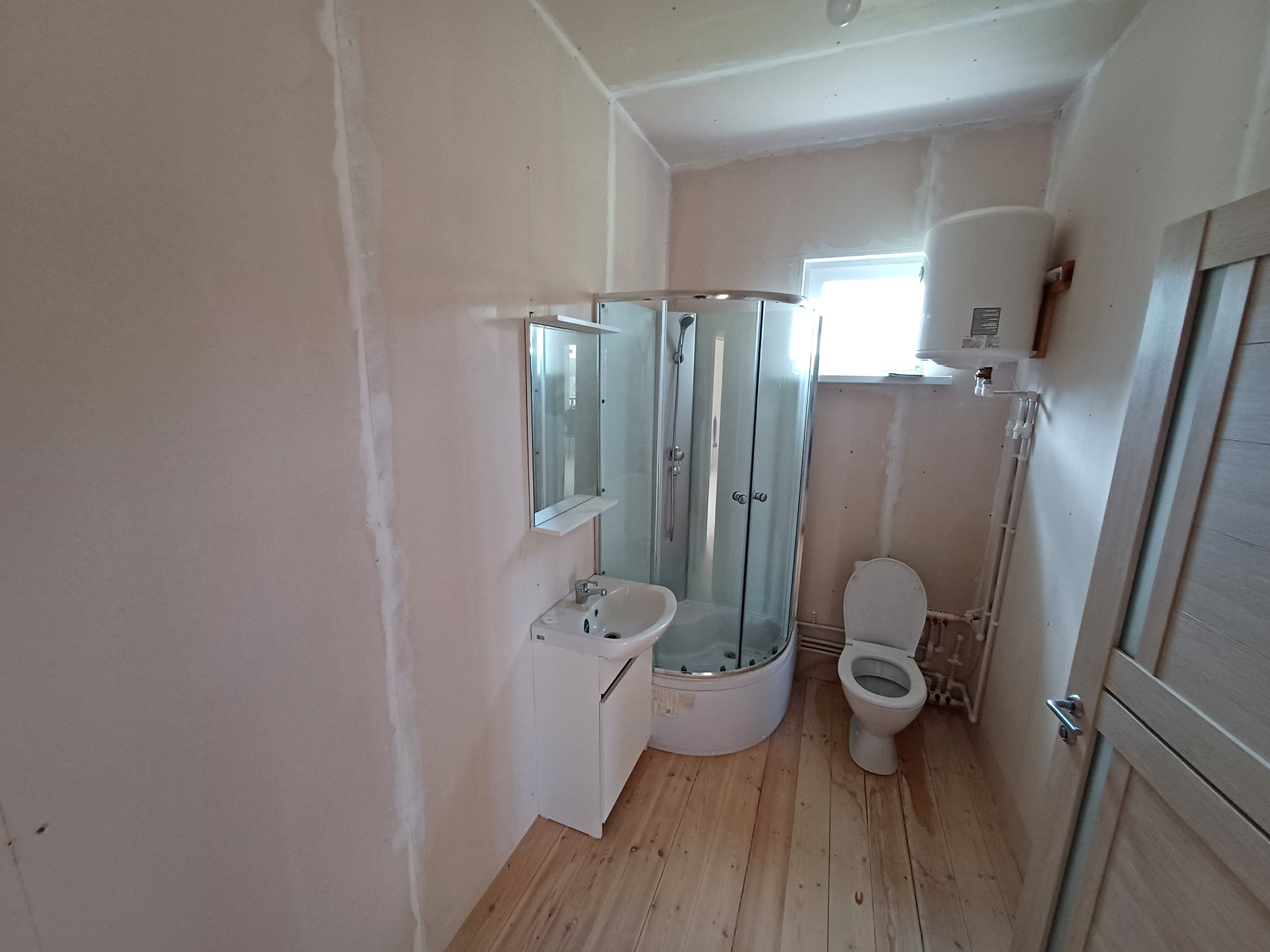 Коммуникации: электричество от 15 кВт заведено в дом, газ по границе (стоимость подключения 28 т.р.), вода (имеются колодец, насосная станция), канализация (базовый септик)- заведена в дом, имеется горячая вода (бойлер), санузел оборудован.