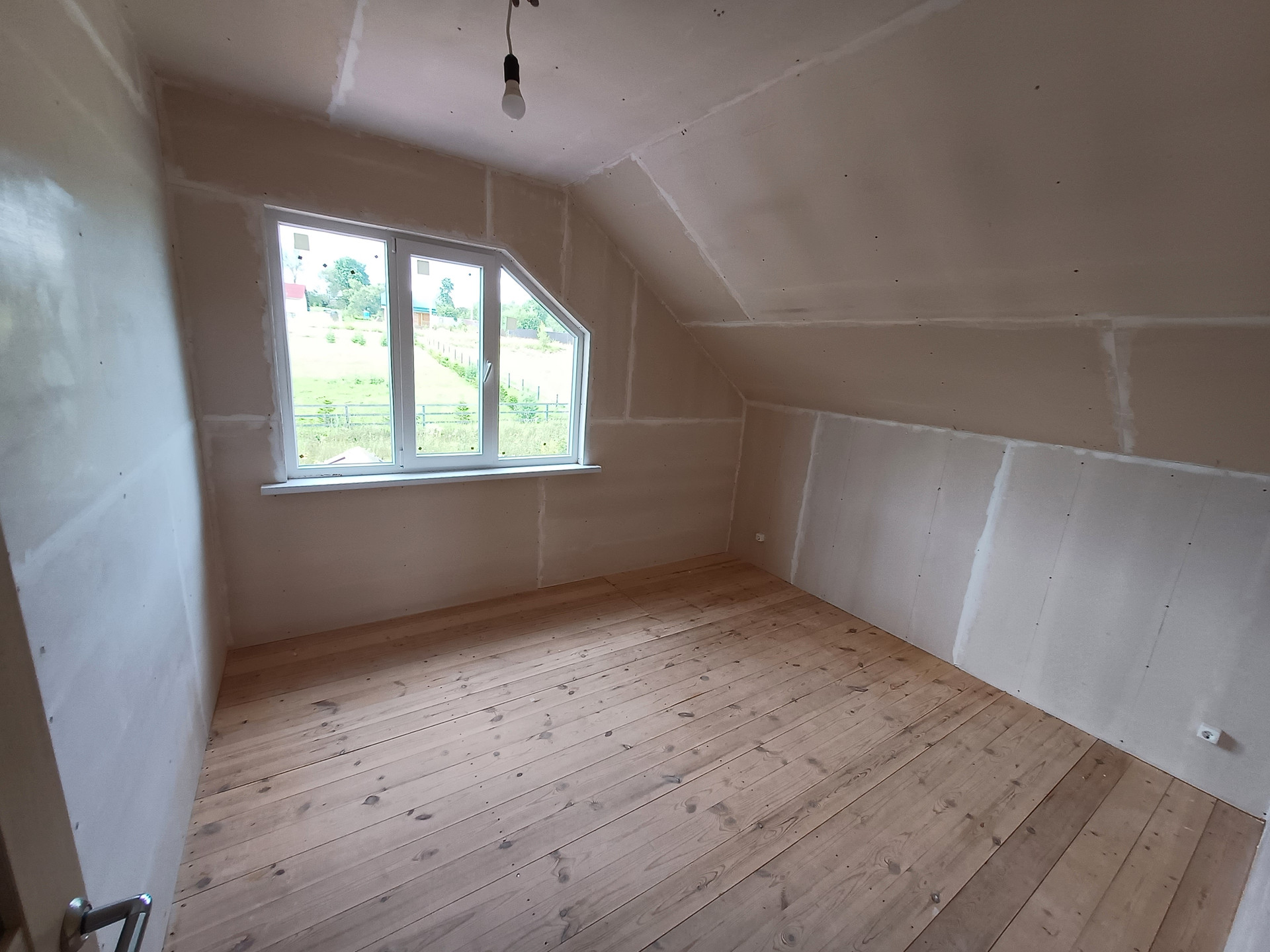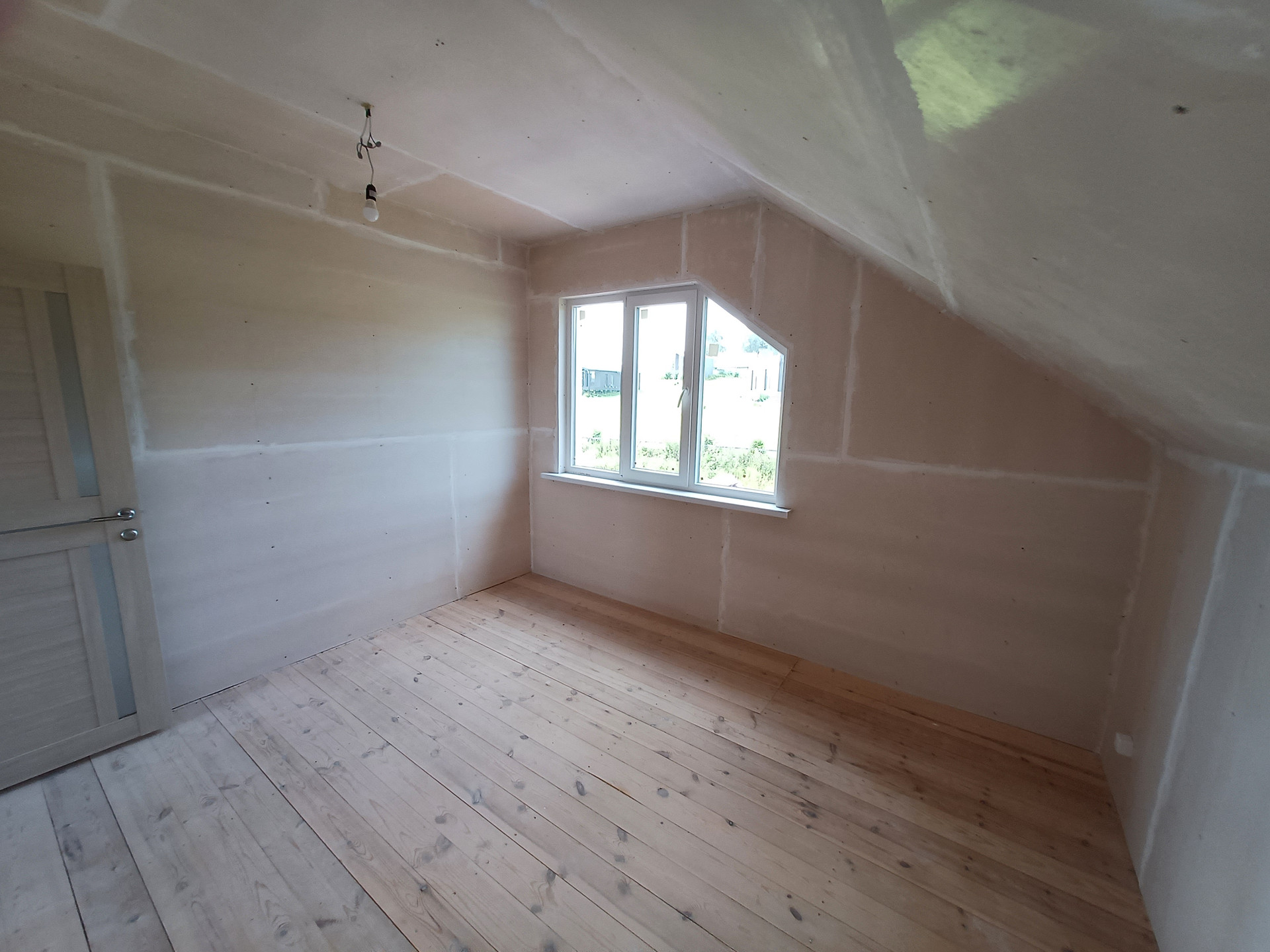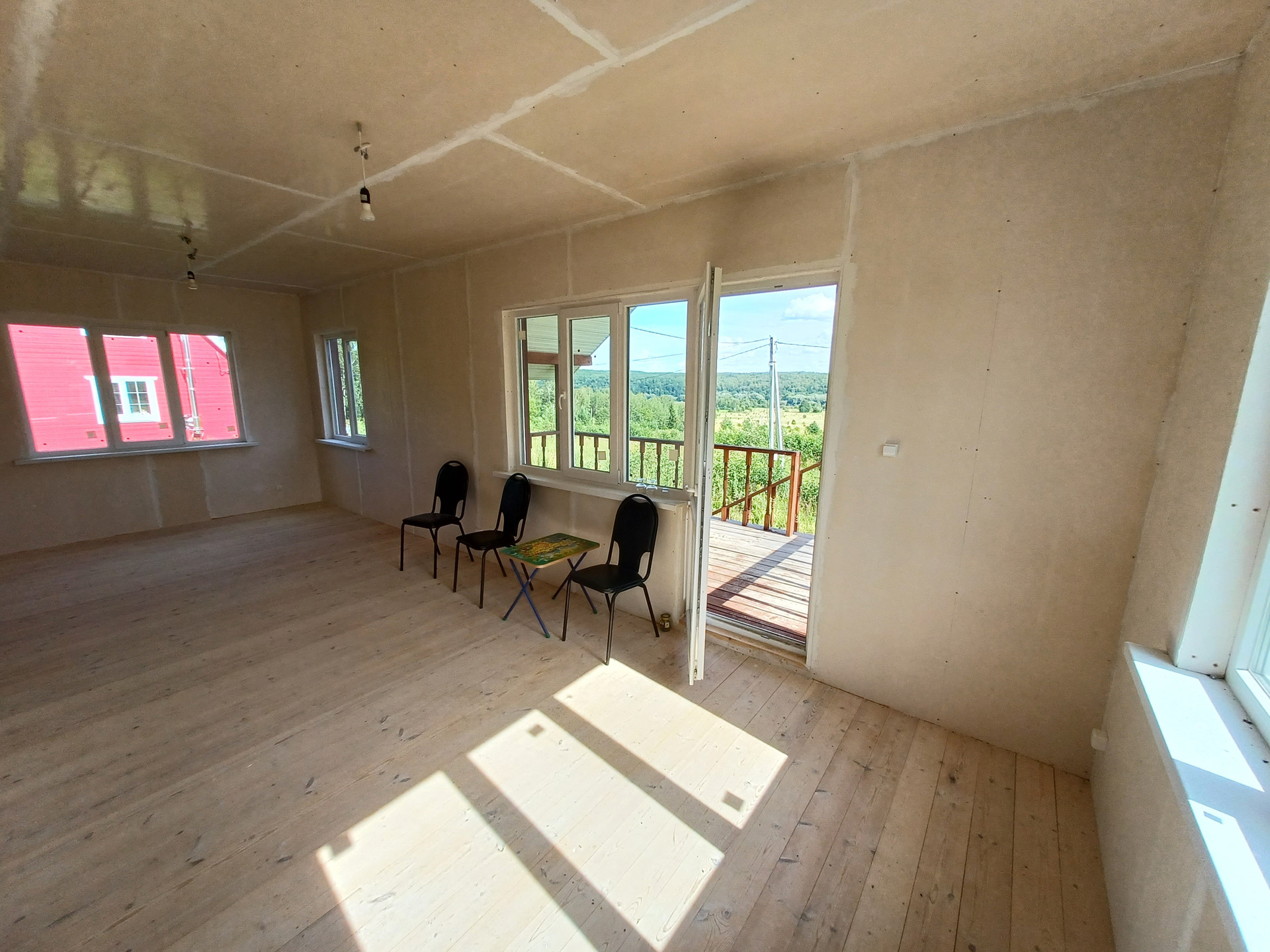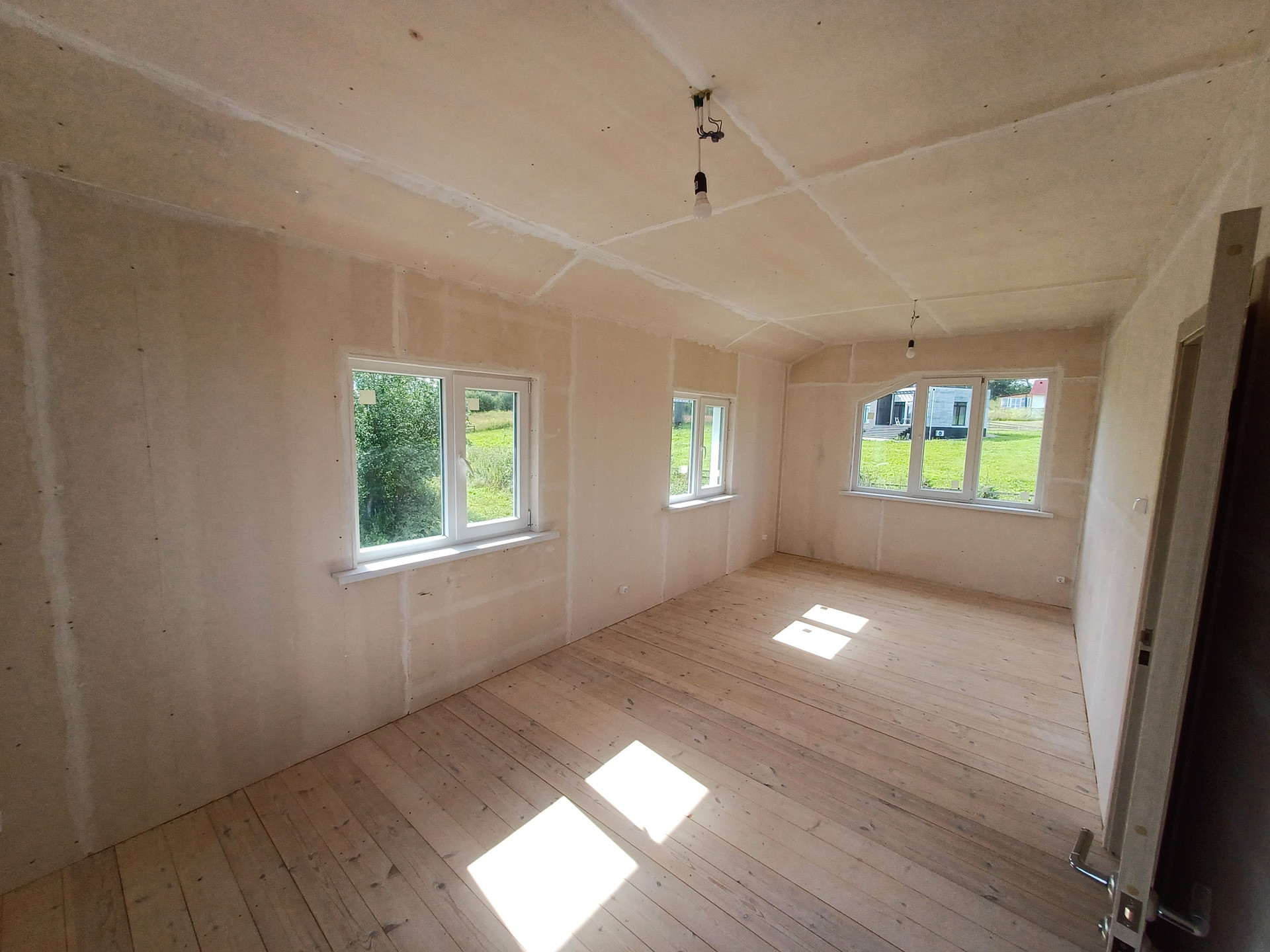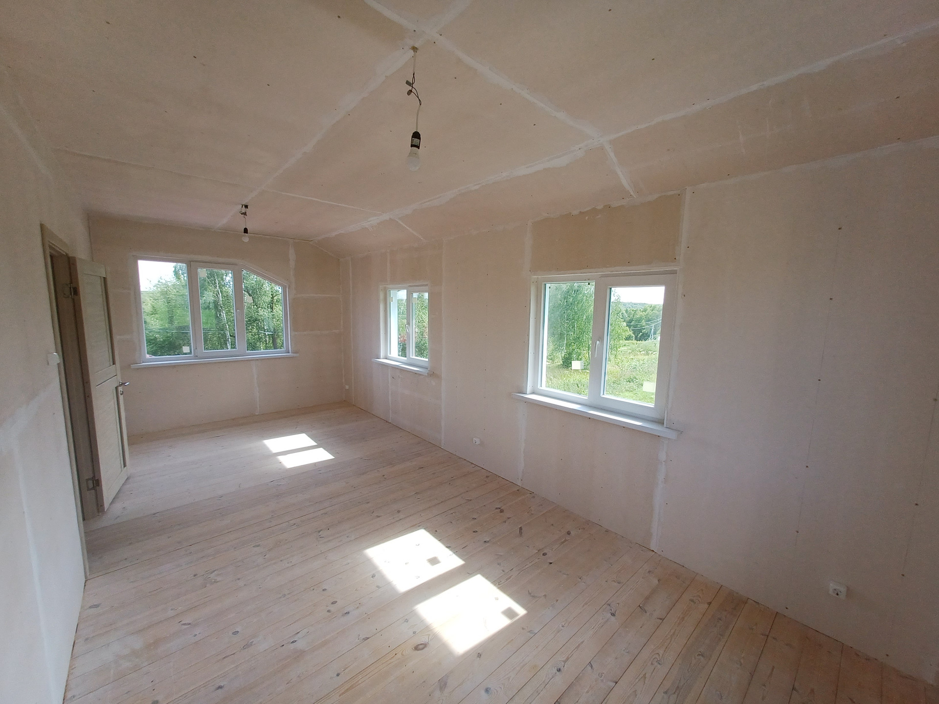 Стадия готовности дома - под внутреннюю чистовую отделку (обои или покраска стен и потолка, настил верхнего покрытия пола -линолеум, ламинат и пр.).