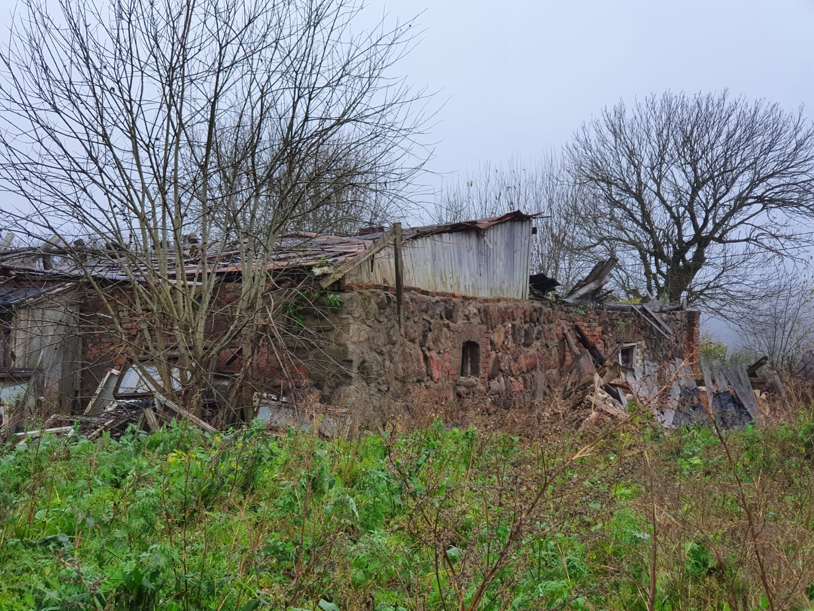Установлены кольца под канализацию, на участке также есть каменное строение около 300 кв.м, требующее реконструкции, под телятник, конюшню или оранжерею, мастерскую. Участку требуется расчистка. Есть плодовые деревья и кусты.