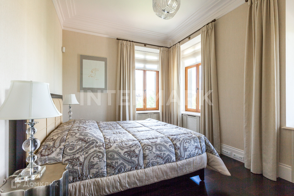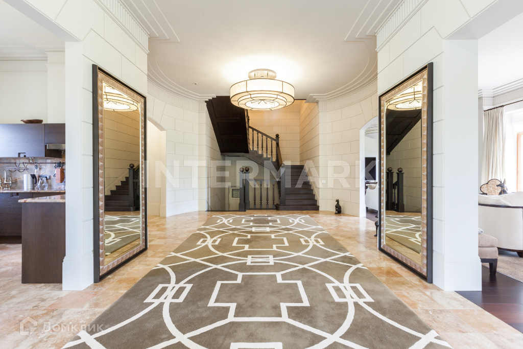 Функциональная планировка дома предусматривает просторные холлы, уютную гостиную с камином, парадную столовую, кухню, три спальни, гардеробные  и несколько зон отдыха - просторную библиотеку-кабинет с уютной мягкой зоной, а также SPA-зону с комнатой отдыха и бильярдную. Полы в жилых комнатах из венге, а полы столовой покрыты узорчатым «ковром» метлахской плитки.
