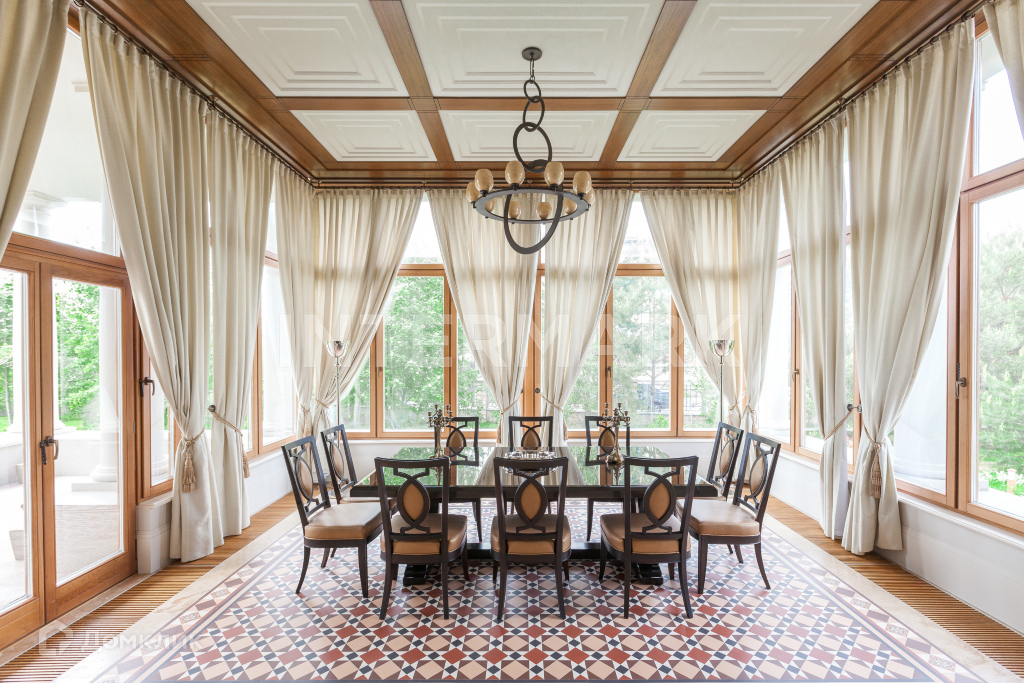 Большие панорамные окна, высокие дверные проемы, светлые стены и потрясающие предметы интерьера создают комфорт и неповторимый уют загородной жизни.