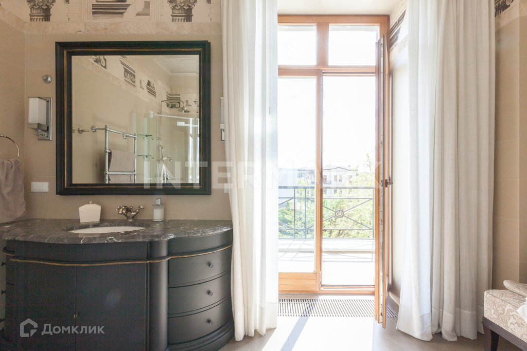 Здесь каждая деталь продумана до мелочей. В выборе мебели и светильников предпочтение было отдано современным американским маркам таким как - Ralph Lauren, Bernhard, Lexington и др. Лестница, камин, карнизы, двери с витражами, а также кое-что из мебели и светильников создано специально для этого дома известным архитектором.