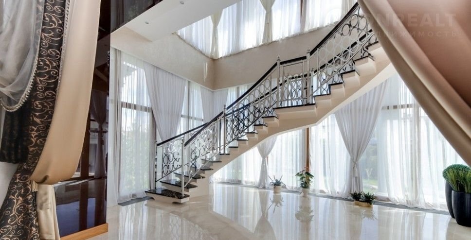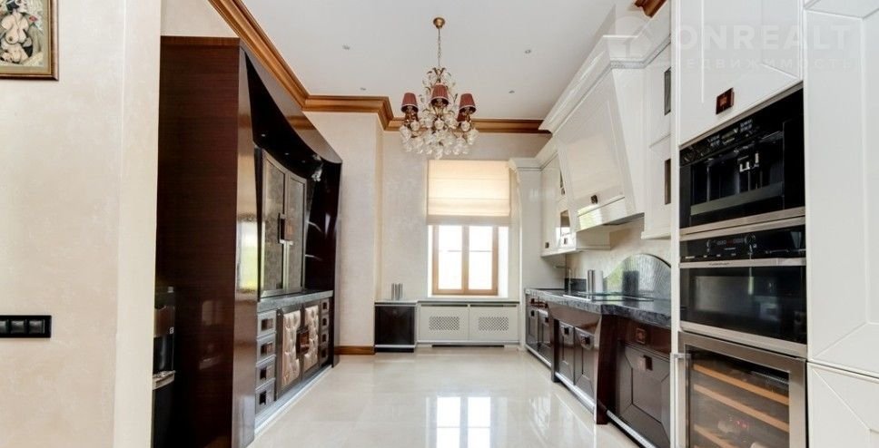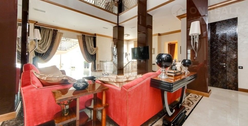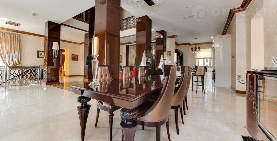 Номер объекта: НР24166. На продажу предлагается дом на Новорижском шоссе, в 24 км. от Москвы, в коттеджном поселке Монолит. Дом 4-х уровневый, кирпичный (площадь - 800 м.кв.), расположен на земельном участке размером 35 сот. Есть отдельностоящий гараж на 4 а/м. Все коммуникации центральные. Отделка - под ключ. В цоколе: котельная, постирочная, комната охраны, квартира для персонала, 2 с/у. На первом этаже: прихожая, кухня, гостиная, столовая, кинозал, кабинет, с/у. На втором этаже: три спальни с с/у и гардеробными. На участке: гостевой дом, в котором расположены: спортзал, сауна, купель, бильярдная и 2 спальни.
