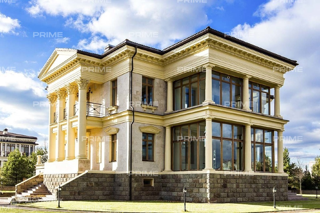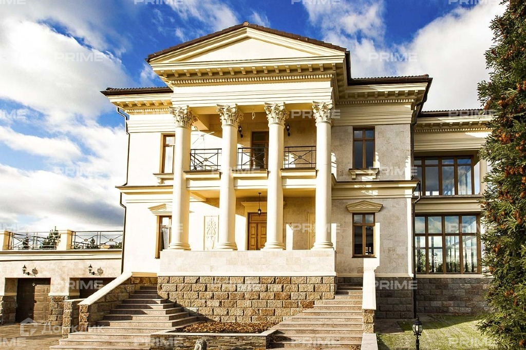 Красивый особняк с величественными колоннами, изящными балконами, просторной балюстрадой, парадной лестницей при входе, панорамными окнами, занимающими большие площади внешних стен. Внутренняя отделка дома выполнена из качественного и дорого материала. Функциональная и комфортная планировка, обилие пространства и света - несомненные достоинства особняка.