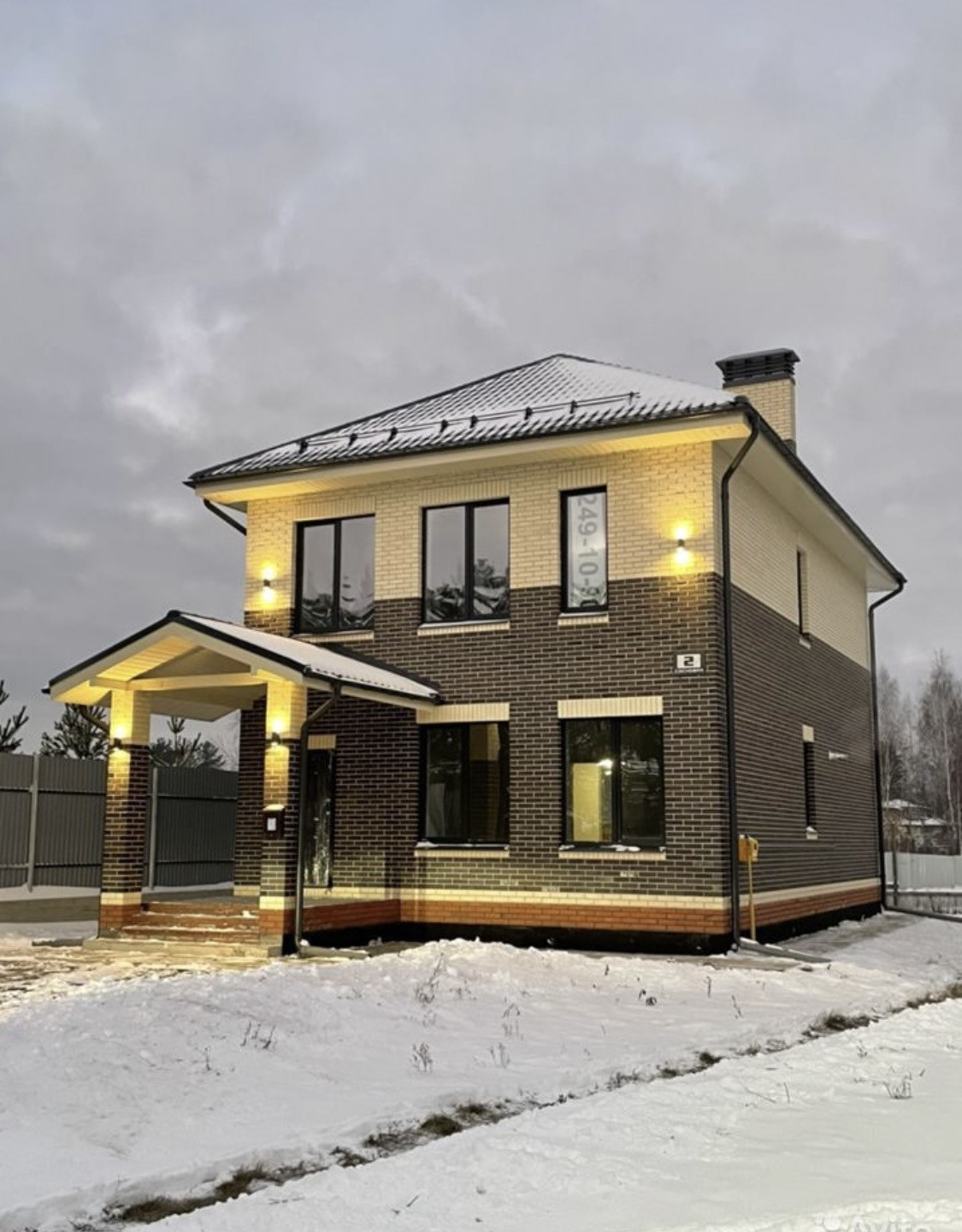 Окна выполнены из 5-ти камерного профиля, ламинирование, мультипакеты, подоконники. Установлена входная дверь с терморазрывом. Имеется уличное освещение и архитектурная подсветка фасада.