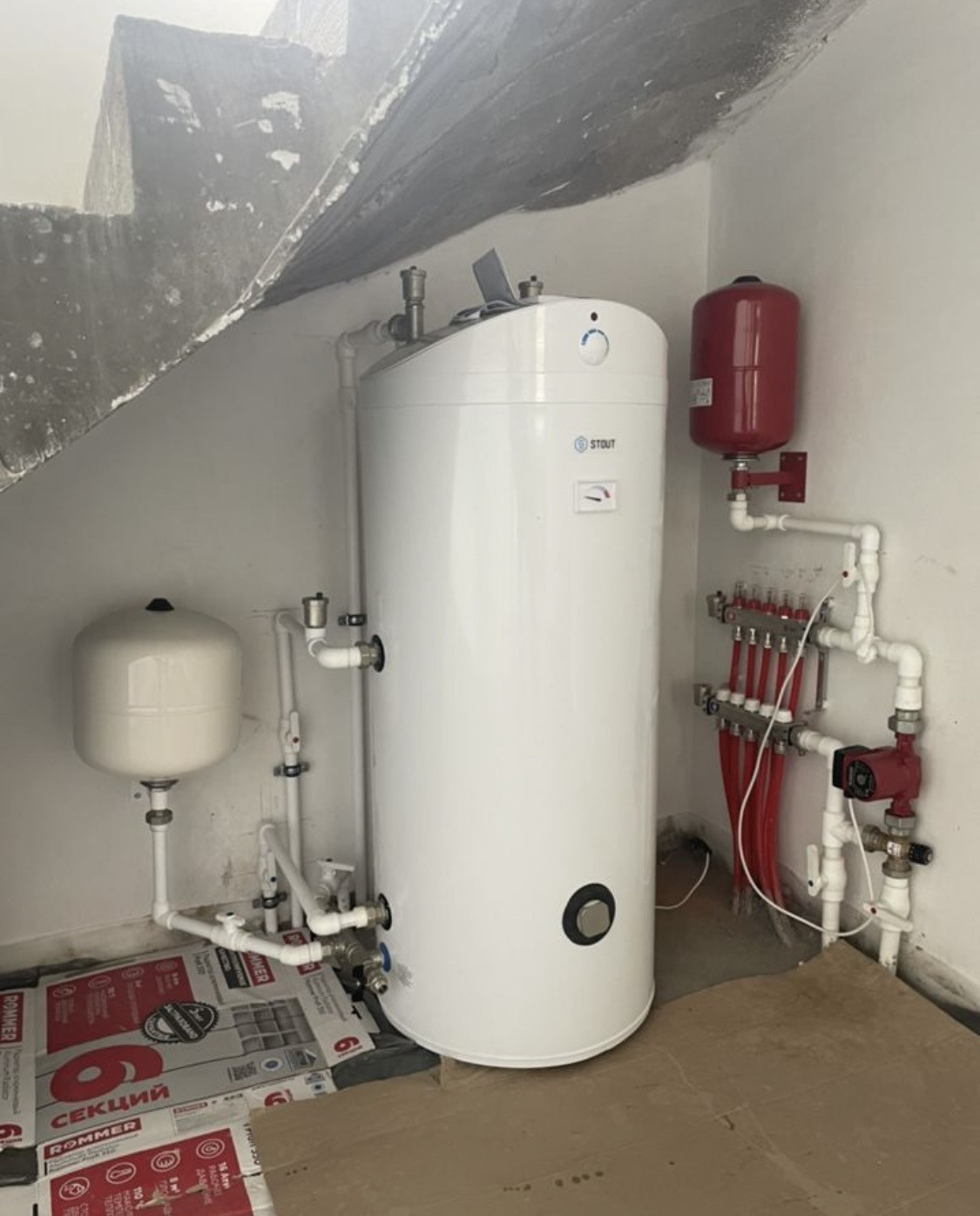 Выполнена разводка электричества, собран щит. Сделана качественная механизированная штукатурка стен и оконных, дверных откосов гипсовым составом KNAUF MP 75. Выполнены работы по отоплению, тёплым полам, разводка до точек подключения воды и канализации, тёплые полы, выходы от бойлера на 150 литров до полотенцесушителей.
