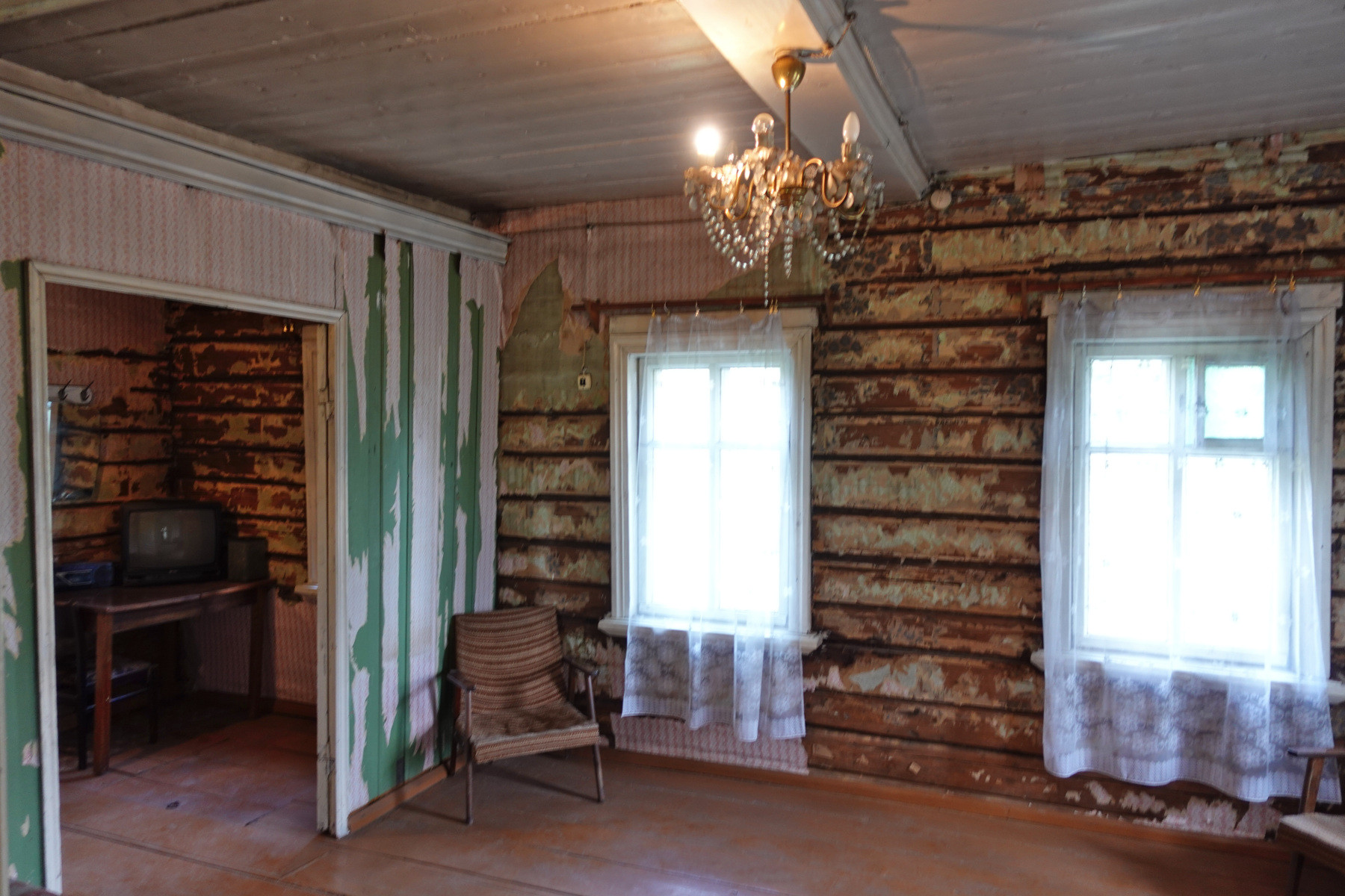 Крепкий бревенчатый дом (классическая рубленая изба в традиционном стиле, с мезонином и резными наличниками), на хорошем ленточном фундаменте, общей площадью 44 кв.м. В доме две отдельных комнаты, кухня, сени, чулан, веранда. Хозяйственный двор подлежит демонтажу. Отопление - классическая русская печь с подтопком. Общественный колодец в шаговой доступности. Подведено электричество. Газ баллонный привозной.