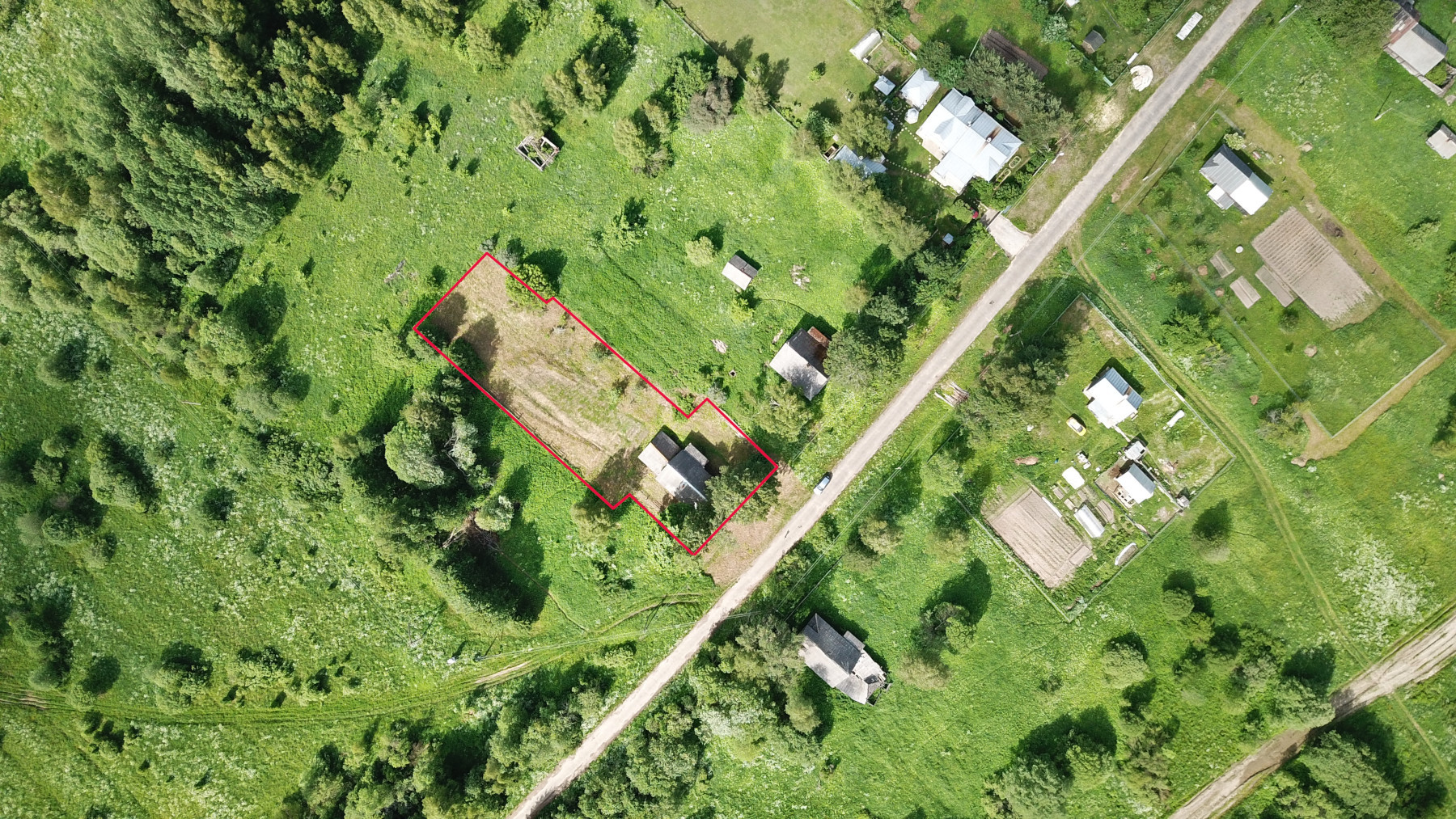 Общая площадь земельного участка 2000 кв.м (20 соток), по периметру частично огорожен старым забором (для обозначения границ). На территории имеются плодово-ягодные насаждения. Круглогодичный асфальтовый подъезд до самого дома.