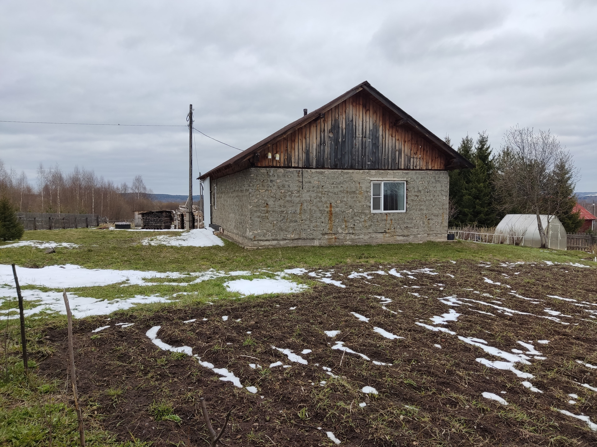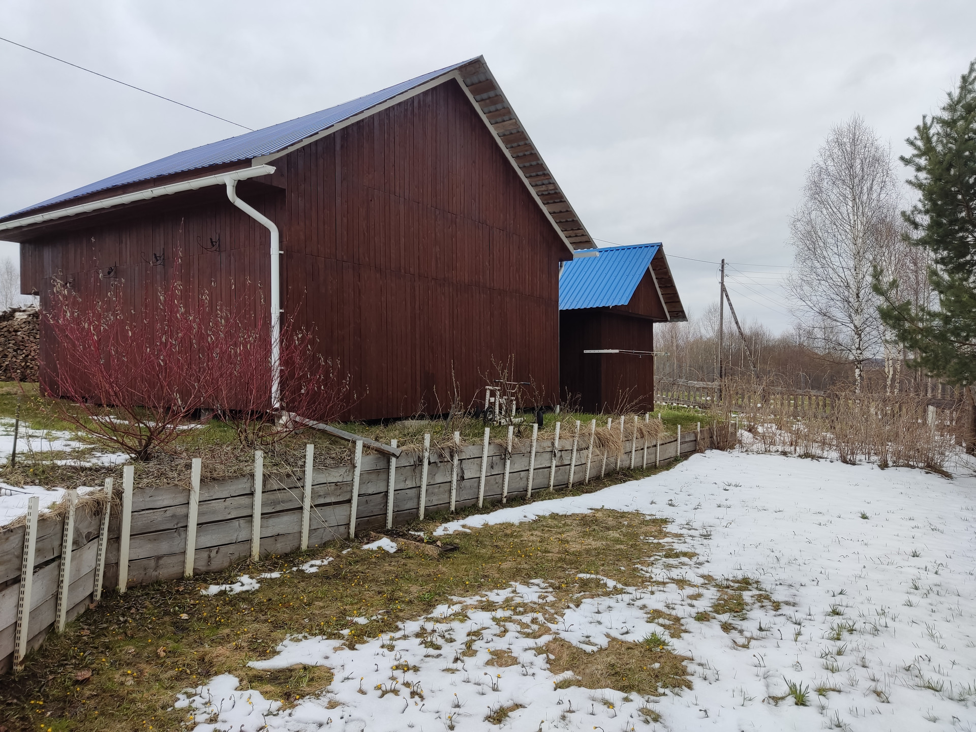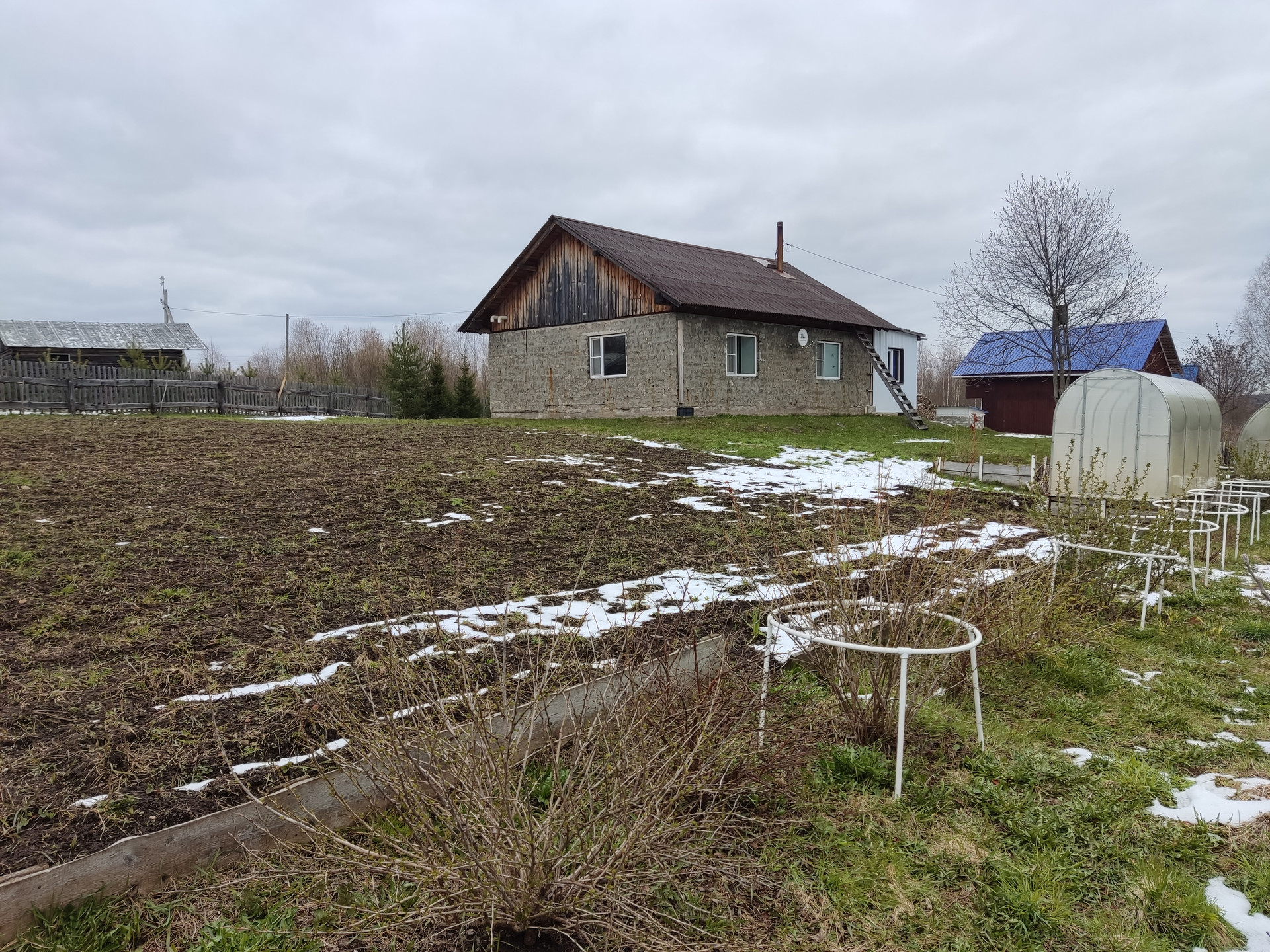 Имеется баня, оборудованный двухэтажный склад, 2 теплицы, плодовые деревья и кустарники, грядки, разработанный и засеянный сидератами огород на солнечной стороне.