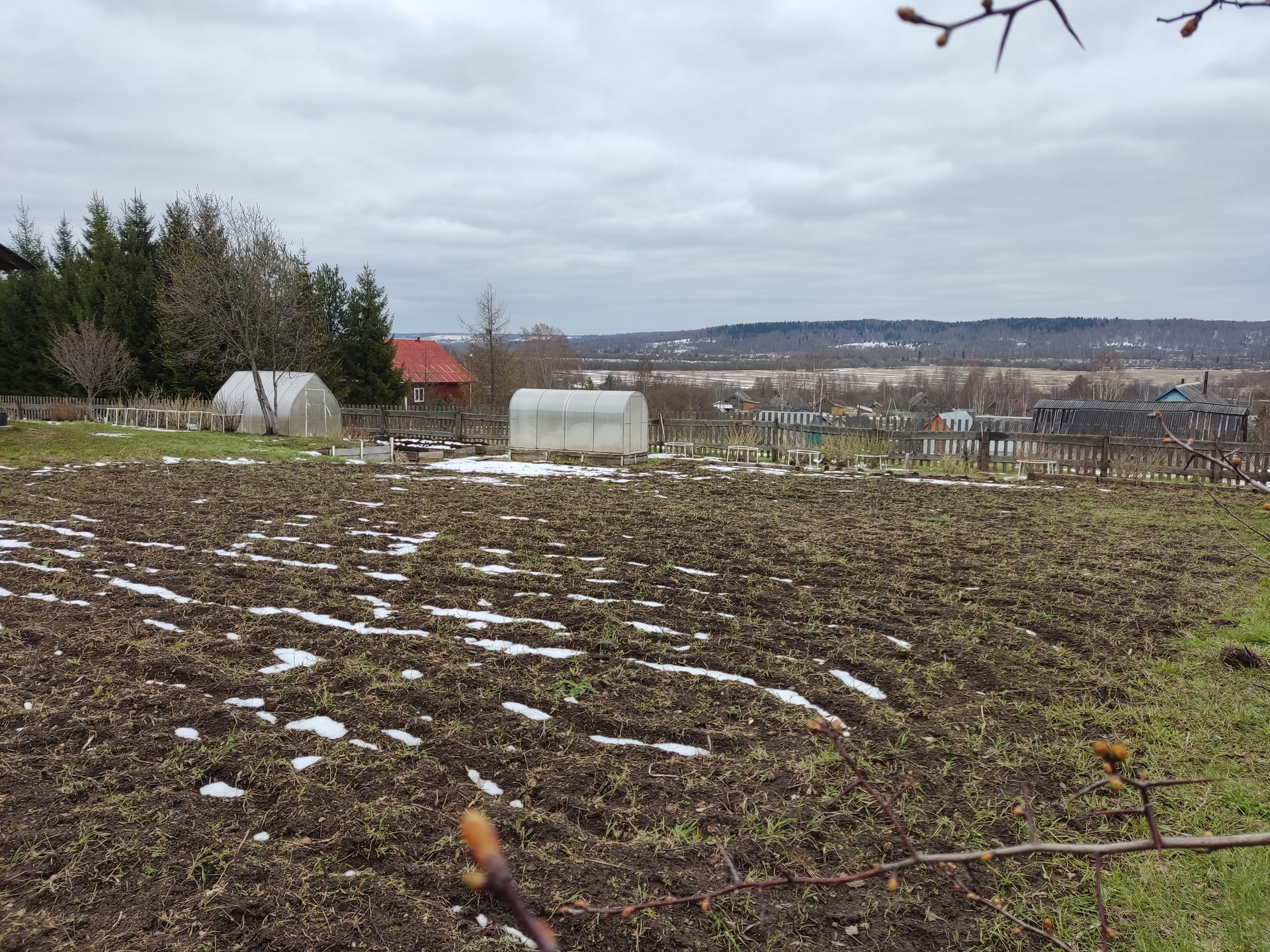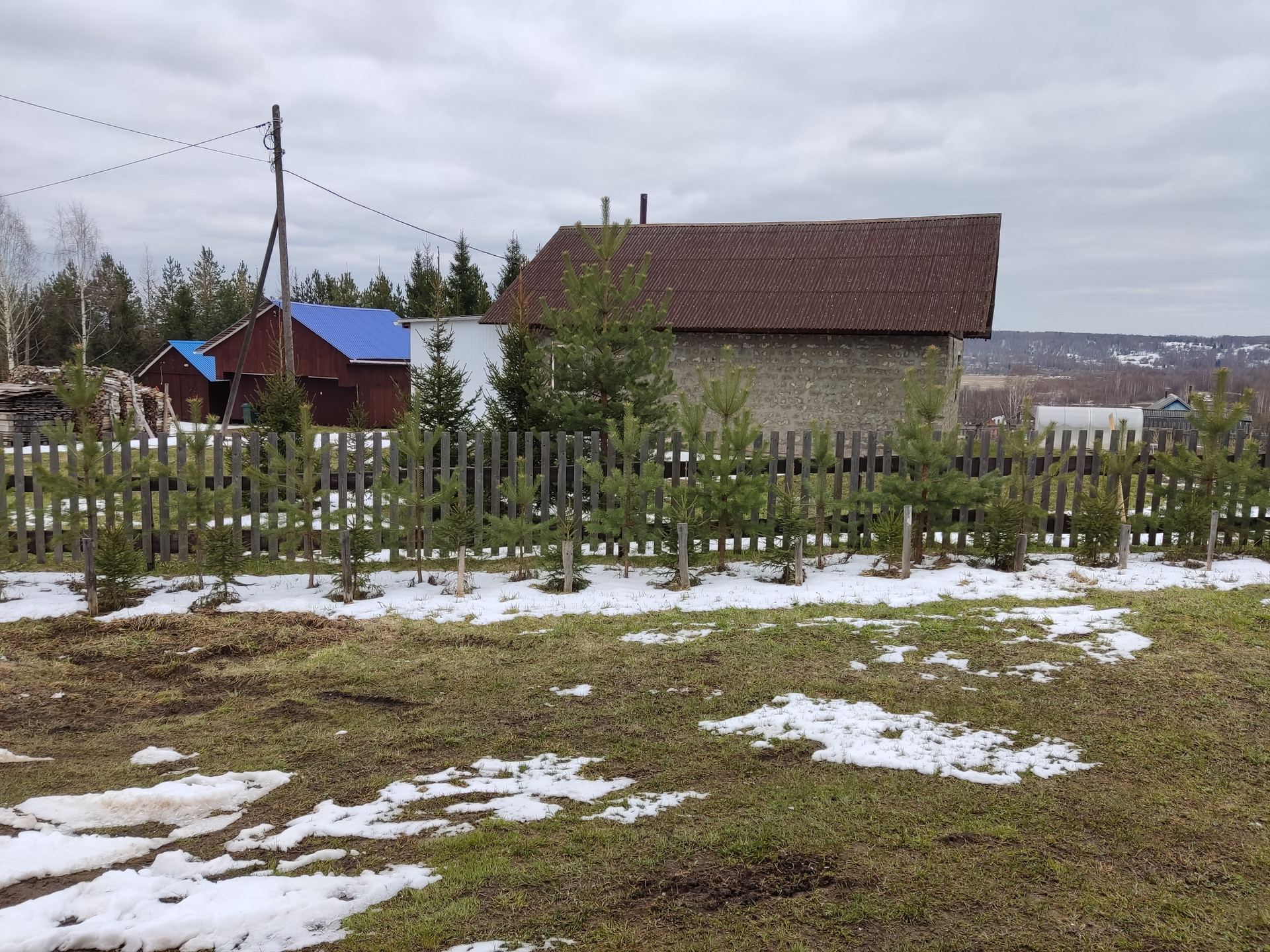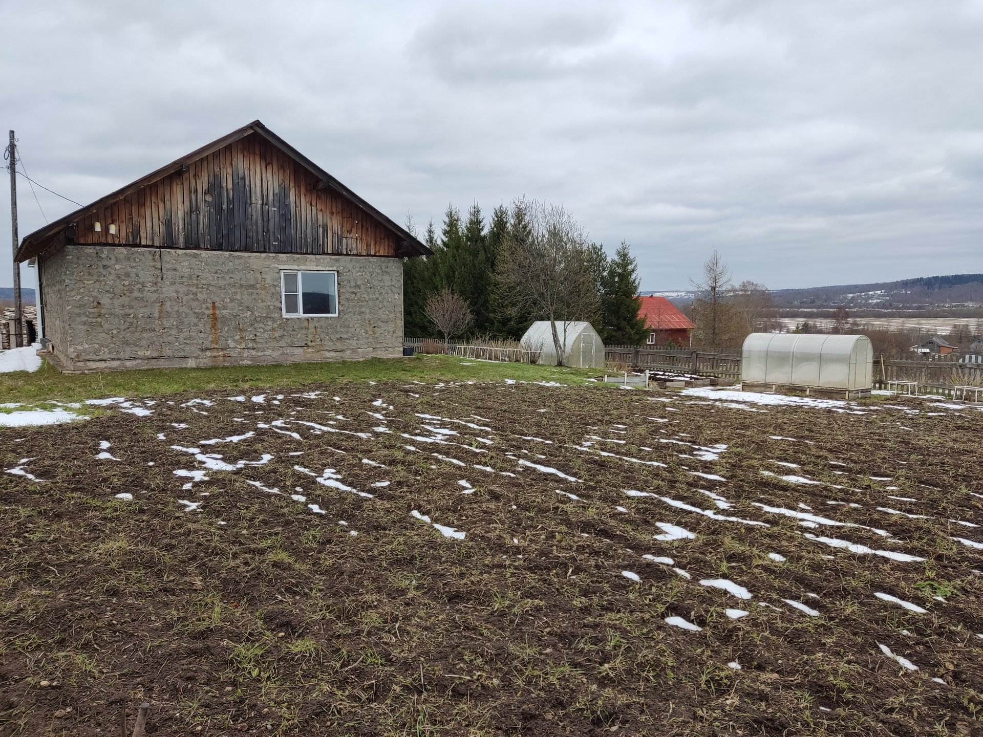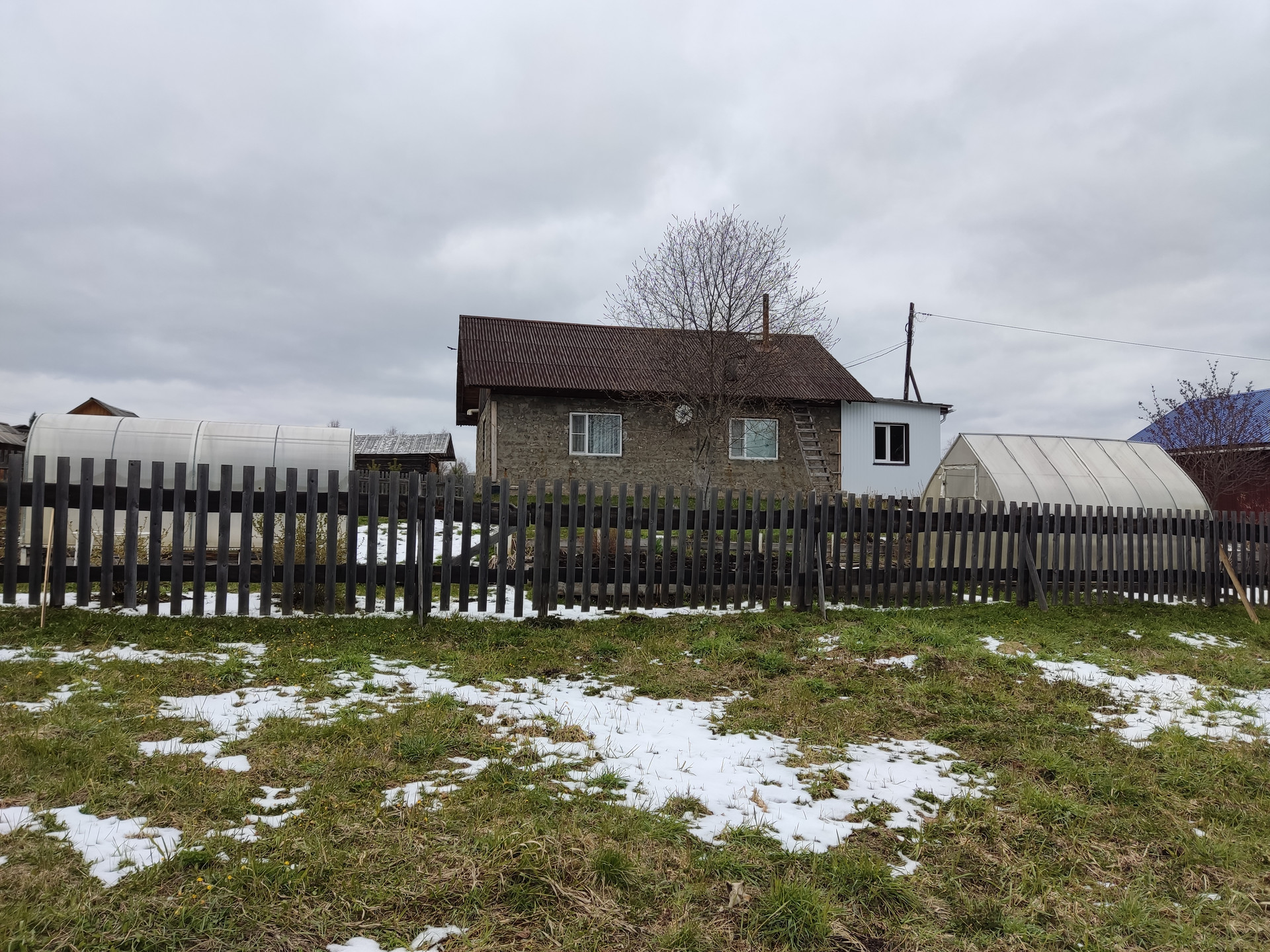 Имеется баня, оборудованный двухэтажный склад, 2 теплицы, плодовые деревья и кустарники, грядки, разработанный и засеянный сидератами огород на солнечной стороне.