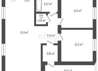 Общая площадь: 90.9 м2