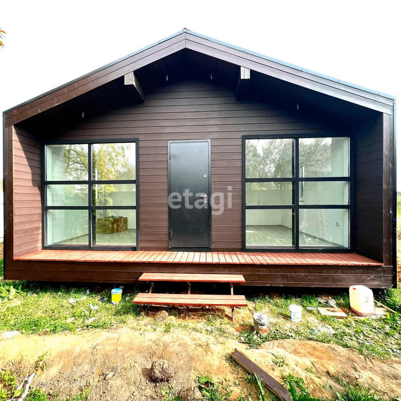 Дом сдается с отделкой: напольное покрытие-ламинат, натяжной потолок, стены оштукатурены, установлены межкомнатные двери, установлены унитаз и умывальник, разводка электричества по дому, панорамное остекление, благодаря которому в доме будет много света. Сделан вывод под сантехнику и под канализацию.
