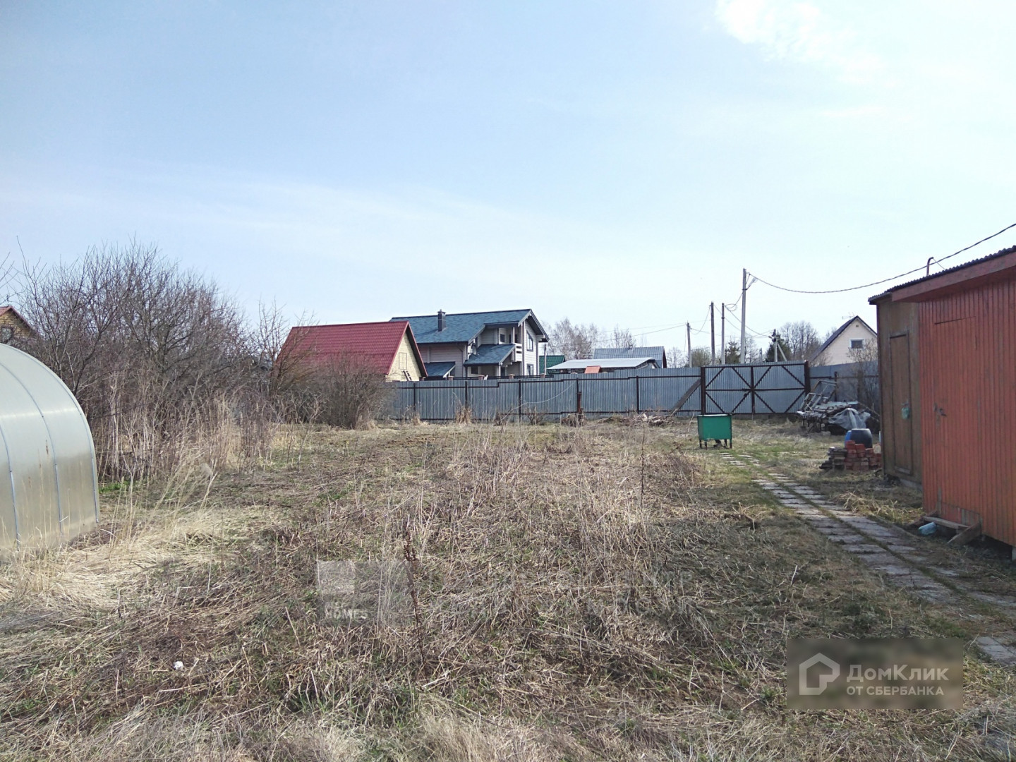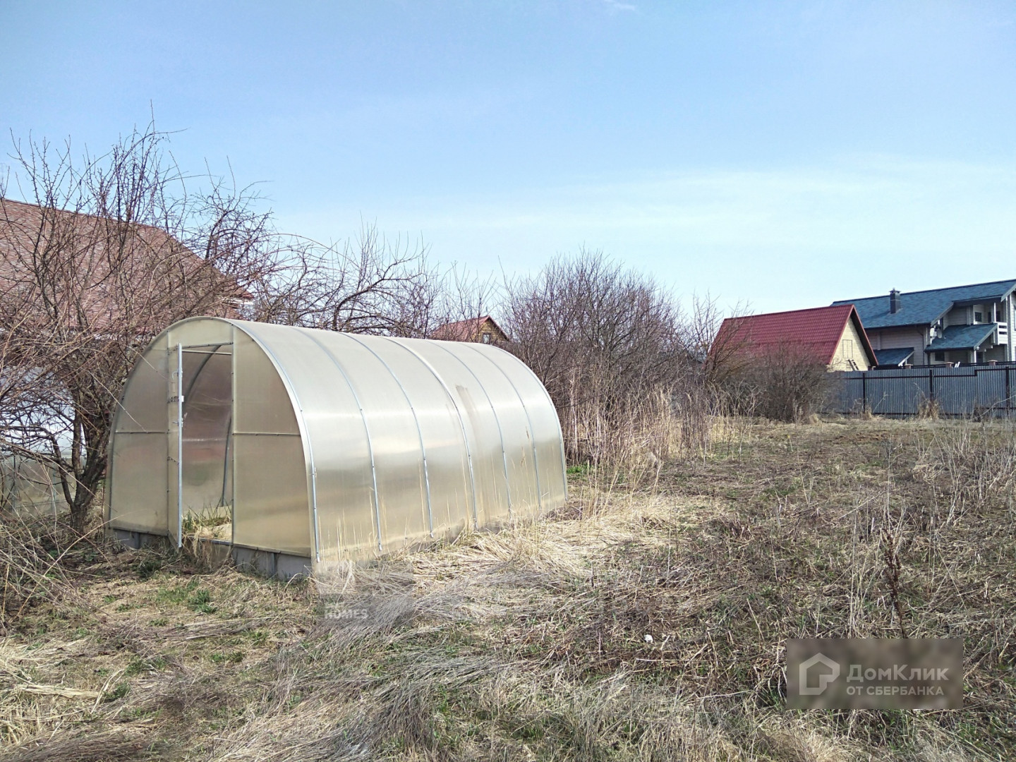 На участке теплицы, фруктовые деревья и кусты ( яблони, сливы, смородина и т.д.).