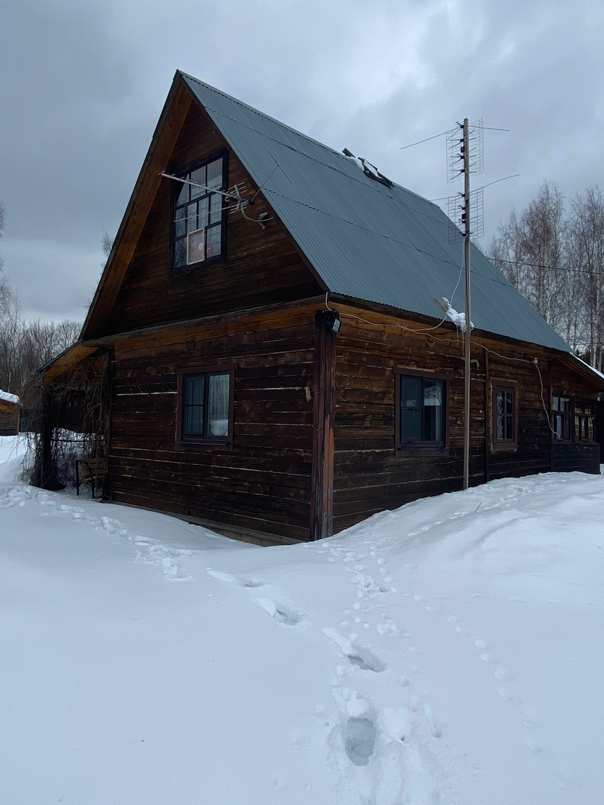 1195. Продается дом в д. Воскресенское, Александровского района, 85 км от МКАД. Дом площадью 80 кв. м, 2-х этажный, брусовой. Вмещает в себя: кухня, комната, совместный с/у на первом этаже и одна комната на втором этаже. Отопление дома электрическое ( электрические конвекторы в каждой комнате), также новая голландская печь-камин. На участке скважина 32 м заведена в дом, горячая вода – водонагреватель, септик 5 колец. Дом можно использовать в летнее время, но и прекрасно подойдет для круглогодичного использования. Участок 25 соток огорожен с трех сторон металлопрофилем, два въезда с параллельных улиц. Участок ровный, незаболоченный на котором расположены не только взрослые плодово-ягодные деревья,  кустарники, хвойники (каштан и тд.), но и усиленный каркас теплицы, летний душ, детский игровой комплекс, гостевой дом (построен в 2022 году). Дом каркасный, на сваях. Идеально подойдет под отдельностоящую летнюю кухню. Деревня Воскресенское — это великолепное по природной красоте место, превосходный воздух и природная тишина. Деревня жилая круглогодично, снег чистят, свет не отключают, деревня газифицирлована.